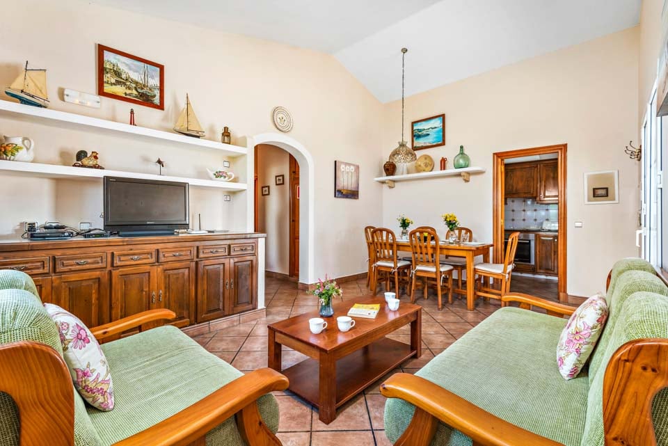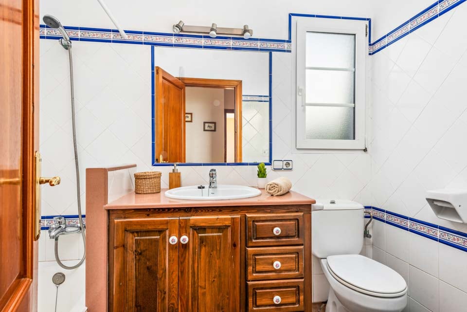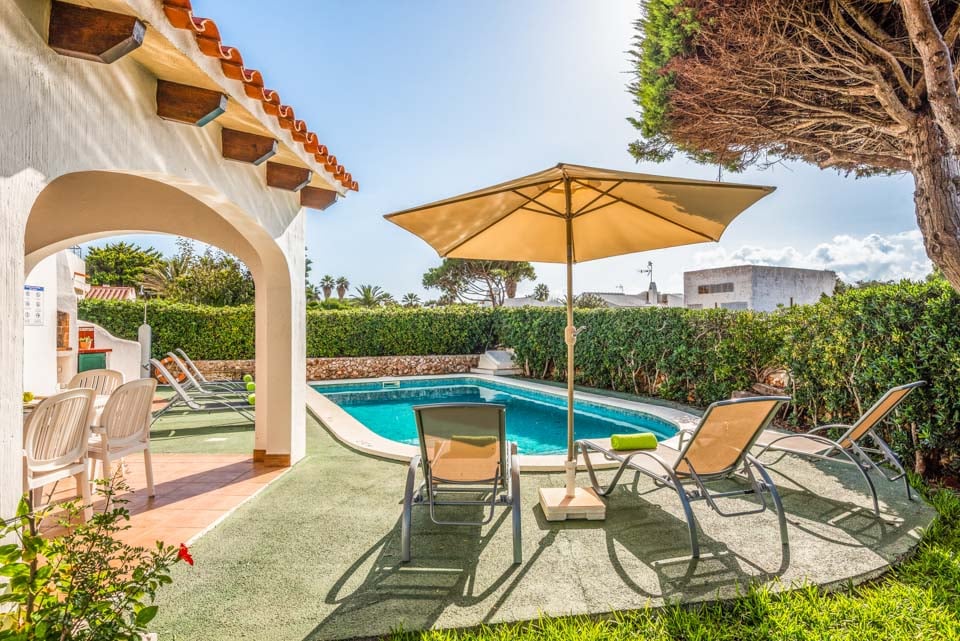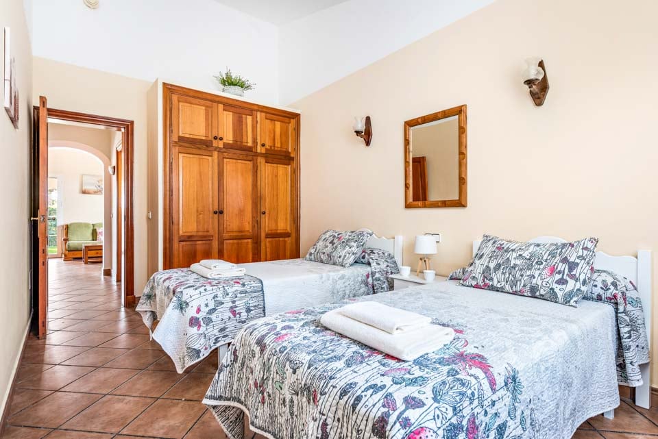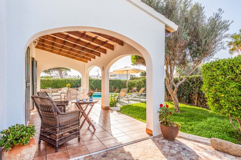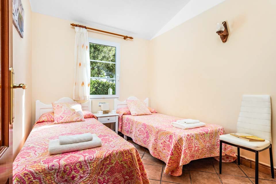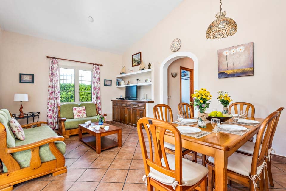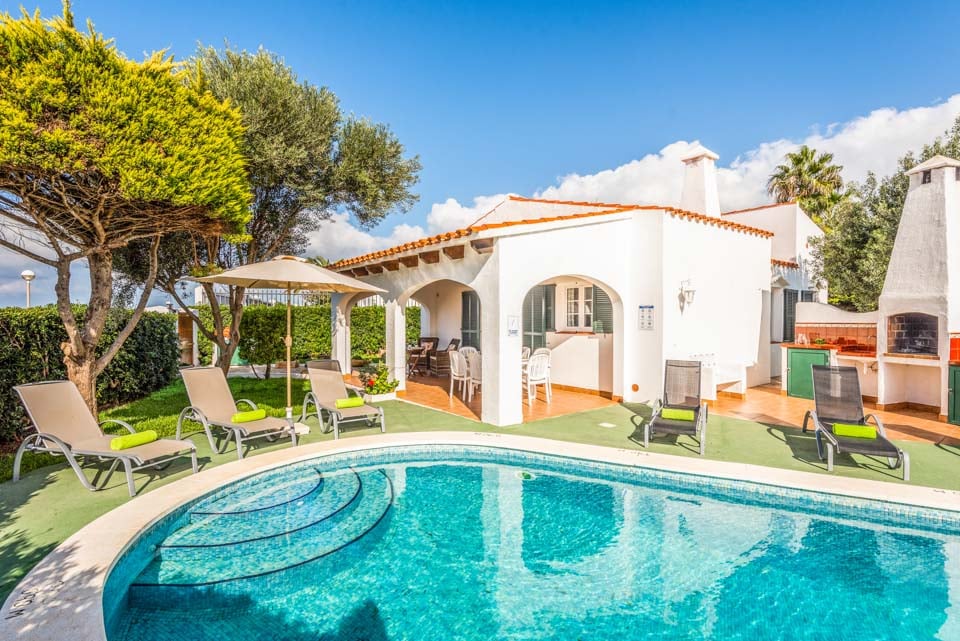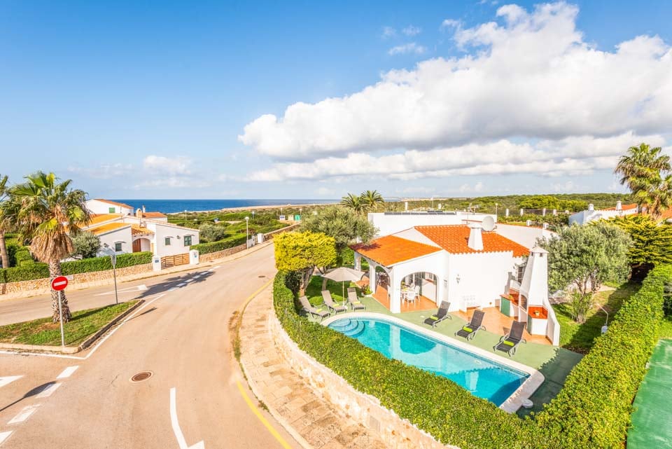 Charmerende på alle måder, Villa Iris Bosch er bygget i traditionel menorcansk stil og gentager den baleariske historiske arkitektur. Det ydre legemliggør alle dele af en malerisk spansk casa med sine terracotta-tage, store søjler, stukvægge og rige træskodder. Indenfor brummer en middelhavsmelodi med et elegant og enkelt farveskema, der kommer til live fra den autentiske indretning og antikke møbler. Stuen er rummelig og elegant indrettet i kølige nuancer af hvid og grøn, med et sofasæt til at synke ned i efter en travl dag med sightseeing. Du vil forelske dig i køkkenet, hvis du er fan af retrostilen, med gammeldags træskabe og en hyggelig mosaikbeklædt bagplade. De tre soveværelser er spredt ud over villaen, med to tvillinger og en dobbeltseng, der komfortabelt kan sove op til seks voksne.