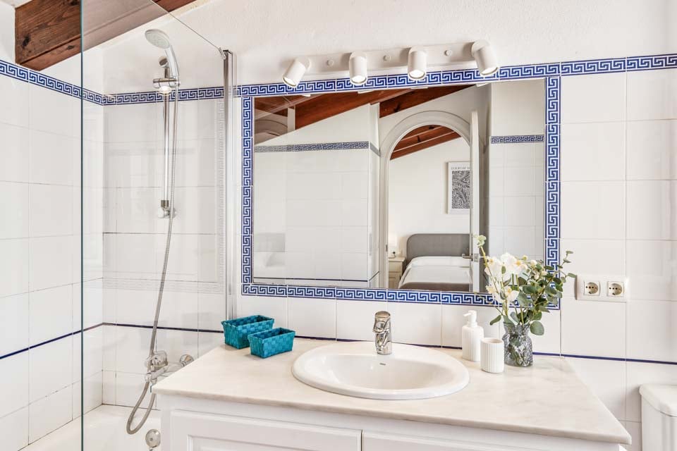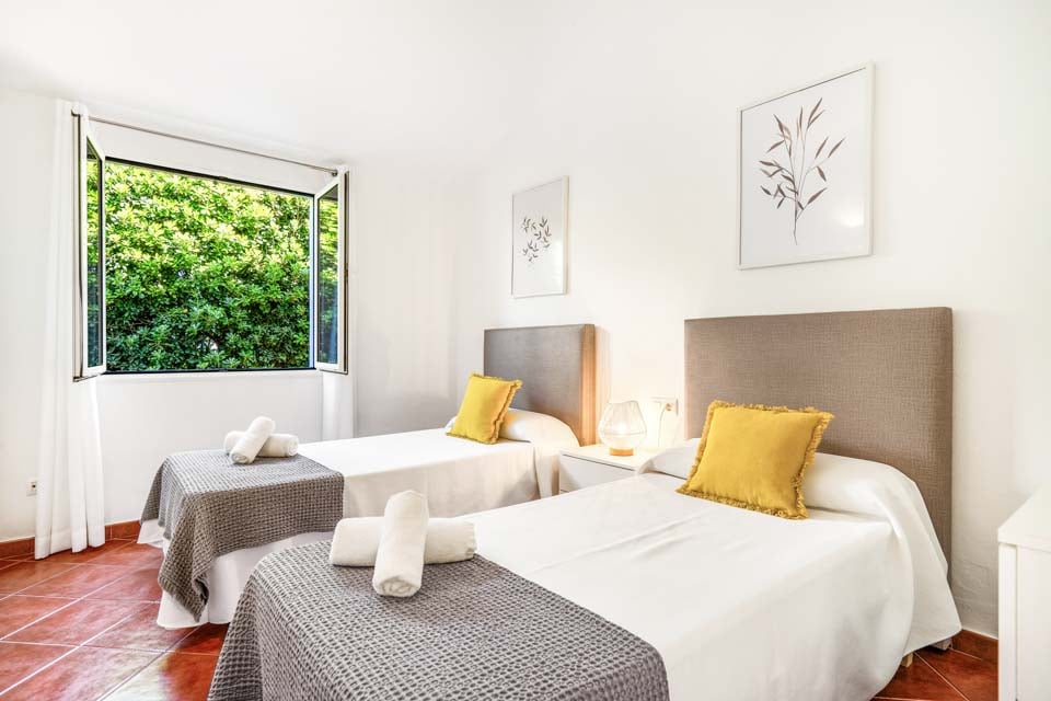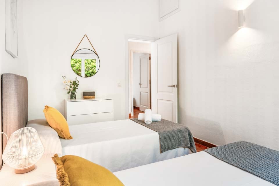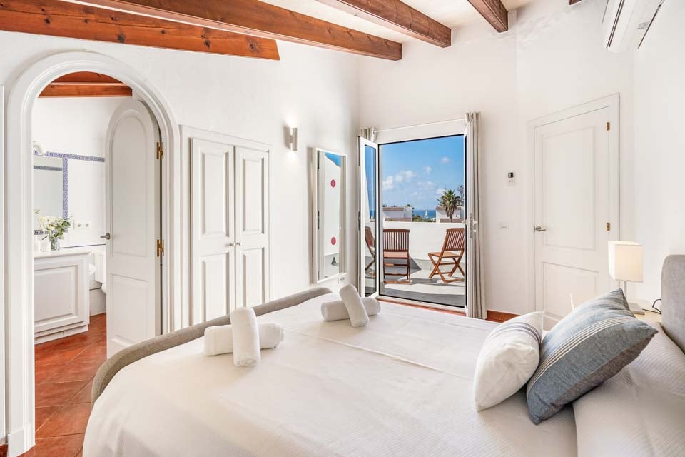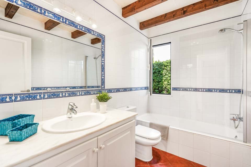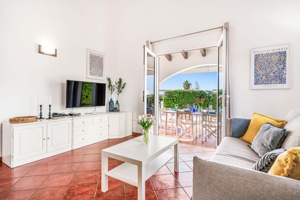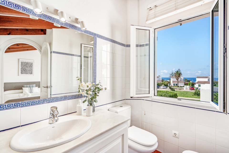Villa Janis er en menorcansk perle, bygget med stuk hvide vægge, terracotta tagsten og buede buer. Interiøret er en smuk kontrast til den traditionelle menorcanske stil, med lyse træmøbler, friske hvide vægge og moderne indretning overalt. Opholdsrummet i åbent plan er lyst og rummeligt med tilknyttet et hyggeligt køkken i landlig stil, som er fuldt udstyret med alt hvad du behøver til at lave mad. Den smukke vindeltrappe fører dig til det store soveværelse med dobbeltseng ovenpå, mens to dobbeltværelser er i stueetagen.