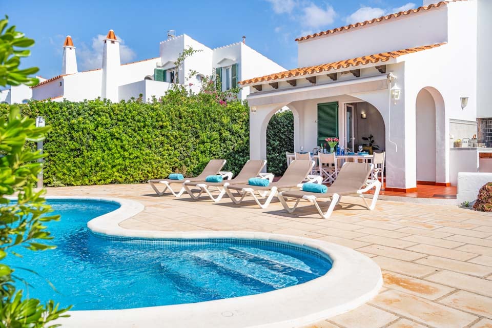 Udendørs er lige så malerisk og charmerende som interiøret, med et afsondret terrasseområde kysset af den varme spanske sol. Den nyrestore swimmingpool er i centrum, med nem adgang til at friste dig på en varm menorcansk dag. Der er mange liggestole ved poolen for at supplere solbrændingen, eller slappe af på de komfortable havemøbler, mens solen skinner over. Intet slår sommerkøkkenet, der byder på en vask og en muret grill til at tilberede nogle spanske delikatesser i den varme middelhavsluft. Med to udendørs spisepladser kan du spise middag på den skyggefulde veranda eller under stjernerne ved poolen.