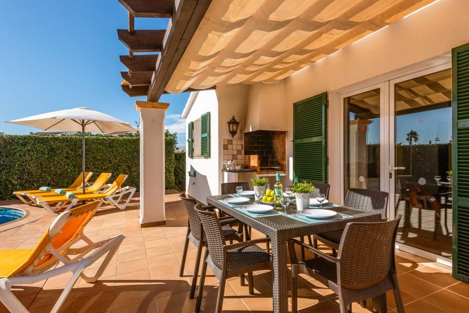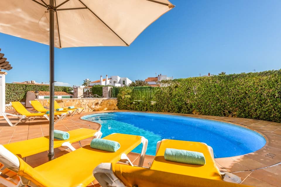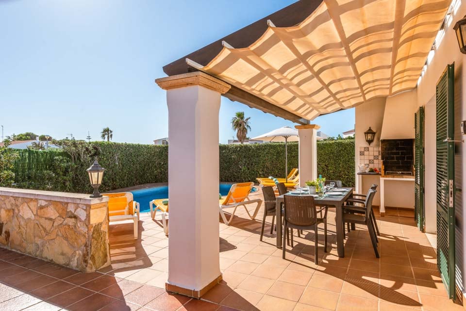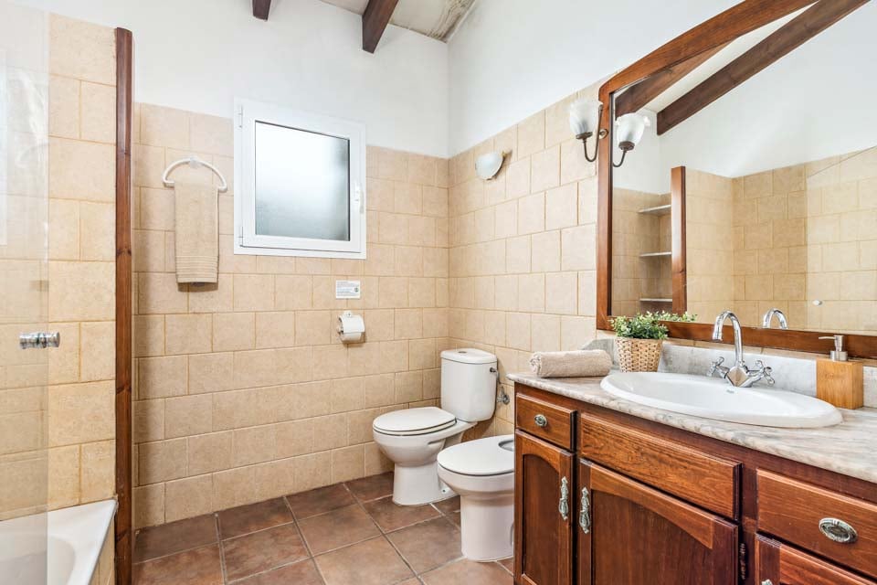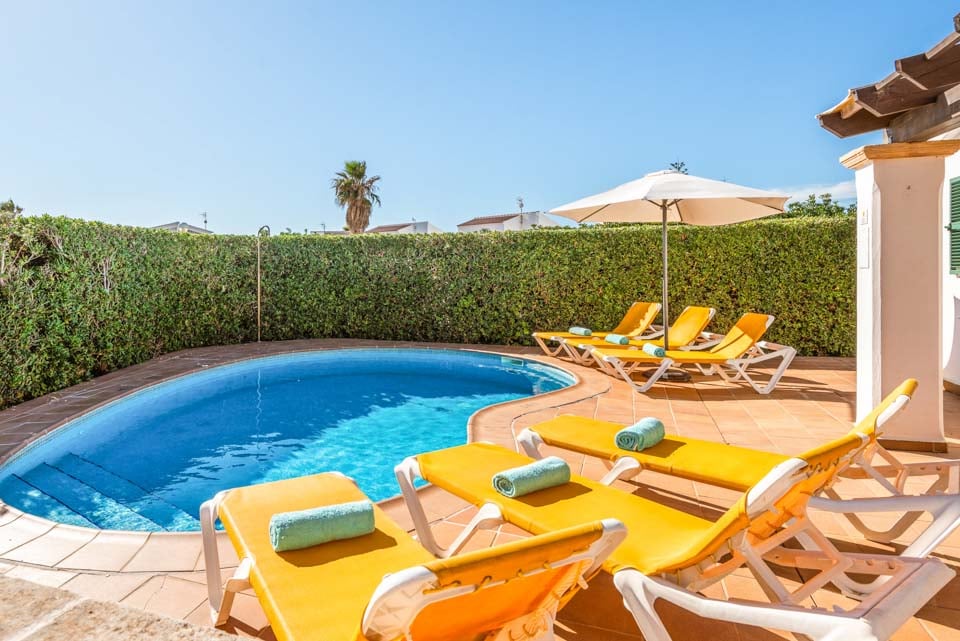 Det er svært at slå en mere malerisk setting end dette baleariske gemmested; uderummet emmer af sindsro, omkranset af grønne omgivelser. Den nyreformede pool ligger på stenterrassen og inviterer dig til at køle af fra det sydende spanske solskin. Omkring poolen vil du blive forkælet med et udvalg af afslappende steder, med masser af liggestole til at slikke varmen. Få lidt afslapning på den skyggefulde terrasse med et udendørs spisebord perfekt til alt fra morgenkaffe til intime middage. Beliggende i Cala'n Bosch, er du blot et hop fra rækker af restauranter og caféer proppet rundt i den smukke lystbådehavn, der serverer et væld af internationale retter. Området er oversået med dele af hvide sandstrande og smukke skjulte bugter med masser af sandede pletter til at lægge dit håndklæde ud og slikke solen.