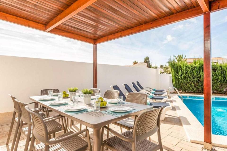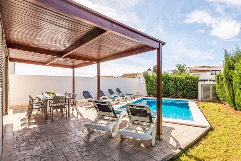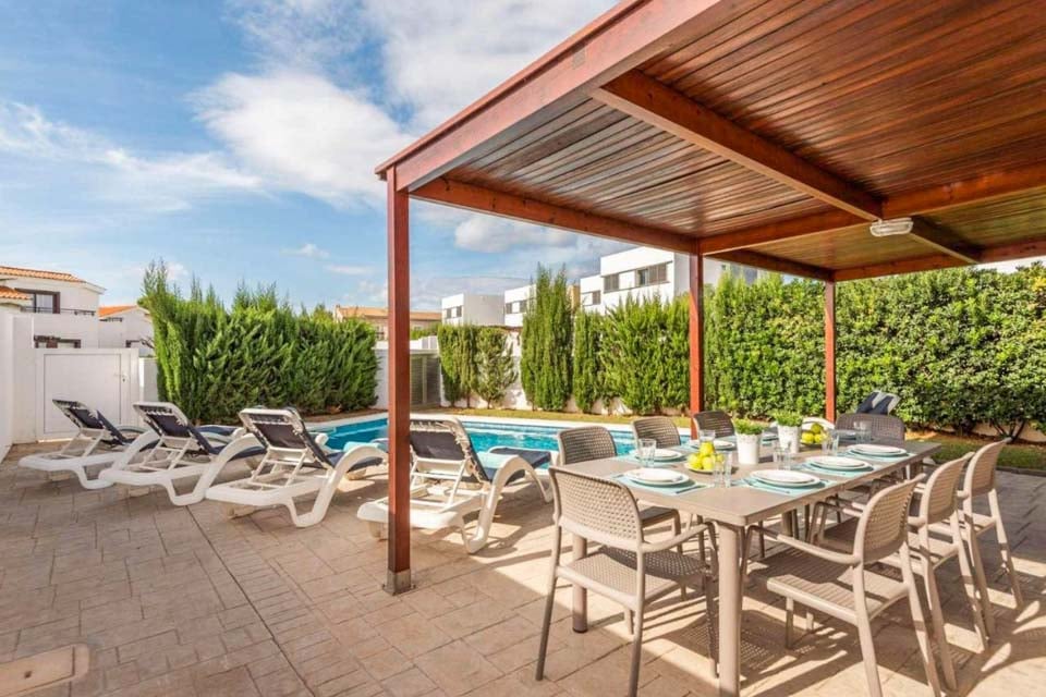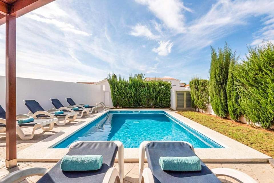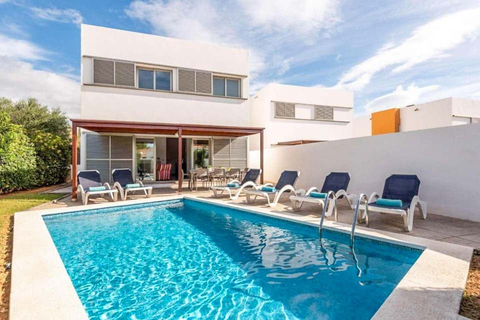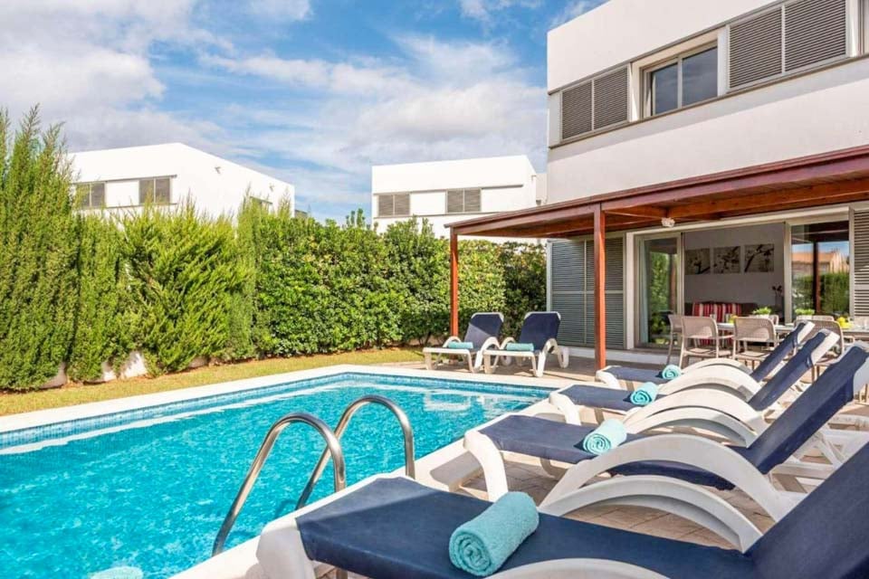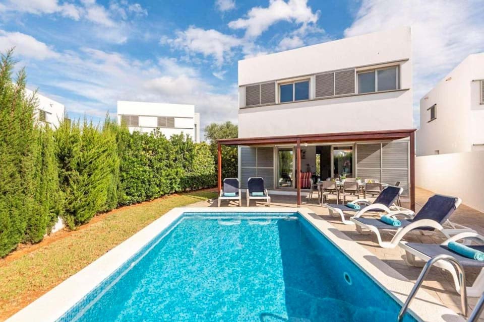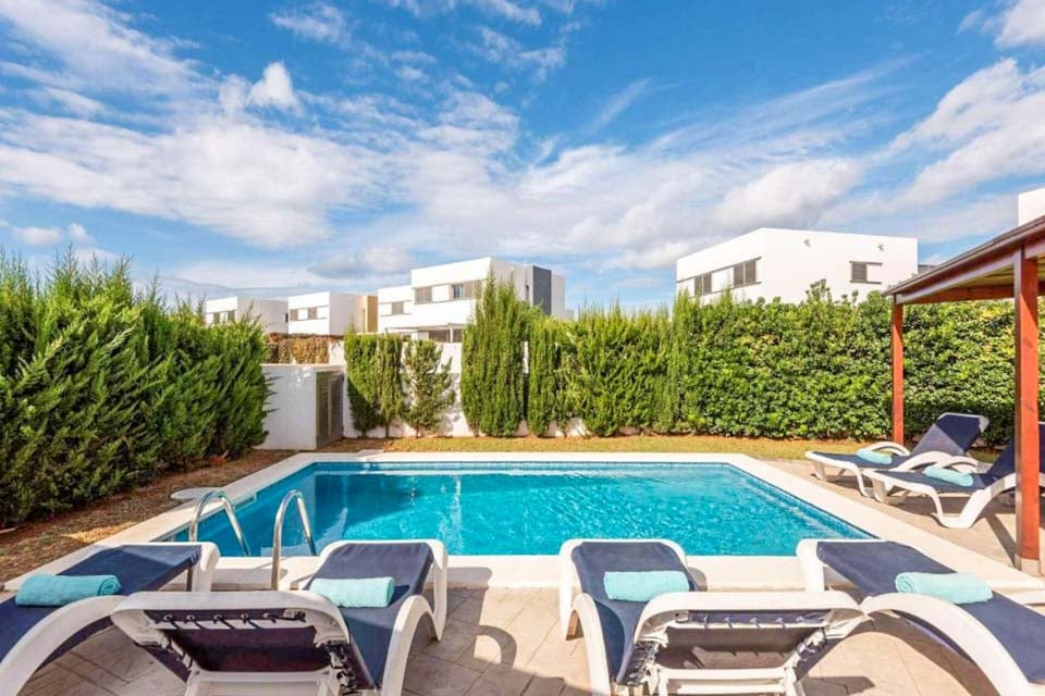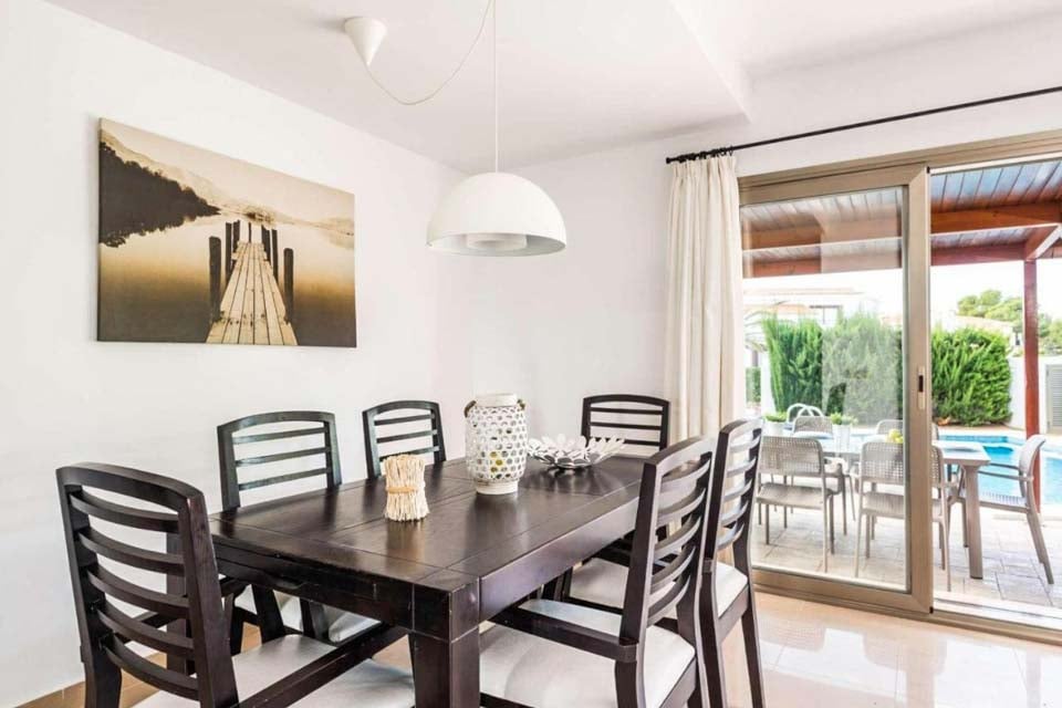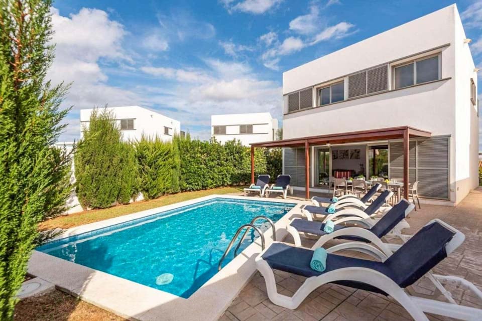 Når du træder ind i villaen, bliver du mødt med et opholdsrum i åbent plan, druknet i naturligt lys fra de brede skydedøre til terrassen. Farvepaletten er rolig og beroligende, parret med minimalistisk indretning, smarte møbler og enkel indretning. Designet til at være ultra-moderne, køkkenet er fuldt udstyret med high-end apparater og dristige statement-skabe. Ekstremt rummelig, der er to dobbeltværelser og to dobbelte soveværelser at synke ned i, der er spredt ud over villaen. Beliggende i Cala'n Bosch, er du blot et hop fra rækker af restauranter og caféer proppet rundt i den smukke lystbådehavn, der serverer et væld af internationale retter. Området er oversået med dele af hvide sandstrande og smukke skjulte bugter med masser af sandede pletter til at lægge dit håndklæde ud og slikke solen.