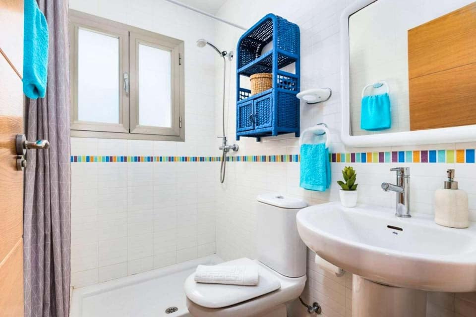 For at komme til villaen er der en 140 cm bred sti langs 1 trin. Der er også en rampe til hoveddøren. Hoveddøren har en bredde på 80 cm, mens døren til terrassen er 170 cm bred. Der er 1 trin ned ad terrassedørene til terrassen. Terrassen er flad og åben, mens poolen har adgang via stige. Dørene til soveværelset i stueetagen og brusebadet er 70 cm brede. Døren ind til køkken/alrum er 80 cm bred, og døren ind til opholdsstuen er 170 cm bred. *Bemærk venligst, at selvom vi har gjort alt for at sikre, at de givne oplysninger er nøjagtige, kan der forekomme fejl, og hvis du har brug for mere specifik information om villaen, er du velkommen til at kontakte os.