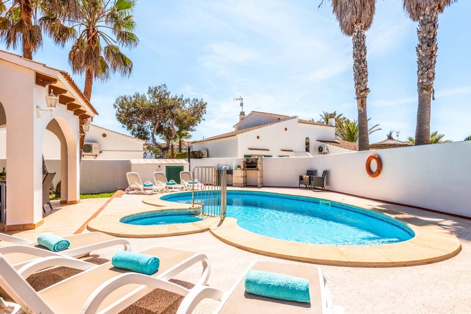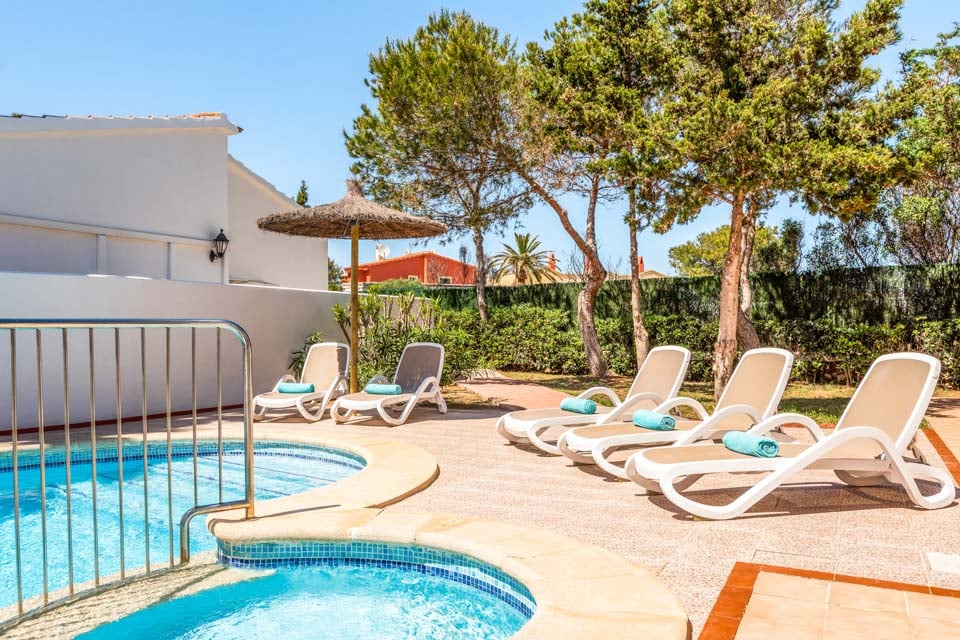 Med en fantastisk beliggenhed tæt på centrum af Cala en Forcat er Villa Raquel Blanes et godt valg til din sommerferie. Talrige restauranter og barer, butikker, legecentre, et vandland og sandet bugt er alle inden for rækkevidde af villaen, hvilket betyder, at billeje ikke er nødvendigt for dem, der ønsker at glemme hverdagens stress. I villaen finder du fire soveværelser, hvoraf to har ensuite faciliteter og et separat familiebadeværelse, som de andre kan dele. Bemærk venligst, at AC-enheden i soveværelset på første sal er placeret på reposen ud mod soveværelsesdøren. En moderne stue/køkken/spisestue i åbent plan med gennemgribende stilfuld indretning fører ud til en overdækket terrasse, der er ideel til udendørs spisning. Den smukke private swimmingpool er omkranset af rigelige liggestole, der er klar til at læne sig tilbage, slappe af og nyde den varme middelhavssol. Den nærliggende gamle hovedstad, Ciutadella, er en kort bustur væk og et must-see for alle. Smalle brostensbelagte gader er fyldt med boutiquebutikker, og en bred vifte af restauranter og barer kan findes både i byen og langs den smukke havneside, for ikke at nævne håndlavede natmarkeder, hvor man kan vandre rundt i højsæsonen for at søge efter en særlig ferie-souvenir . For grupper, der rejser sammen, er Villas Ingrid, Karoline og Sofia og Elizabet bekvemt placeret på samme gade, ideelt til den store familieferiesammenkomst, men alligevel med en vis grad af privatliv i jeres egne individuelle villaer.