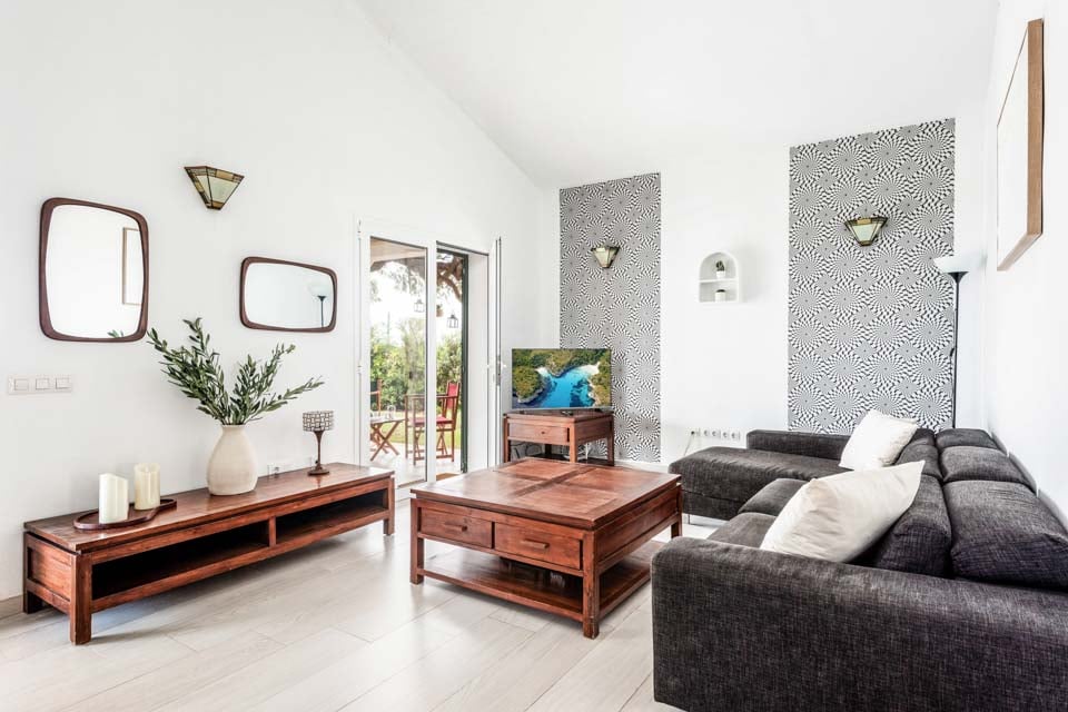 Leder du efter en ejendom i stueetagen med fantastisk havudsigt lige på kanten af kysten? Så behøver du ikke lede længere end til Villa Theleme, som måske lige er det, du leder efter. Beliggende en rask gåtur fra feriestedets centrum, restauranter og supermarkeder, denne bil valgfri villa er ikke langt fra stress og jag. Cala'n Boschs millionærhavn tilbyder det ideelle sted for en tapas-frokost, mens du nyder atmosfæren omkring dig. Som en ekstra bonus har denne villa en mini petanquebane mod bagsiden af terrassen, fantastisk til en familievenlig leg efter frokost.