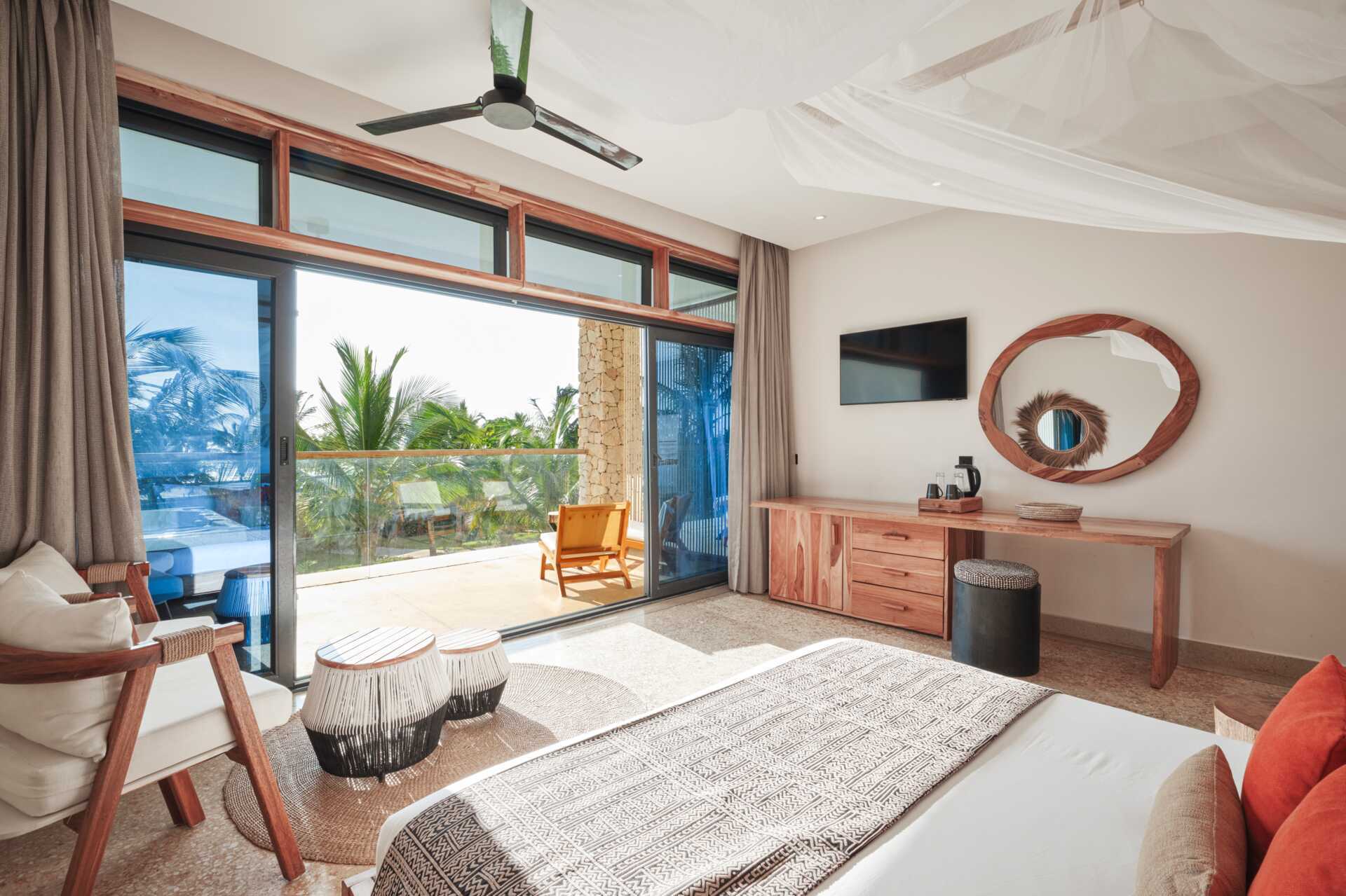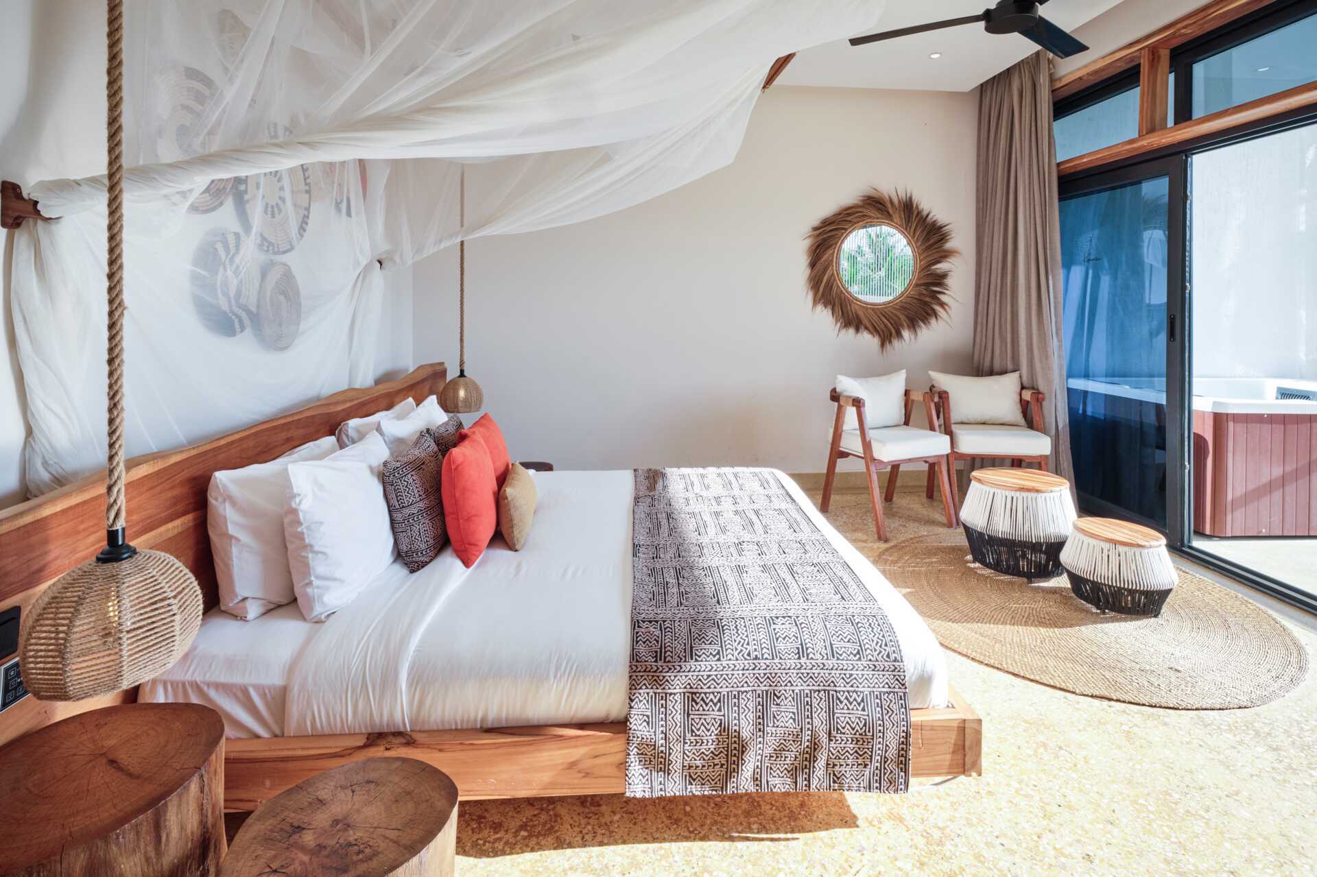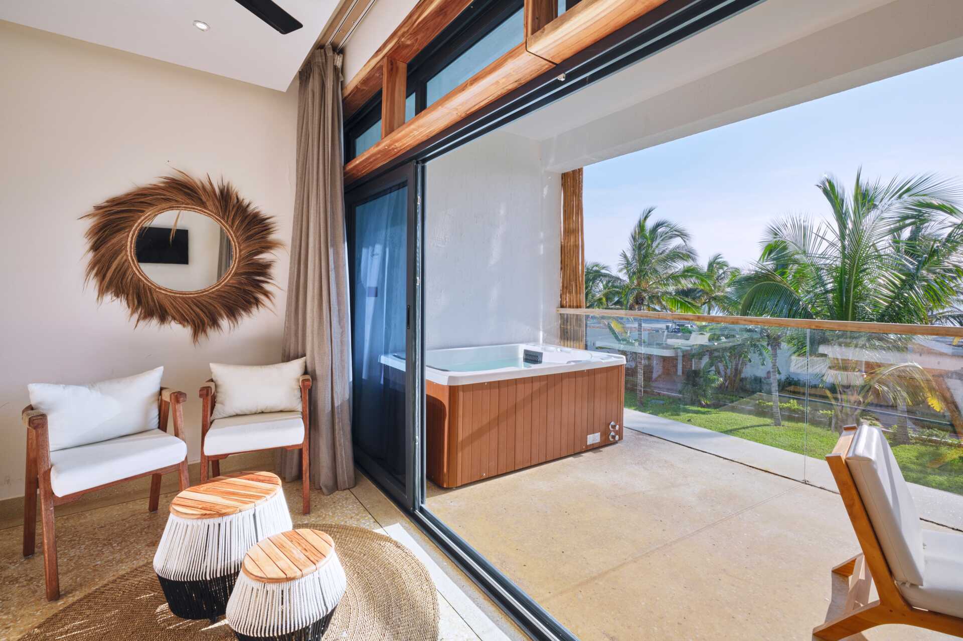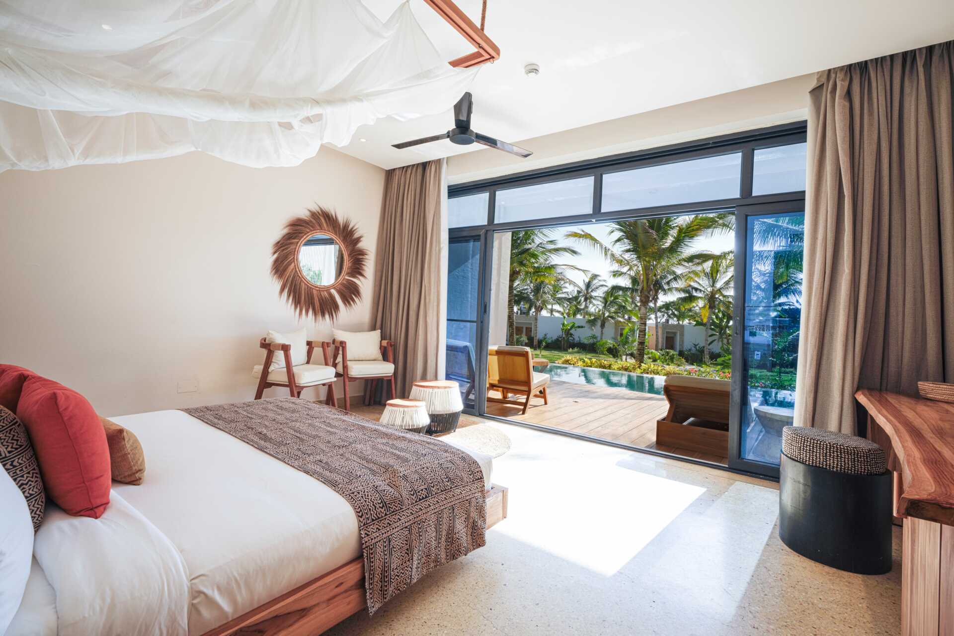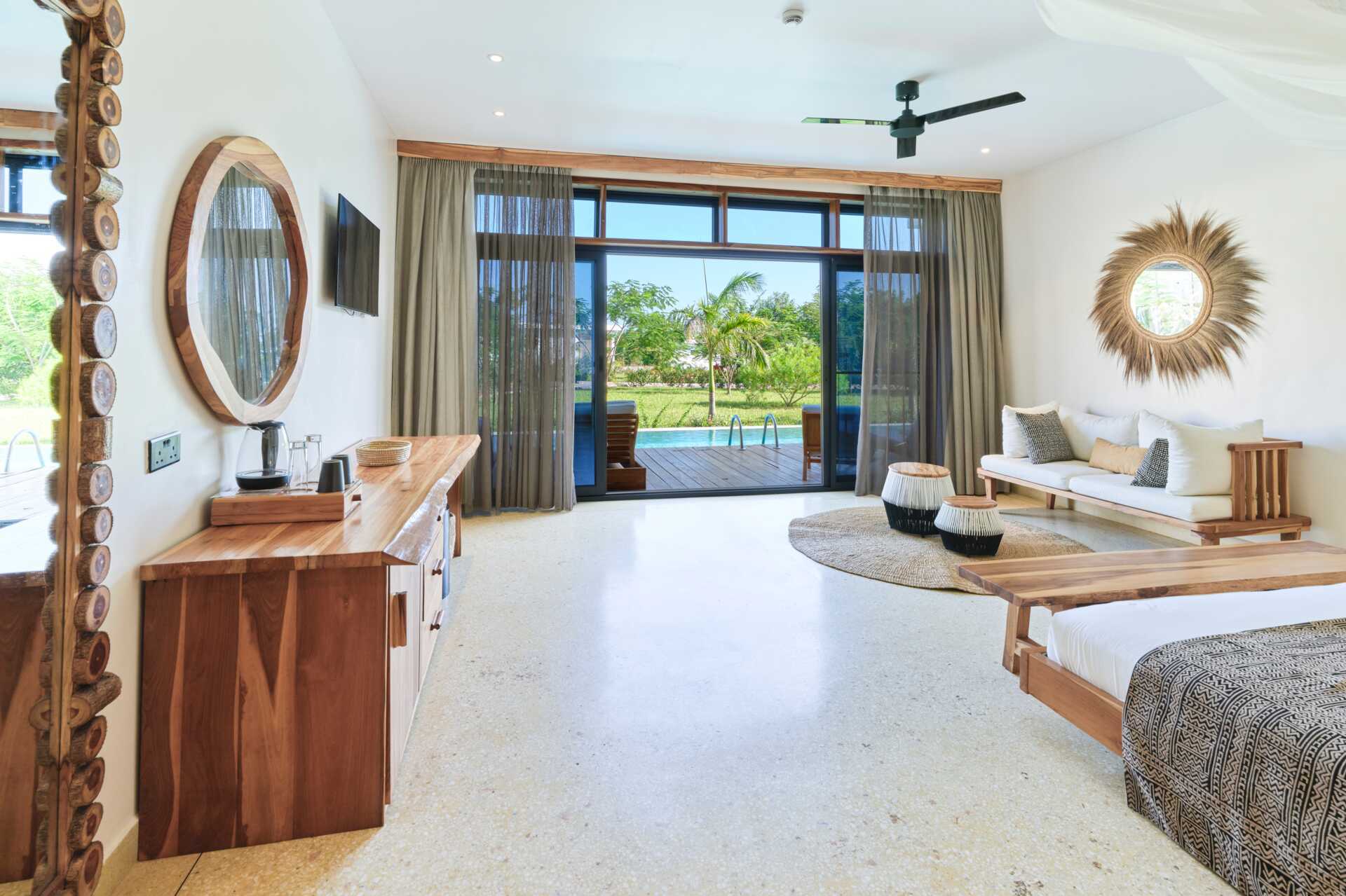 Junior-suite med udgang til en delt pool fra terrassen i stueplan. En dobbeltseng eller to enkeltsenge. Gratis wifi, aircondition og deponering. Køleskab. Tv med internationale kanaler. Hårtørrer. Badeværelse med badekar og toilet. Rengøring 7 gange om ugen. Aldersgrænse 16 år.