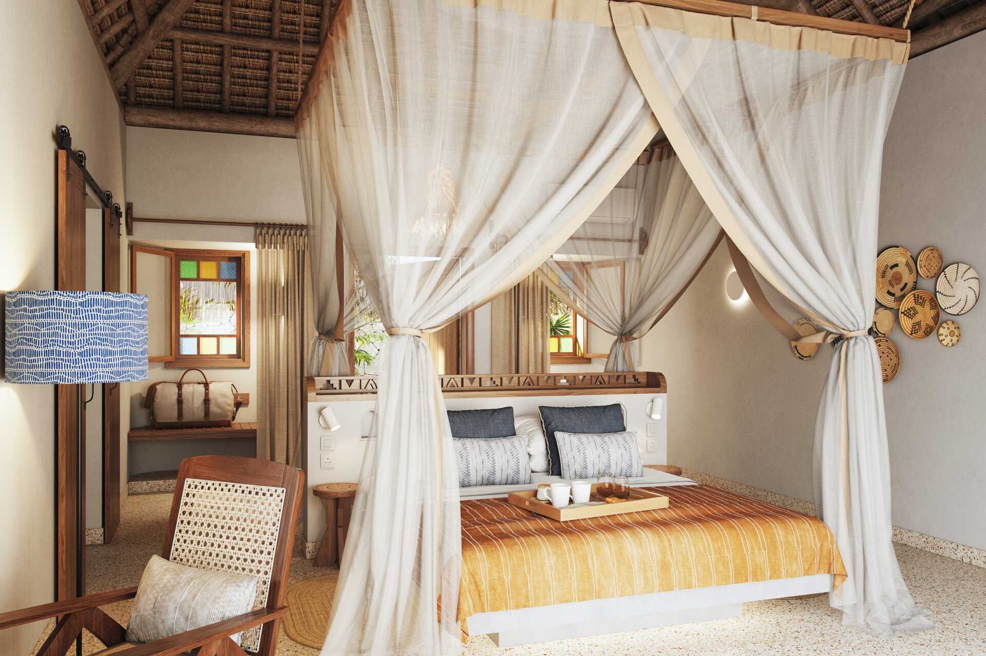 1-værelses villa med udgang til delt infinitypool fra terrassen. Værelserne ligger ca. 5 minutters gang fra stranden. På terrassen er der solstole samt borde og stole. En dobbeltseng (myggenet over sengen). Gratis wifi, aircondition og deponering. Loftsvifte. Minibar. El-kedel og kaffe/te. Hårtørrer. Badeværelse med to håndvaske, udendørs bruser og separat toilet. Rengøring 7 gange om ugen.