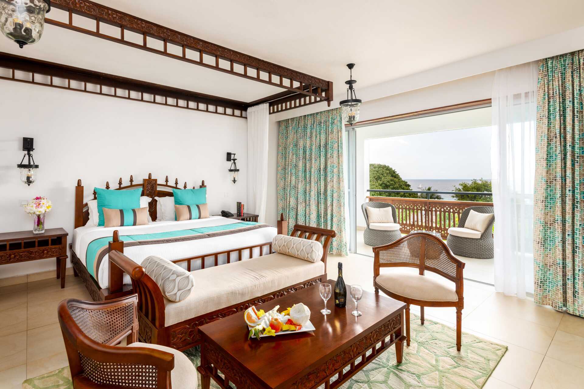 Suiter med balkon eller terrasse og havudsigt. En dobbeltseng. Mulighed for ekstra opredning i enkeltseng. Gratis wifi, aircondition og deponering. Køleskab. El-kedel og kaffe/te. Fransk kaffepresse. Tv med internationale kanaler. Hårtørrer. Badeværelse med to håndvaske, badekar, separat bruser og toilet. Rengøring 7 gange om ugen.
