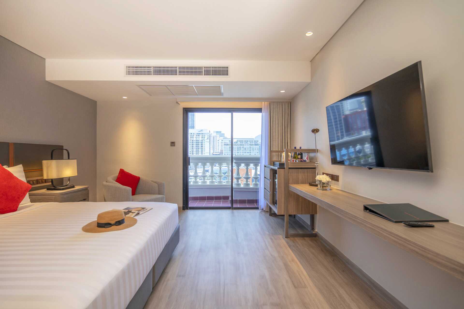 Deluxe-værelser, uden udeplads, nogle med udsigt over byen. Værelserne med udsigt ligger på etage 17 til 25, og de øvrige værelser ligger på etage 9 til 16. En dobbeltseng eller to enkeltsenge. Mulighed for ekstra opredning i fold ud-seng. Gratis wifi, aircondition og deponering. Køleskab. El-kedel og kaffe/te. Tv med internationale kanaler. Strygejern og strygebræt. Badekåber og tøfler. Hårtørrer. Badeværelse med badekar og toilet. Rengøring 7 gange om ugen.