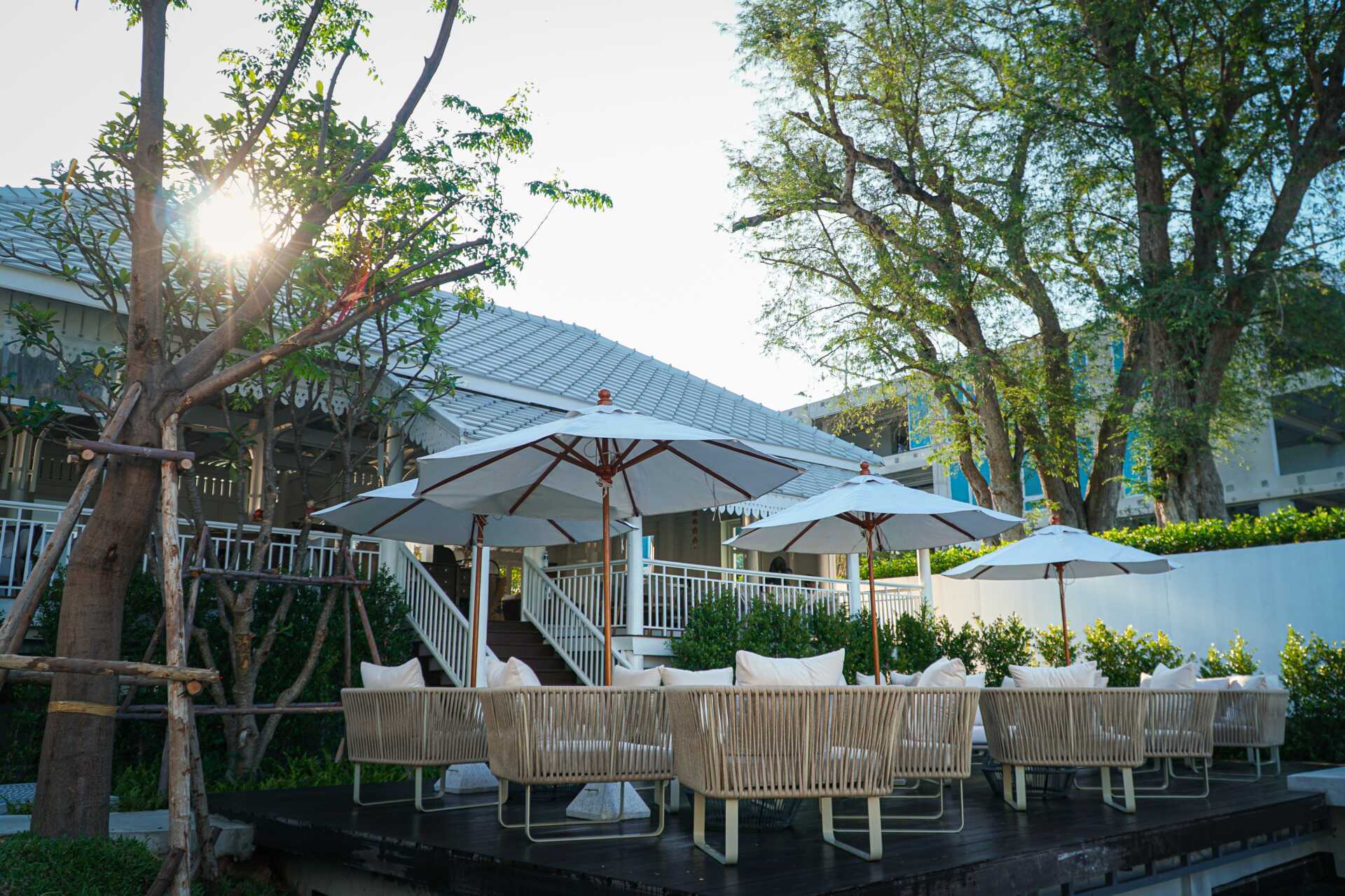 Hotellet har to restauranter, en cafe og to barer. Jaras Hua Hin serverer det bedste fra det thailandske køkken og lokalt producerede råvarer. Azure Restaurant & Bar nede ved stranden byder på en fantastisk havudsigt og enklere retter om dagen og grillet fisk om aftenen. Café de Khoi starter dagen med at servere en à la carte-morgenmad og slutter aftenen af med lækre retter. Coco Bar nede ved stranden serverer drinks og mad med inspiration fra eget land. Roomservice døgnet rundt.