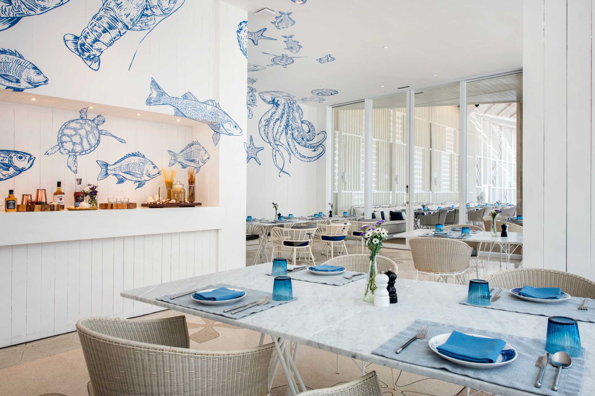 Gæster over 12 år, som bor på Club-værelser, har adgang til en døgnåben lounge ved stranden. Loungen serverer alkoholfrie drinks og lette snacks. Afternoon tea serveres mellem 15.00 og 17.00. Der er også et udvalg af 3 restauranter til morgenmad (en à la carte og 2 buffeter). Aftendrinks er også inkluderet i loungen, Azure Bar eller den mere familieorienterede Lee La Bar. Bemærk, at unge mellem 12 og 17 år kun er velkomne i følgeskab med en voksen. For børnefamilier er der andre muligheder, f.eks. Planet Trekker, som er åben fra kl. 09.00-19.00.