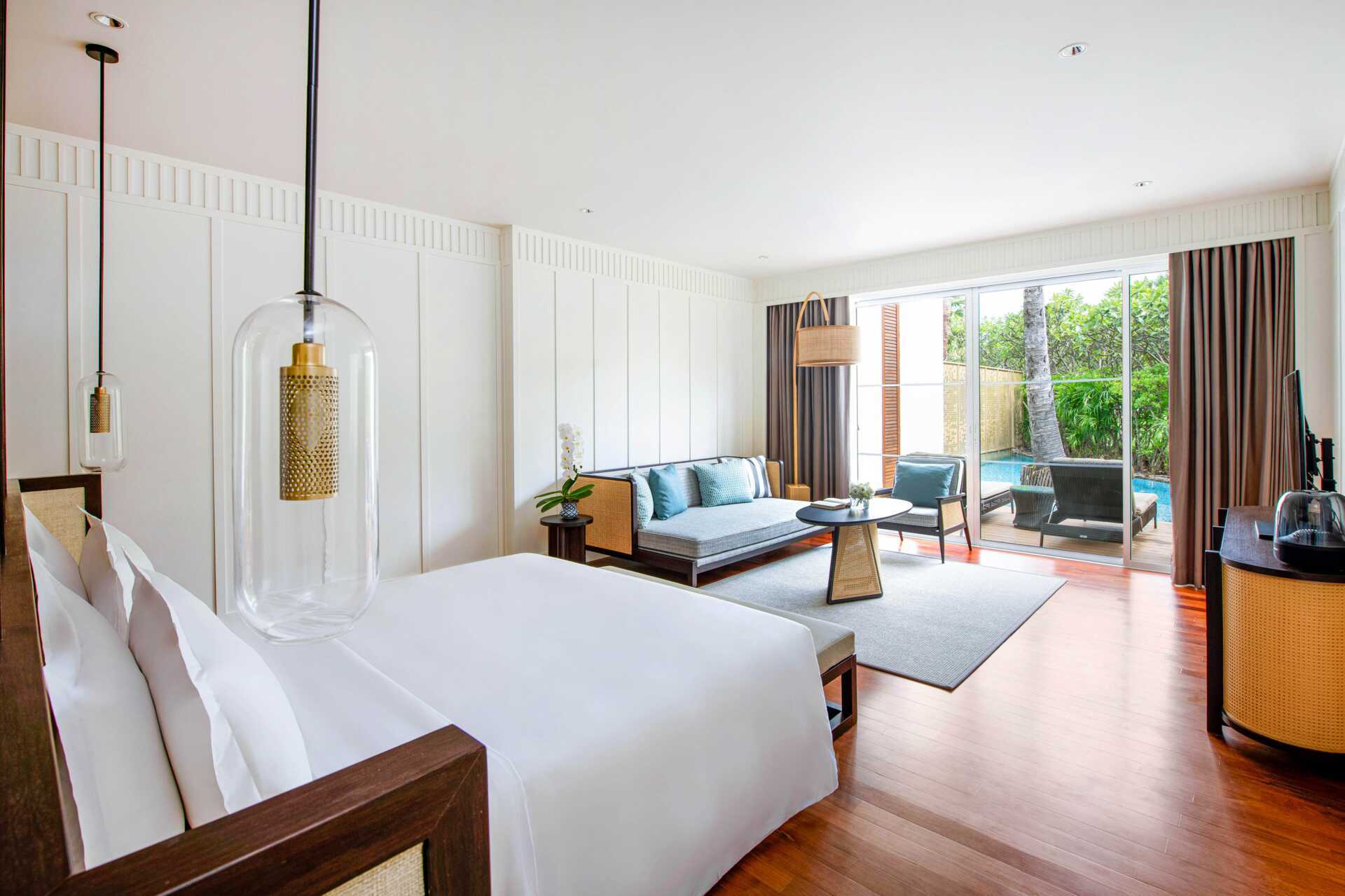 Pool-suite med privat pool på udepladsen. Der er to solstole på udepladsen. Suiten ligger i Beach wing. En dobbeltseng eller to enkeltsenge. Mulighed for ekstra opredning til én person. Gratis wifi, aircondition og deponering. Minibar, en flaske vand pr. dag inkluderet. El-kedel og kaffe/te. Tv med internationale kanaler. Strygejern og strygebræt. Badekåber og tøfler. Hårtørrer. Badeværelse med badekar eller bruser samt toilet. Rengøring 7 gange om ugen. Børn under to år tæller med i det maksimale antal personer på værelset.