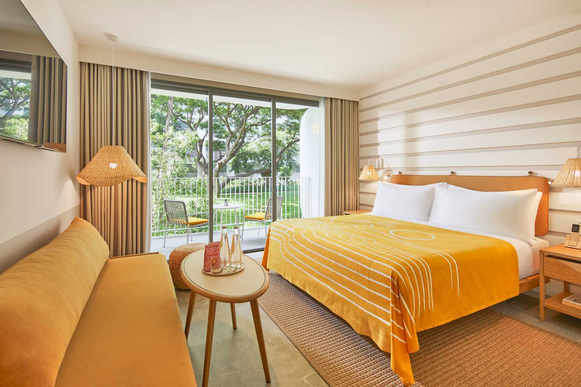 Dobbeltværelse i bungalow, have med balkon eller terrasse. En dobbeltseng. Mulighed for ekstra opredning i daybed/enkeltseng. Gratis wifi, aircondition og deponering. Køleskab. Tv med internationale kanaler. Bluetooth højttaler. Badekåber og tøfler. Hårtørrer. Badeværelse med to håndvaske, badekar, separat bruser og separat toilet. Rengøring 7 gange om ugen.