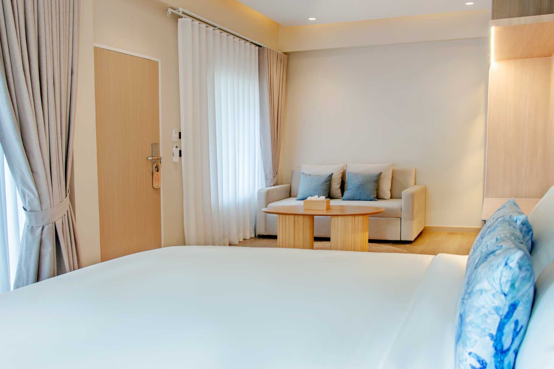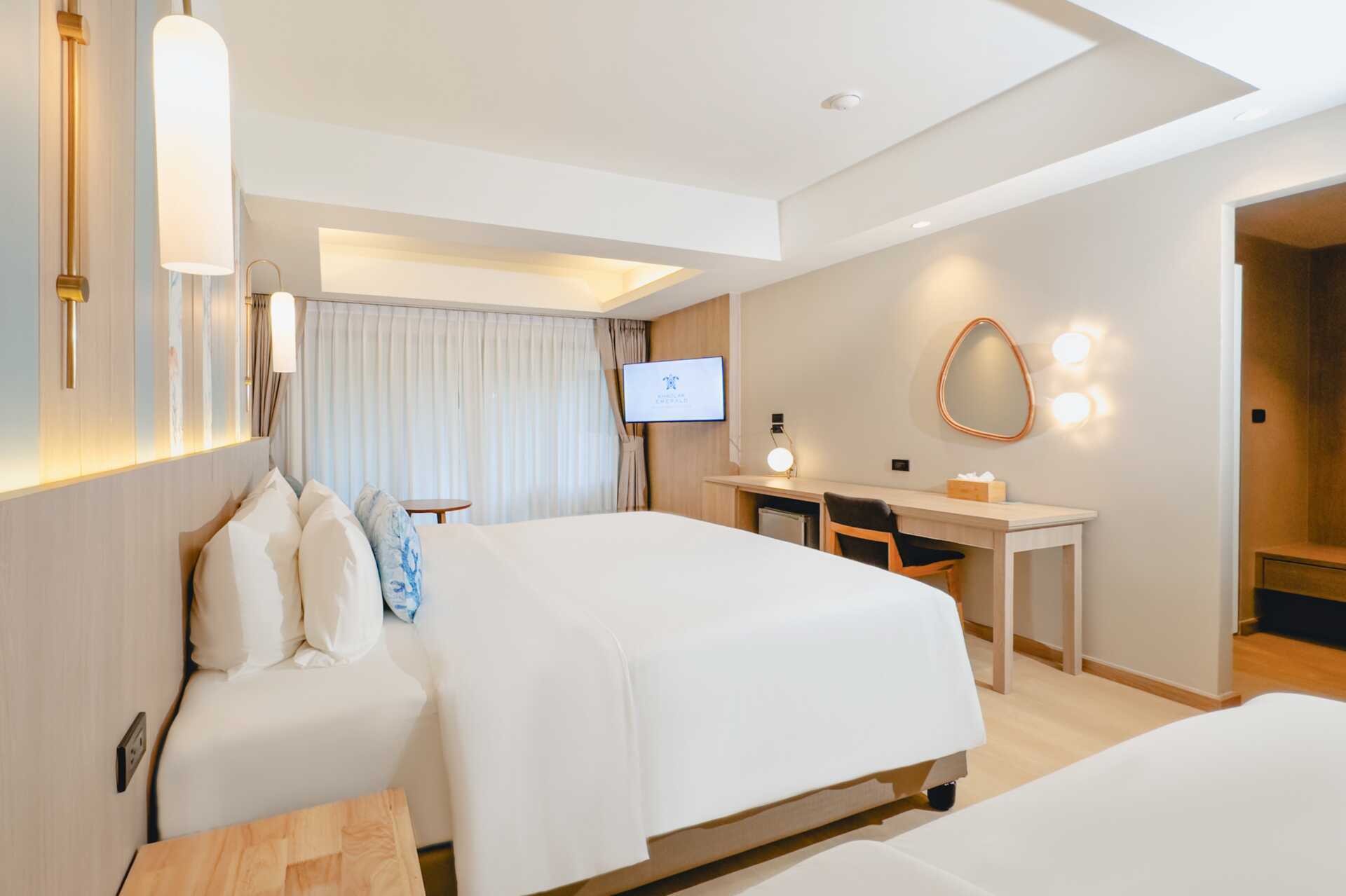 Deluxe-værelse med balkon. En dobbeltseng eller to enkeltsenge. Mulighed for ekstra opredning i sovesofa. Gratis wifi, aircondition og deponering. Køleskab. El-kedel og kaffe/te. Tv med internationale kanaler. Hårtørrer. Badekåber og tøfler. Badeværelse med badekar og toilet. Rengøring 7 gange om ugen. Børn under to år tæller med i det maksimale antal personer på værelset.