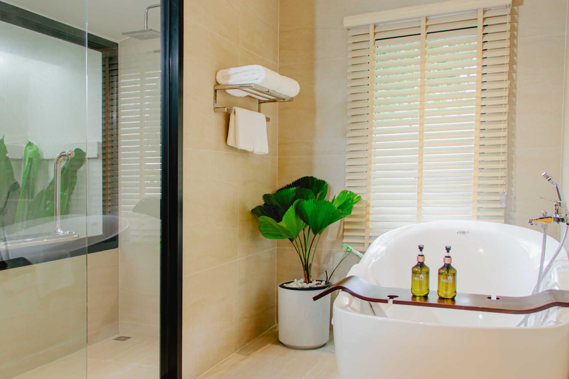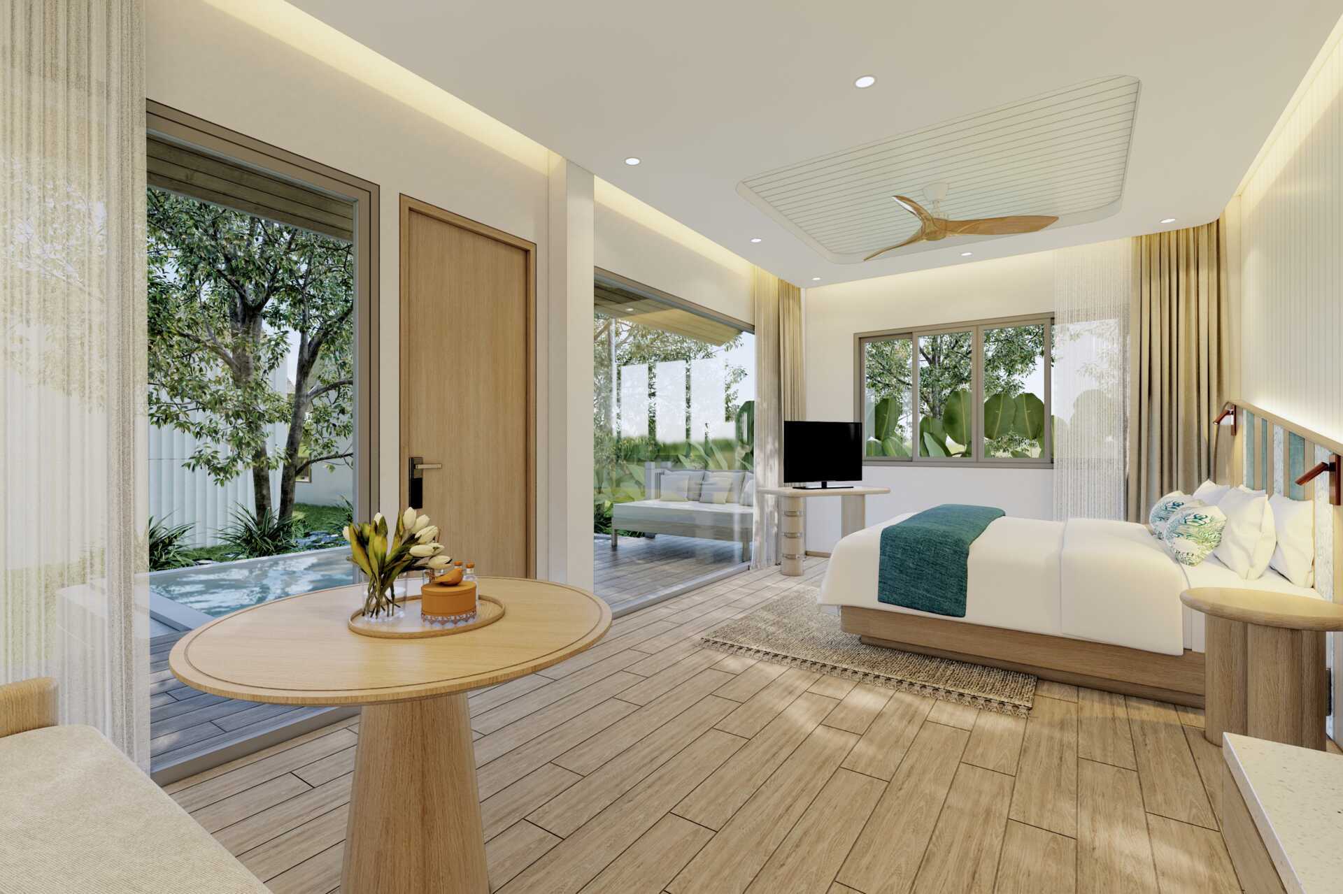 Seafront Villa med privat pool og begrænset havudsigt. Villaerne ligger tæt på stranden. Solstole er ofte tilgængelige på græsplænen uden for villaen. En dobbeltseng eller to enkeltsenge. Mulighed for ekstra opredning i sovesofa. Gratis wifi, aircondition og deponering. Lille køleskab. El-kedel og kaffe/te. Tv med internationale kanaler. Hårtørrer. Badekåber og tøfler. Badeværelse med badekar, separat udendørs bruser og toilet. Rengøring 7 gange om ugen. Børn under to år tæller med i det maksimale antal personer på værelset.