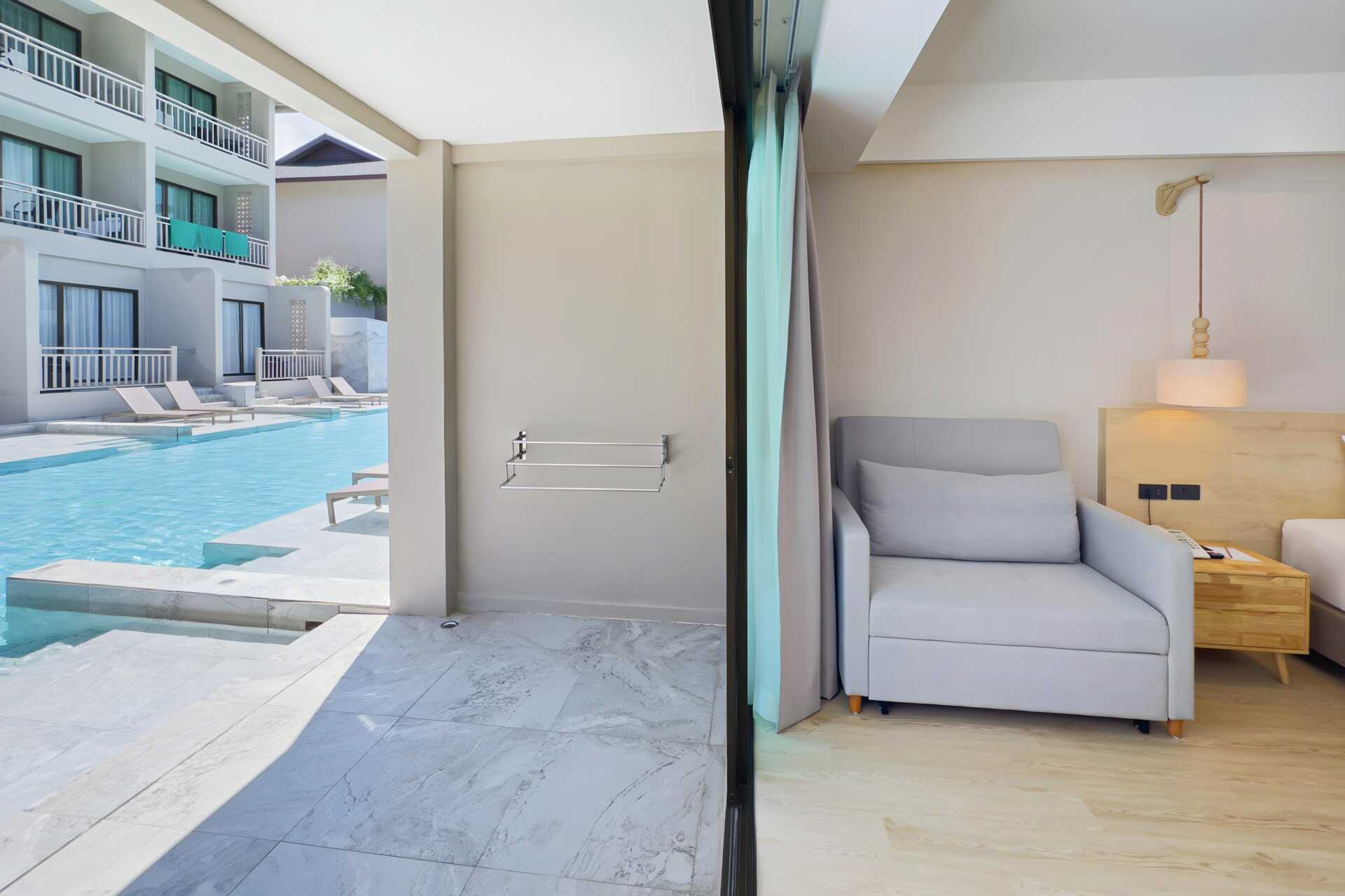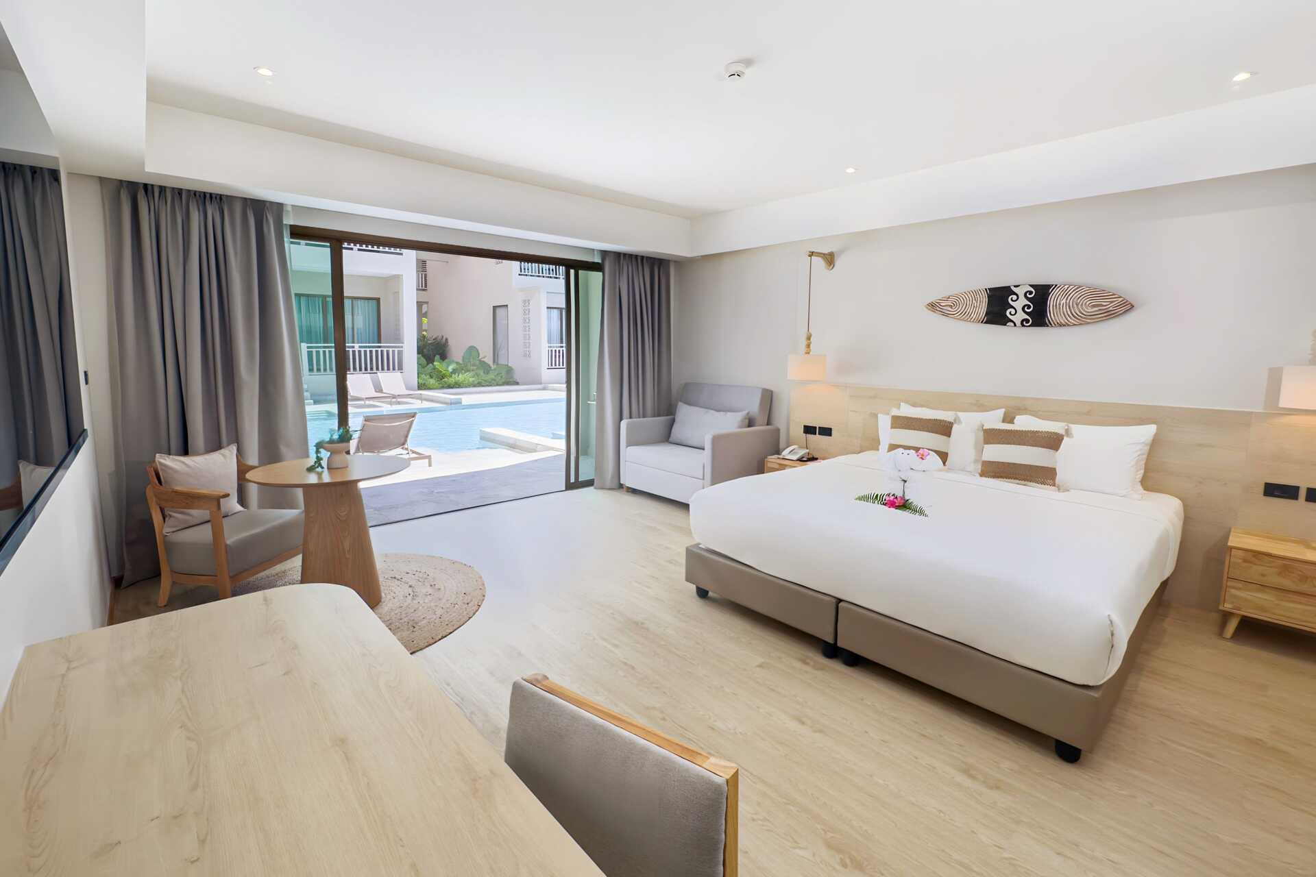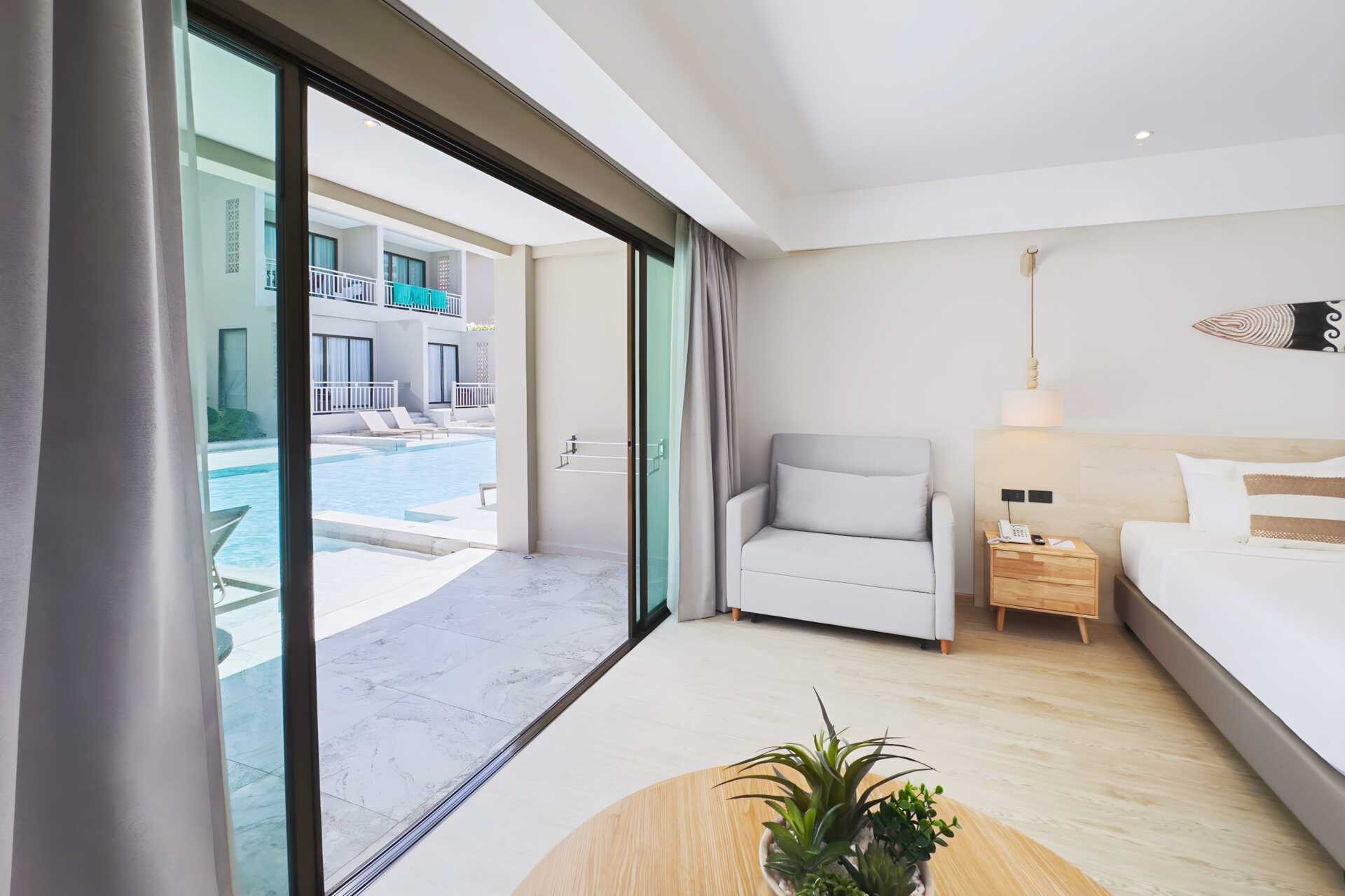 Dobbeltværelse med udgang til delt pool fra terrassen i stueplan. På terrassen er der to solstole samt et bord og stole. Værelserne er placeret i Hive Wing-delen af hotellet. En dobbeltseng. Mulighed for ekstra opredning i sovesofa. Gratis wifi, aircondition og deponering. Køleskab. El-kedel og kaffe/te. Tv med internationale kanaler. Hårtørrer. Badekåber og tøfler. Badeværelse med badekar og toilet. Rengøring 7 gange om ugen. Børn under to år tæller med i det maksimale antal personer på værelset.