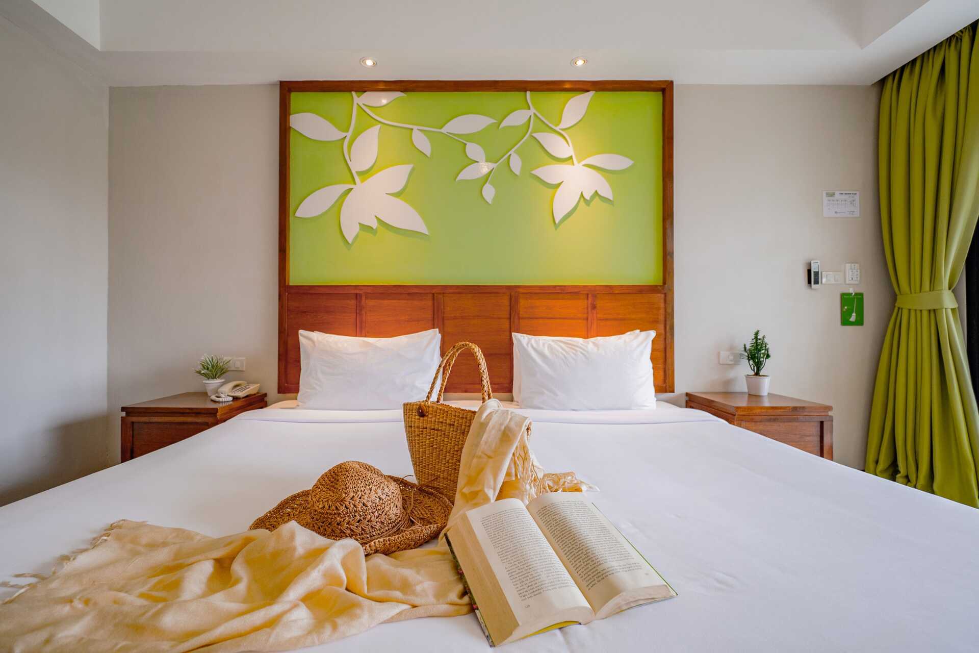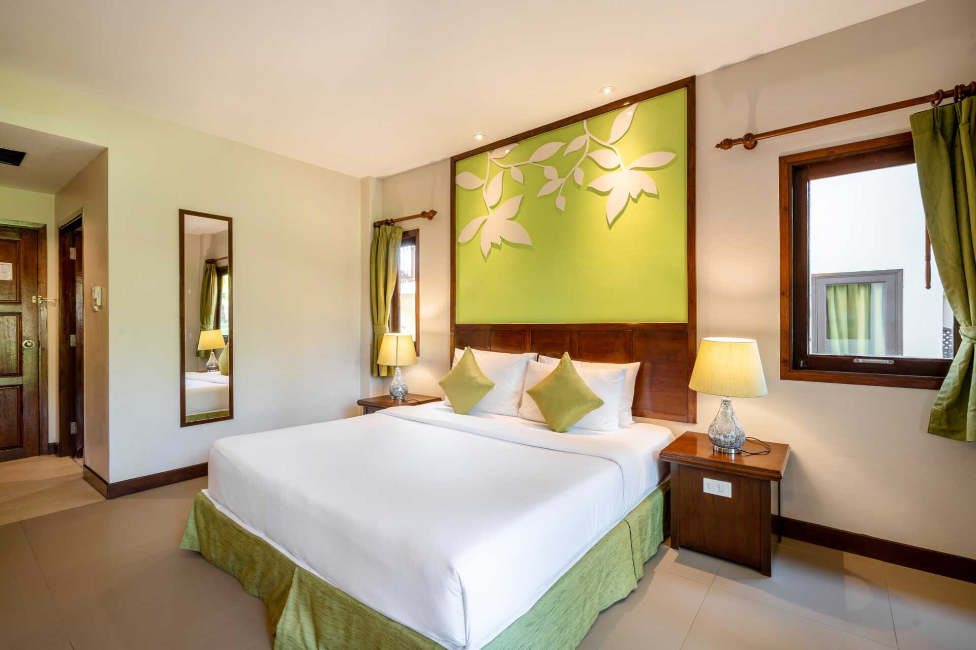 Dobbeltværelse med balkon eller terrasse med udsigt til haven. En dobbeltseng eller to enkeltsenge. Mulighed for ekstra opredning i sovesofa, i klapseng eller i eksisterende senge. Gratis wifi, aircondition og deponering. Køleskab. El-kedel og kaffe/te. Tv med internationale kanaler. Paraply. Hårtørrer. Badeværelse med bruser og toilet. Rengøring 7 gange om ugen.