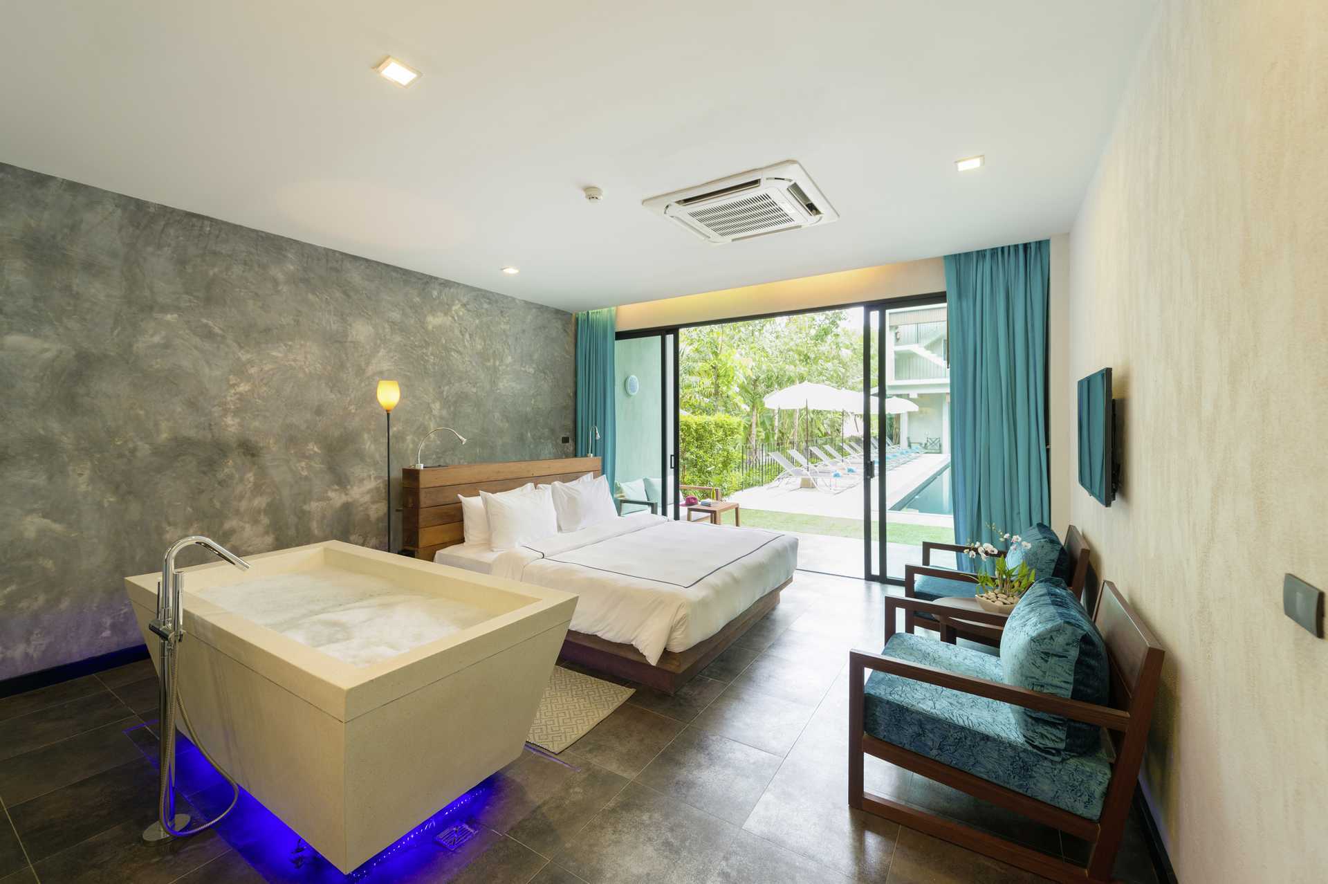 Dobbeltværelse med balkon eller terrasse. Værelserne er placeret i hotellets fem-etagers hovedbygning i Bay Wing. En dobbeltseng. Gratis wifi, aircondition og deponering. Køleskab. El-kedel og kaffe/te. Tv med internationale kanaler. Paraply. Badekåber og tøfler. Hårtørrer. Åben plan til bad og toilet. Materet glasvæg mellem værelse og badeværelse. Rengøring 7 gange om ugen.