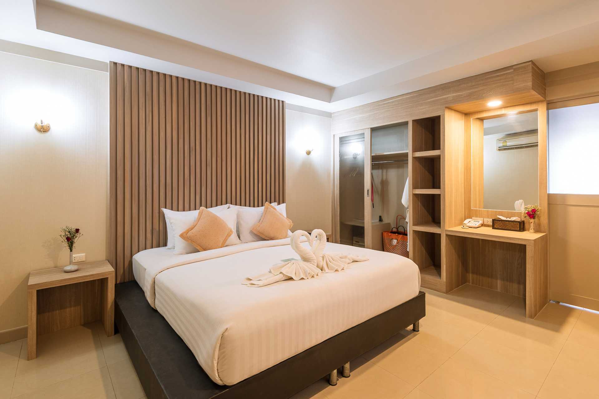 Dobbeltværelse med udeplads, pooladgang og pooludsigt. Værelserne er placeret i en større bygning. En dobbeltseng eller to enkeltsenge. Gratis wifi, aircondition og deponering. Køleskab. El-kedel og kaffe/te. Tv med internationale kanaler. Hårtørrer. Badeværelse med bruser og toilet. Rengøring 7 gange om ugen.
