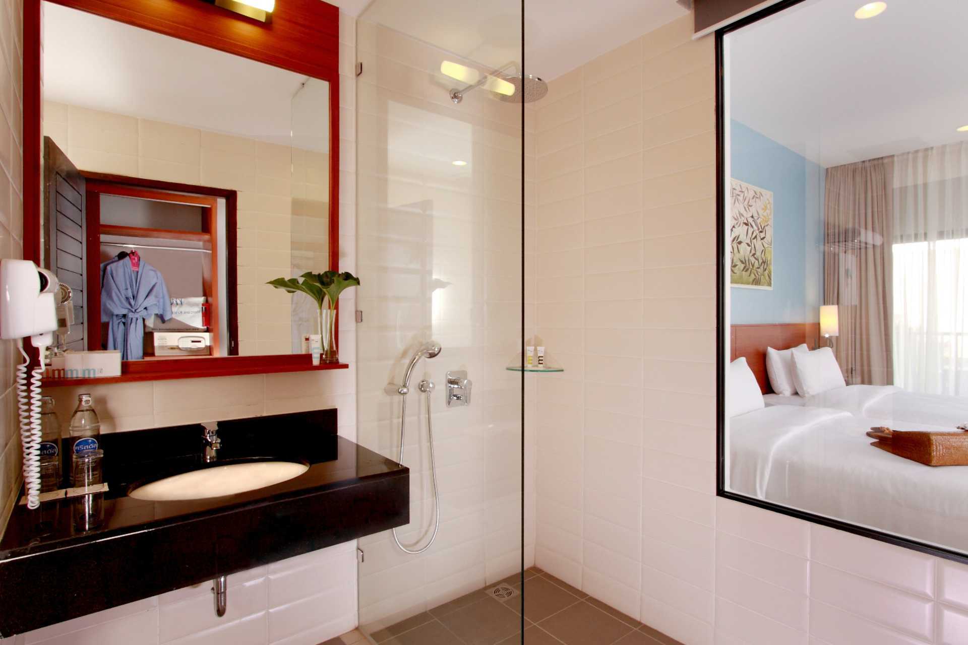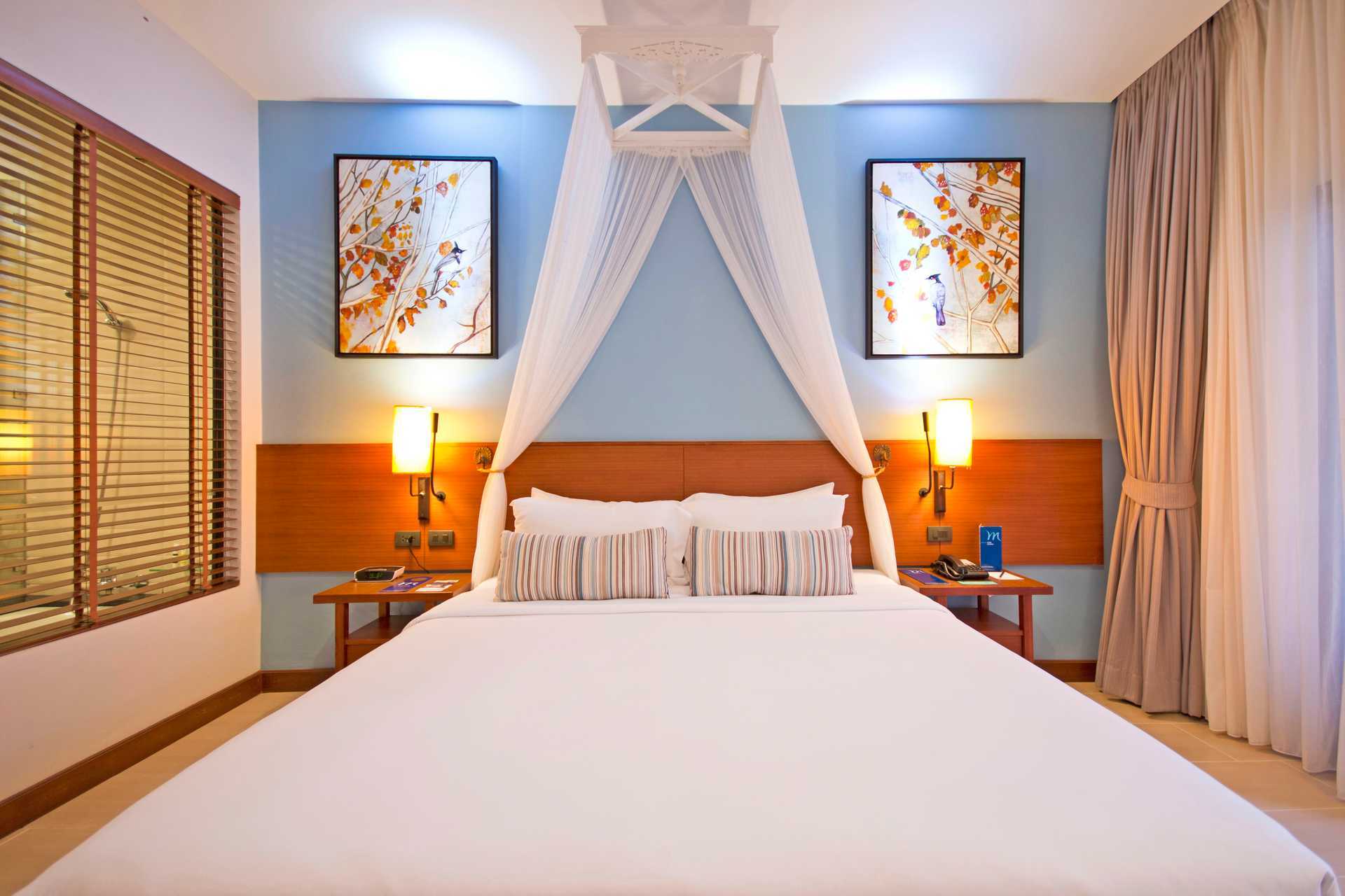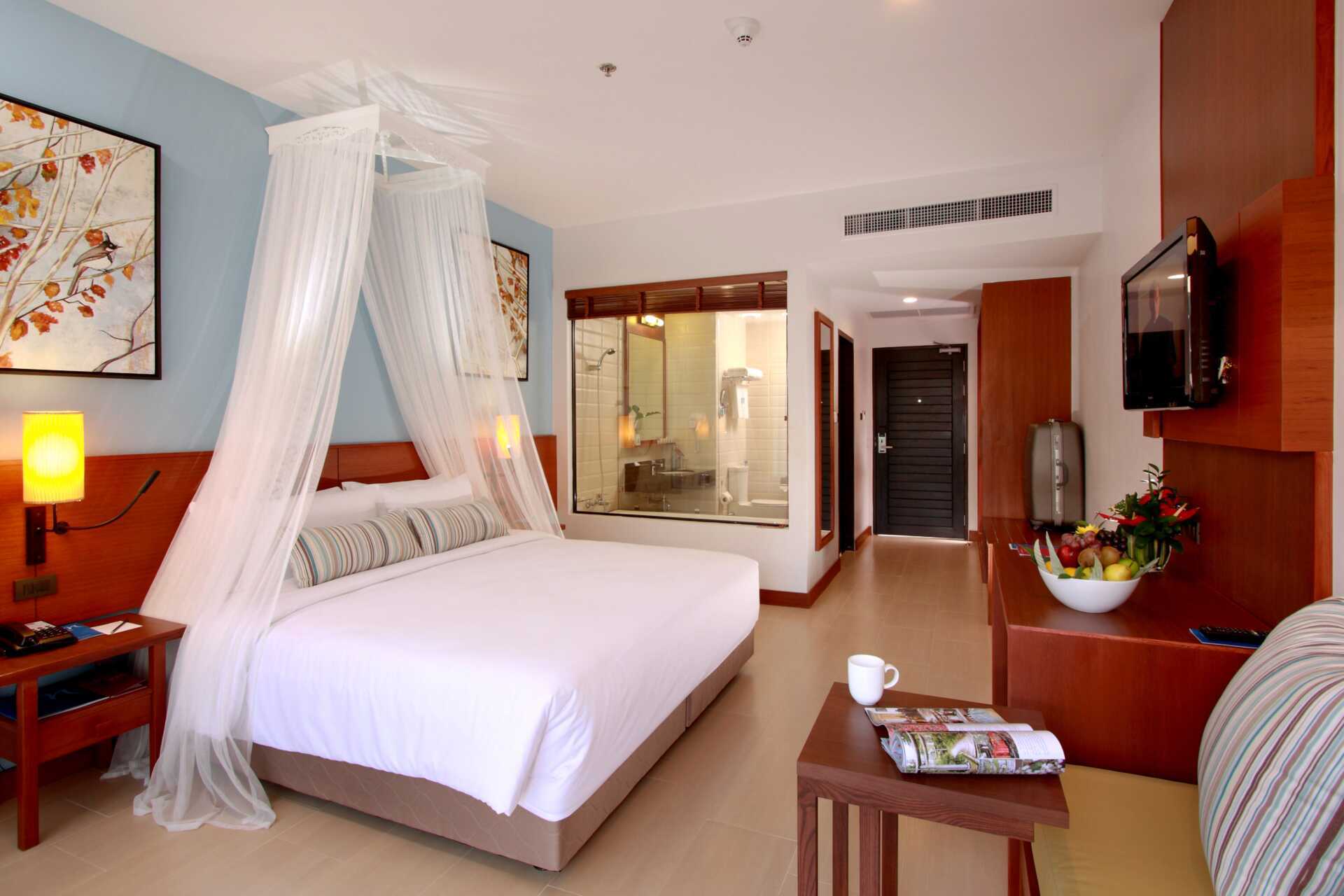 Deluxe-værelser med pool adgang fra terrassen ned til en delt pool. Der er en loungestol på terrassen. En dobbeltseng og en enkeltseng. Mulighed for ekstra opredning i eksisterende senge. Gratis wifi, aircondition og deponering. Minibar. El-kedel og kaffe/te. Tv med internationale kanaler. Strygefaciliteter. Badekåber og tøfler. Pool- og strandhåndklæder er på værelset ved ankomst. Hårtørrer. Badeværelse med badekar med bruser og toilet. Rengøring 7 gange om ugen.