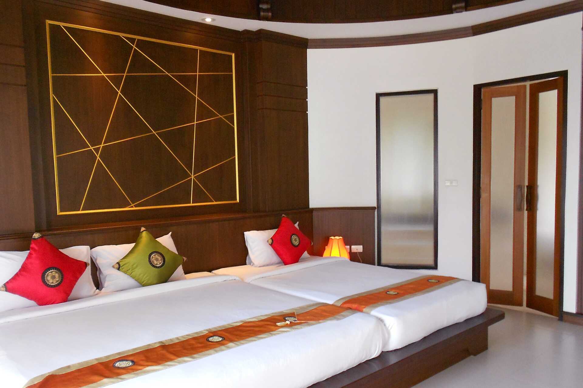 Større dobbeltværelse i bungalows med jacuzzi på terrassen i stueplan. En dobbeltseng og en enkeltseng. Mulighed for ekstra opredning i eksisterende senge. Gratis wifi, aircondition og deponering. Minibar. El-kedel samt kaffe/te. Tv med internationale kanaler. Hårtørrer. Badeværelse med jacuzzi, bruser og toilet. Rengøring 7 gange om ugen.