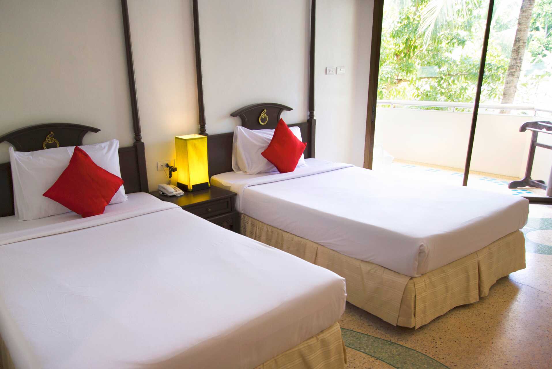 Deluxe-værelser med balkon eller terrasse. En dobbeltseng og en enkeltseng. Mulighed for ekstra opredning i eksisterende senge. Gratis wifi, aircondition og deponering. Minibar. El-kedel samt kaffe/te. Tv med internationale kanaler. Hårtørrer. Badeværelse med badekar og toilet. Rengøring 7 gange om ugen.