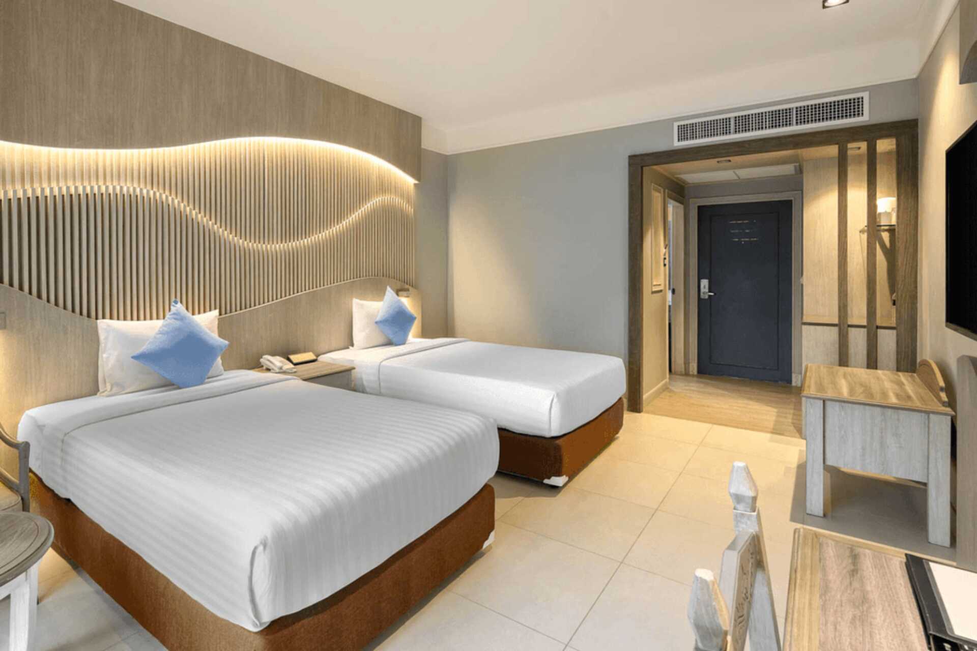 Deluxe-værelser med balkon eller terrasse, nogle med udsigt til pool. En dobbeltseng eller to enkeltsenge. Mulighed for ekstra opredning i fold ud-seng. Gratis wifi, aircondition og deponering. Minibar. El-kedel og kaffe/te. Tv med internationale kanaler. Badekåber og tøfler. Hårtørrer. Badeværelse med badekar og toilet. Rengøring 7 gange om ugen. Børn under to år tæller med i det maksimale antal personer på værelset.