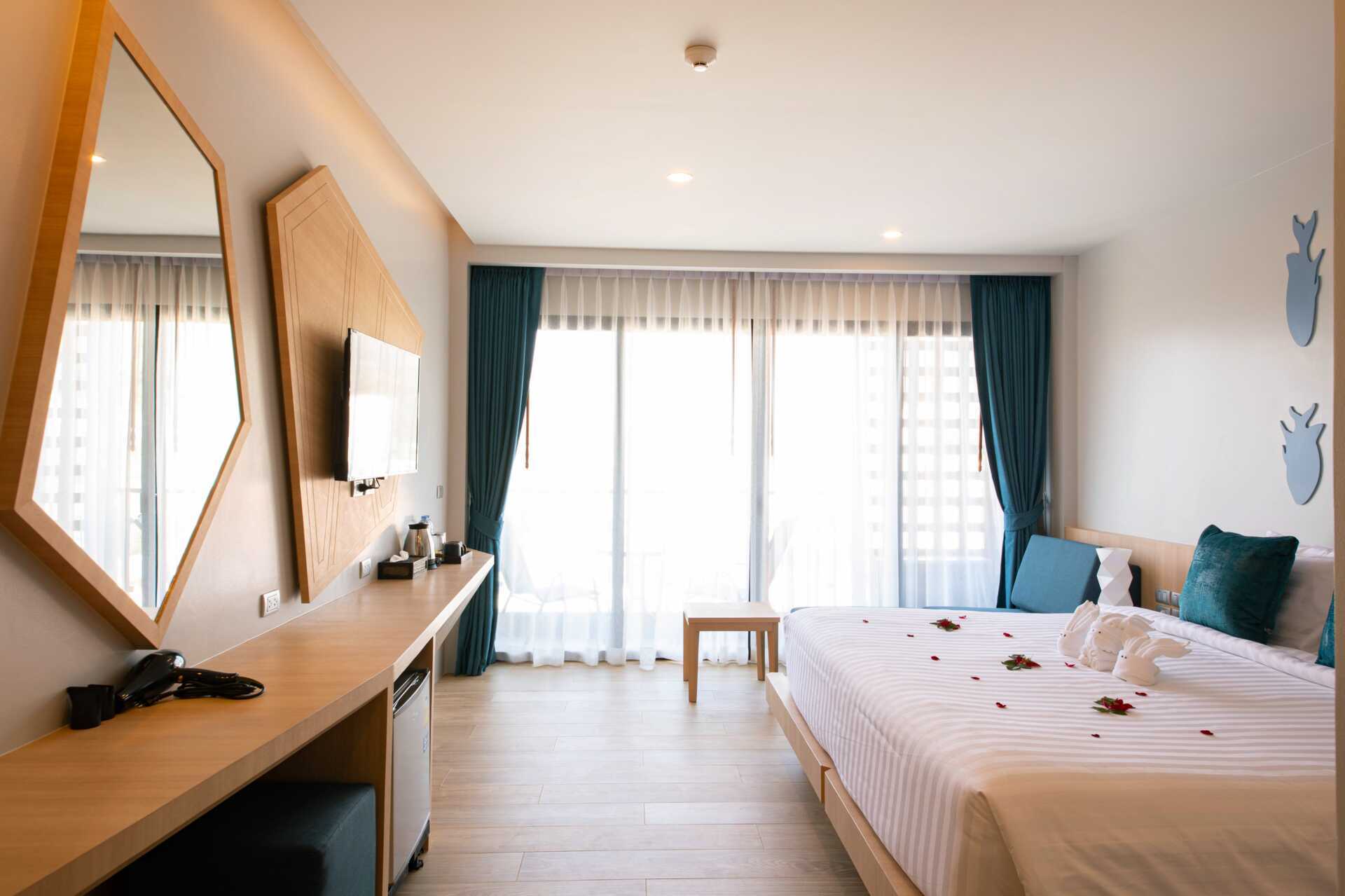 Deluxe-værelse med balkon. En dobbeltseng og mulighed for en ekstra opredning i en enkeltseng. Gratis wifi, aircondition og deponering. Køleskab. El-kedel samt kaffe/te. Tv med internationale kanaler. Badekåber og tøfler. Hårtørrer. Badeværelse med bruser og toilet. Rengøring 7 gange om ugen.