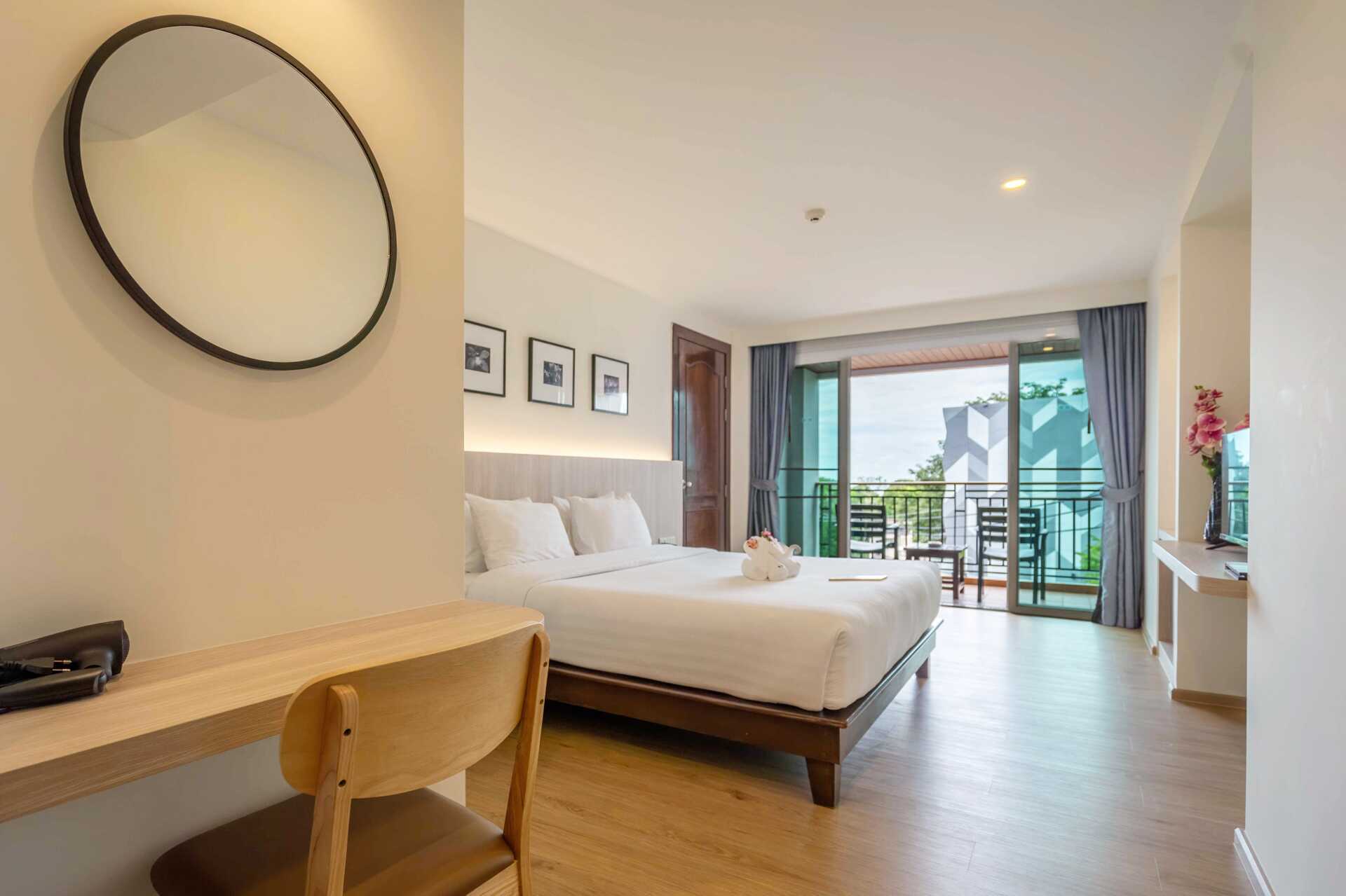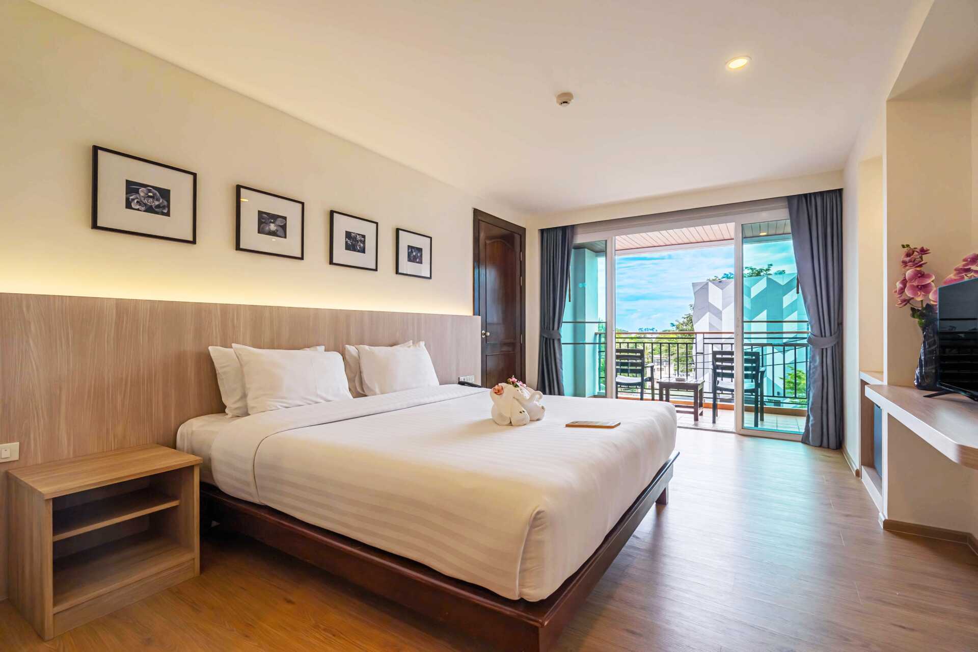 Deluxe-værelser med balkon og delvis havudsigt. En dobbeltseng eller to enkeltsenge. Mulighed for en ekstra opredning til en tredje person. Den fjerde person skal være et barn og dele en almindelig seng. Gratis wifi, deponering og aircondition. Køleskab. El-kedel og kaffe/te. Tv med internationale kanaler. Hårtørrer. Badeværelse med bruser og toilet. Rengøring 7 gange om ugen.