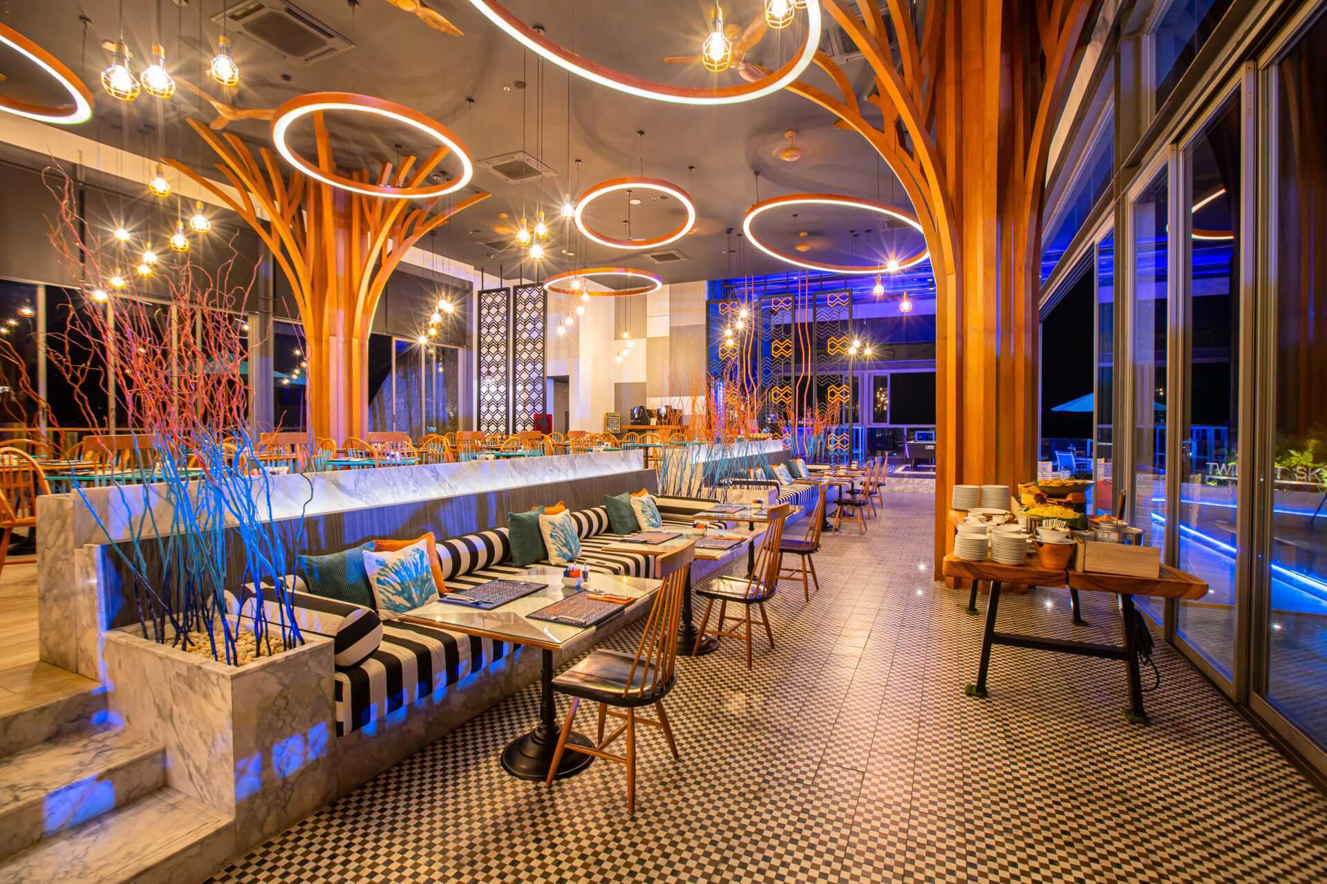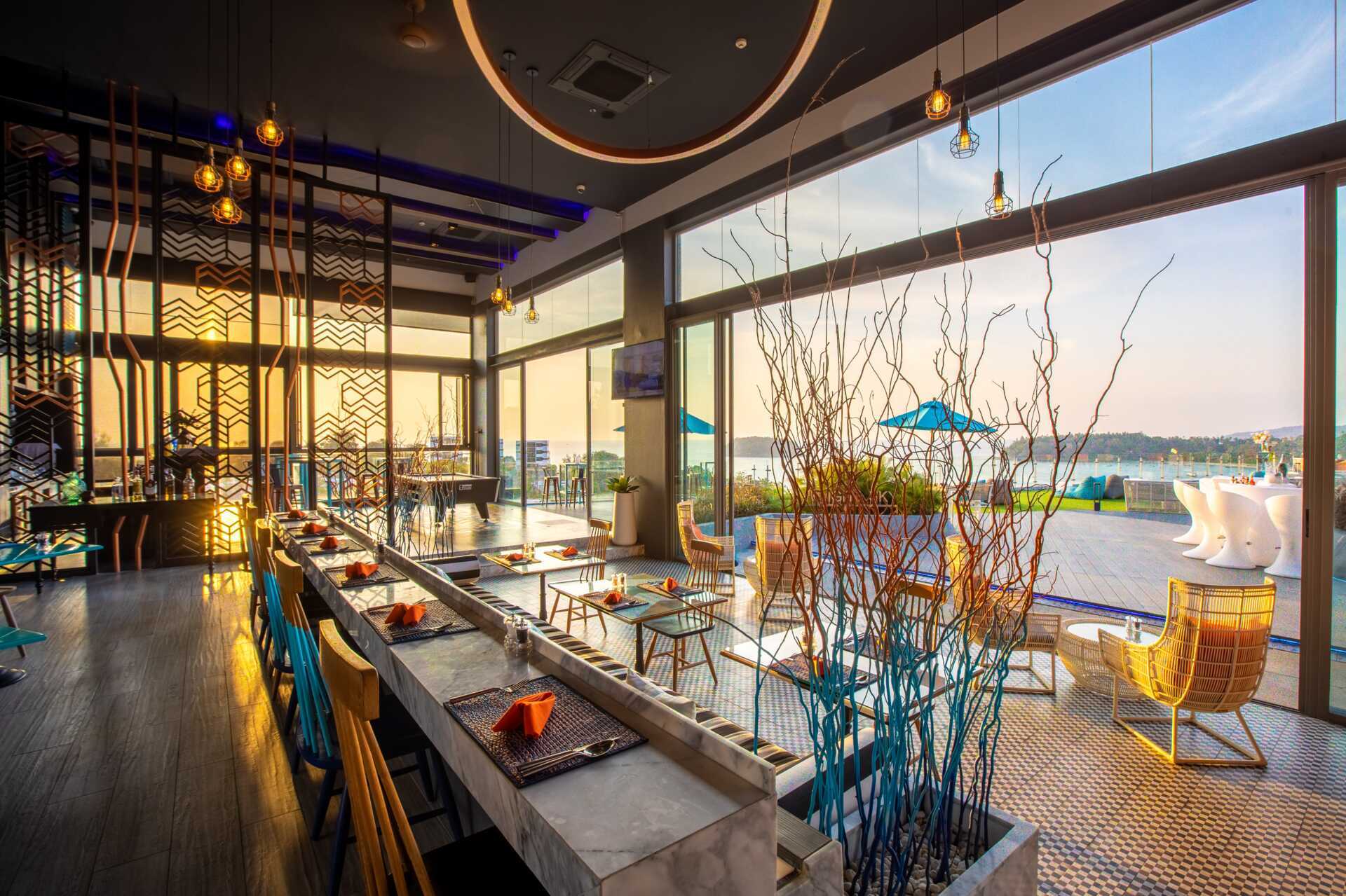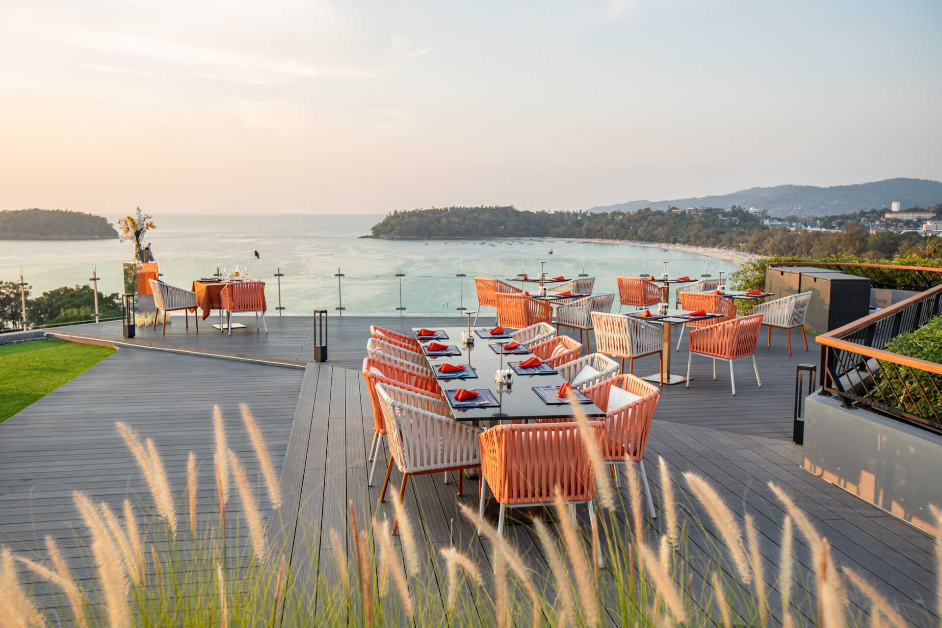 Fantastisk udsigt fra deres skybar på 4. etage. Happy houer kan varmt anbefales - nyd en drink samtidig med solnedgang på første række og udsigt over Kata by og strand. Fremragende intet indre. Parkering muligt i P-kælder.