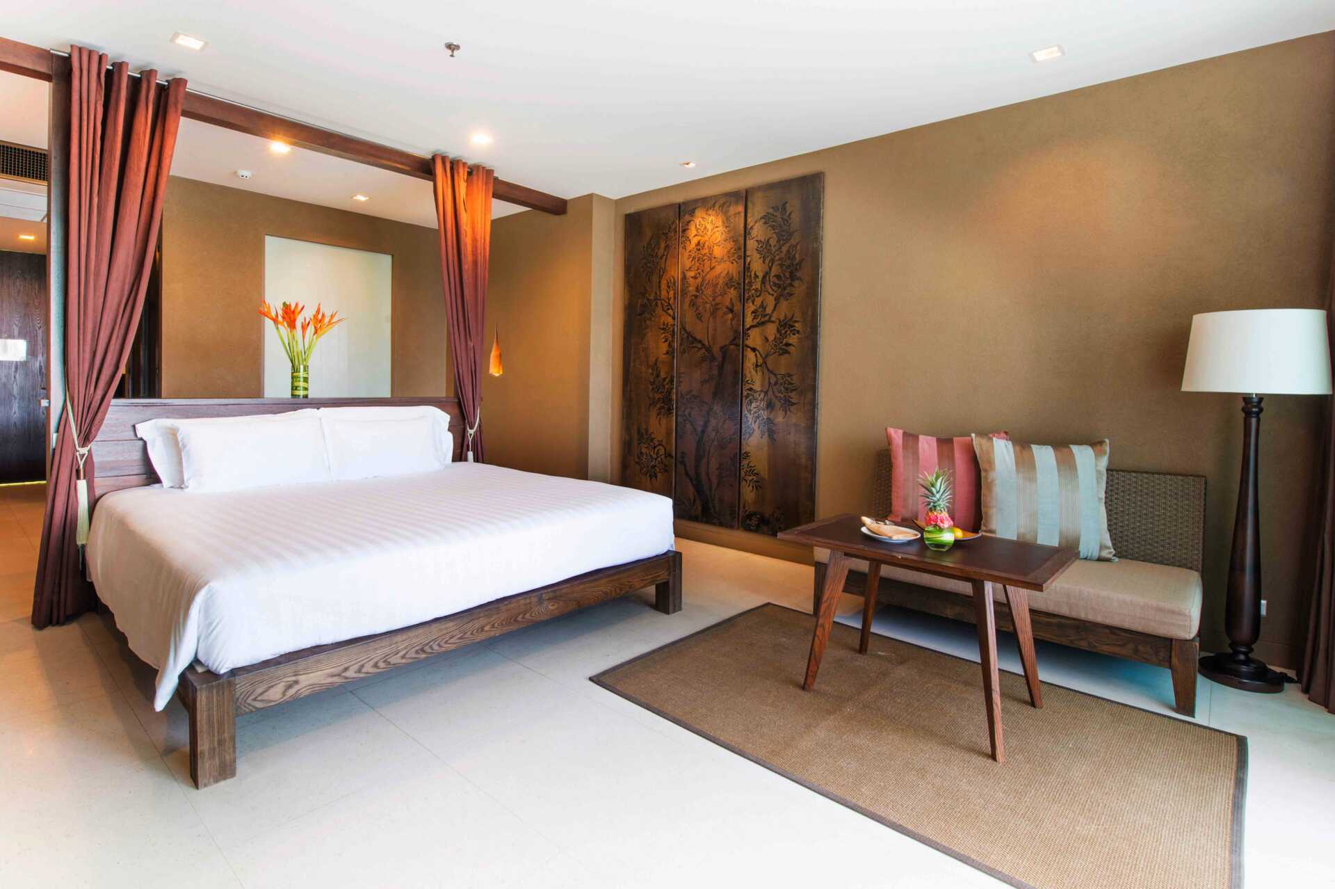 Bungalows med privat pool og smuk udsigt over Nai Harn-søen og de nærliggende bjerge. På terrassen er der solstole, stole og borde. Poolen er ca. 24 kvm. En dobbeltseng eller to enkeltsenge. Mulighed for ekstra opredning. Minibar. El-kedel samt kaffe/te. Kaffemaskine. Tv med internationale kanaler. Badekåber og tøfler. Hårtørrer. Badeværelse med badekar og seperat bruser samt toilet. Rengøring 7 gange om ugen.