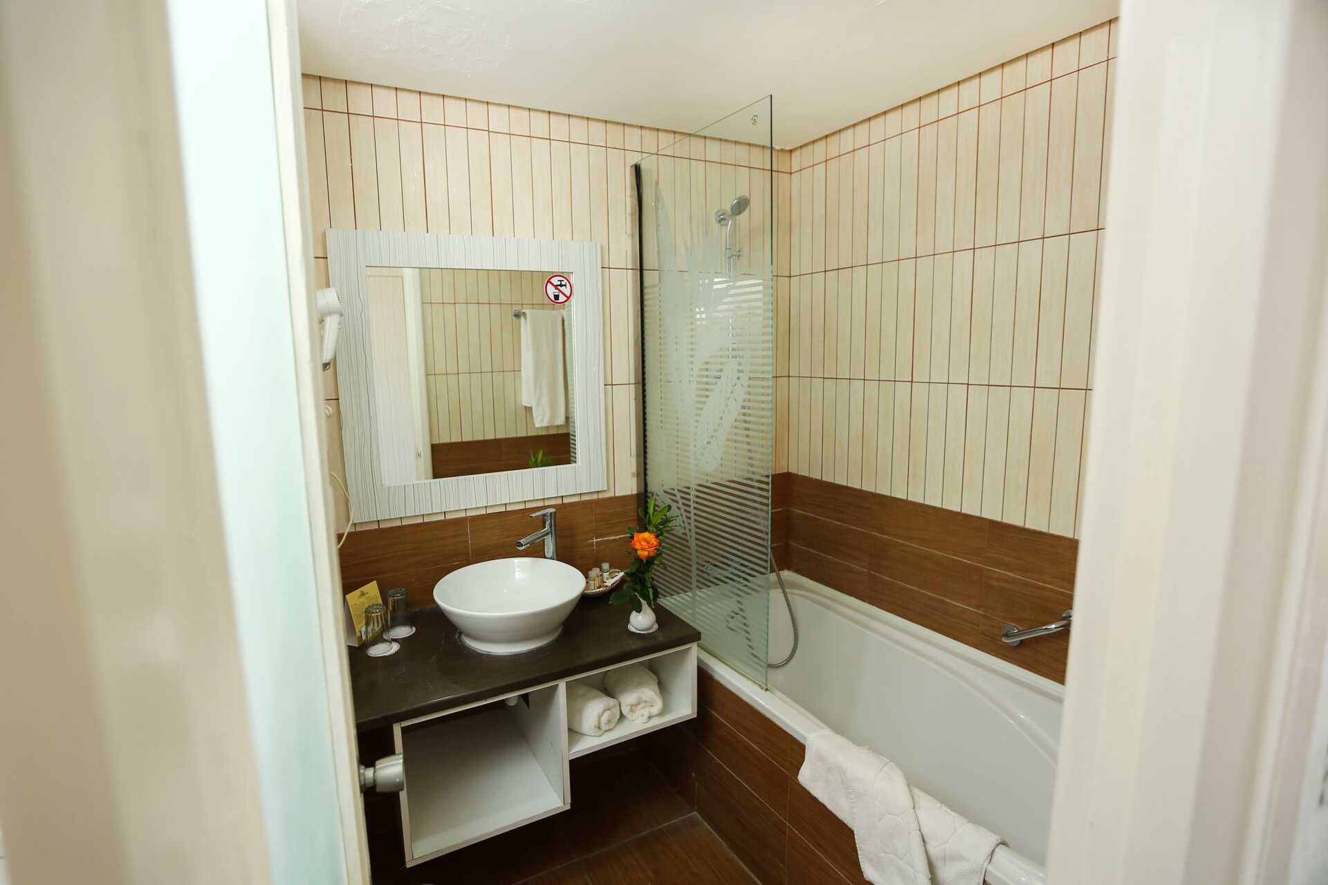 Familie-værelser med balkon eller terrasse. Værelserne er placeret i hotellets hovedbygning. To enkeltsenge. Mulighed for ekstra opredning i to enkeltsenge. Gratis wifi og aircondition. Vær opmærksom på, at aircondition kun er tilgængelig på værelserne mellem 15. juni og 30. september. Deponering mod betaling. Minibar mod betaling, en flaske vand er inkluderet og genopfyldes hver dag. Tv med internationale kanaler. Væg til væg-tæppe. Hårtørrer. Badeværelse med badekar eller bruser og toilet. Rengøring 7 gange om ugen.