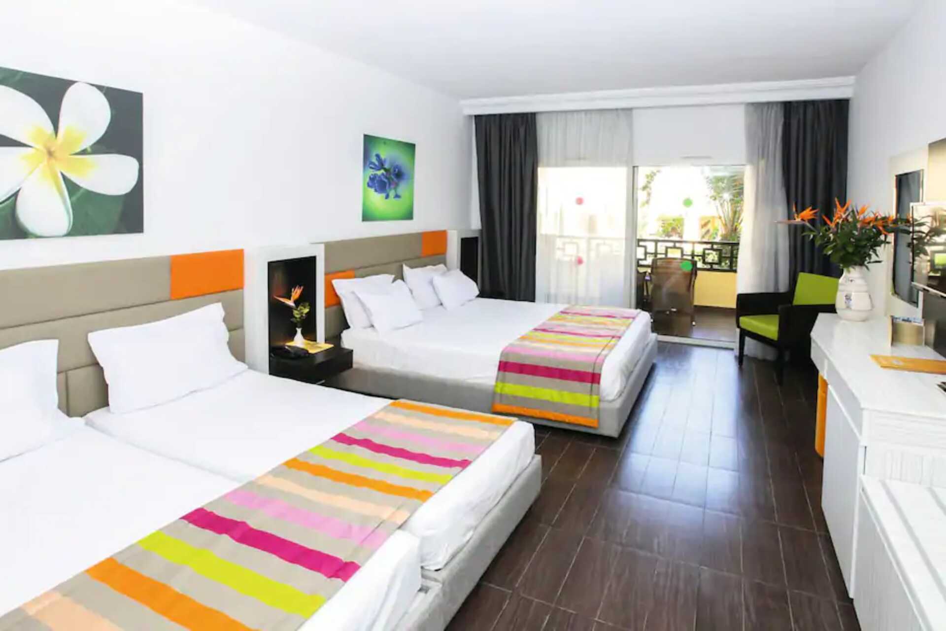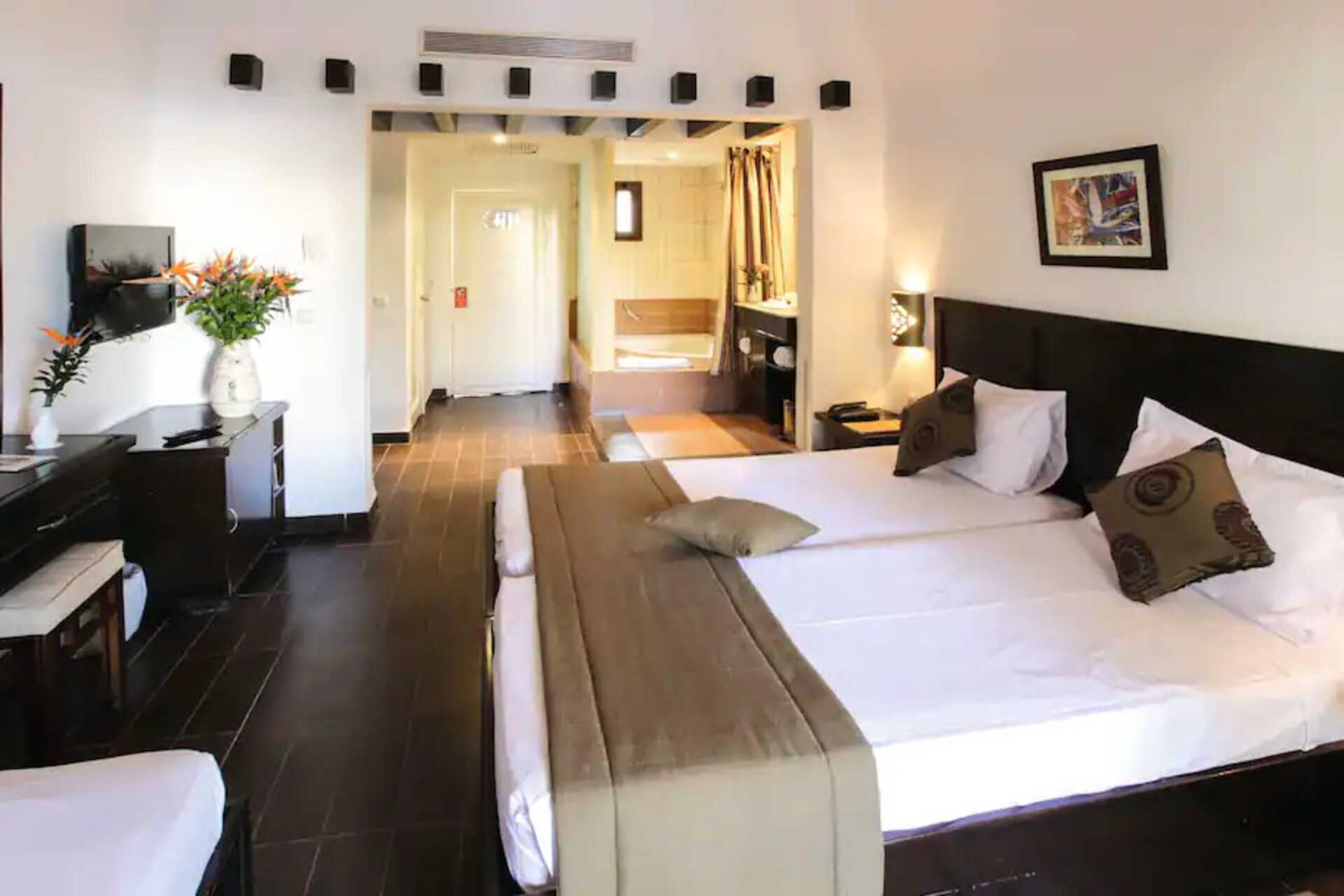 Dobbeltværelser i bungalow med balkon eller terrasse. To enkeltsenge. Mulighed for ekstra opredning i enkeltseng. Gratis wifi og aircondition. Vær opmærksom på, at aircondition kun er tilgængelig på værelserne mellem 15. juni og 30. september. Deponering mod betaling. Minibar mod betaling, en flaske vand er inkluderet og genopfyldes hver dag. Tv med internationale kanaler. Væg til væg-tæppe. Hårtørrer. Badeværelse med badekar eller bruser og toilet. Rengøring 7 gange om ugen.