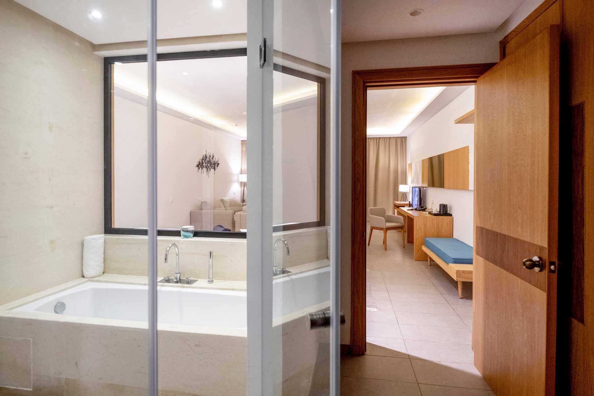Suite med balkon eller terrasse. I suiten er der en dobbeltseng og en sofagruppe. Mulighed for ekstra opredning i sovesofa. Gratis wifi, aircondition og deponering. Køleskab. Kaffemaskine. Tv med internationale kanaler. Badekåber og tøfler. Hårtørrer. Badeværelse med badekar eller bruser samt toilet. Rengøring 7 gange om ugen. Børn under to år tæller med i det maksimale antal personer på værelset.