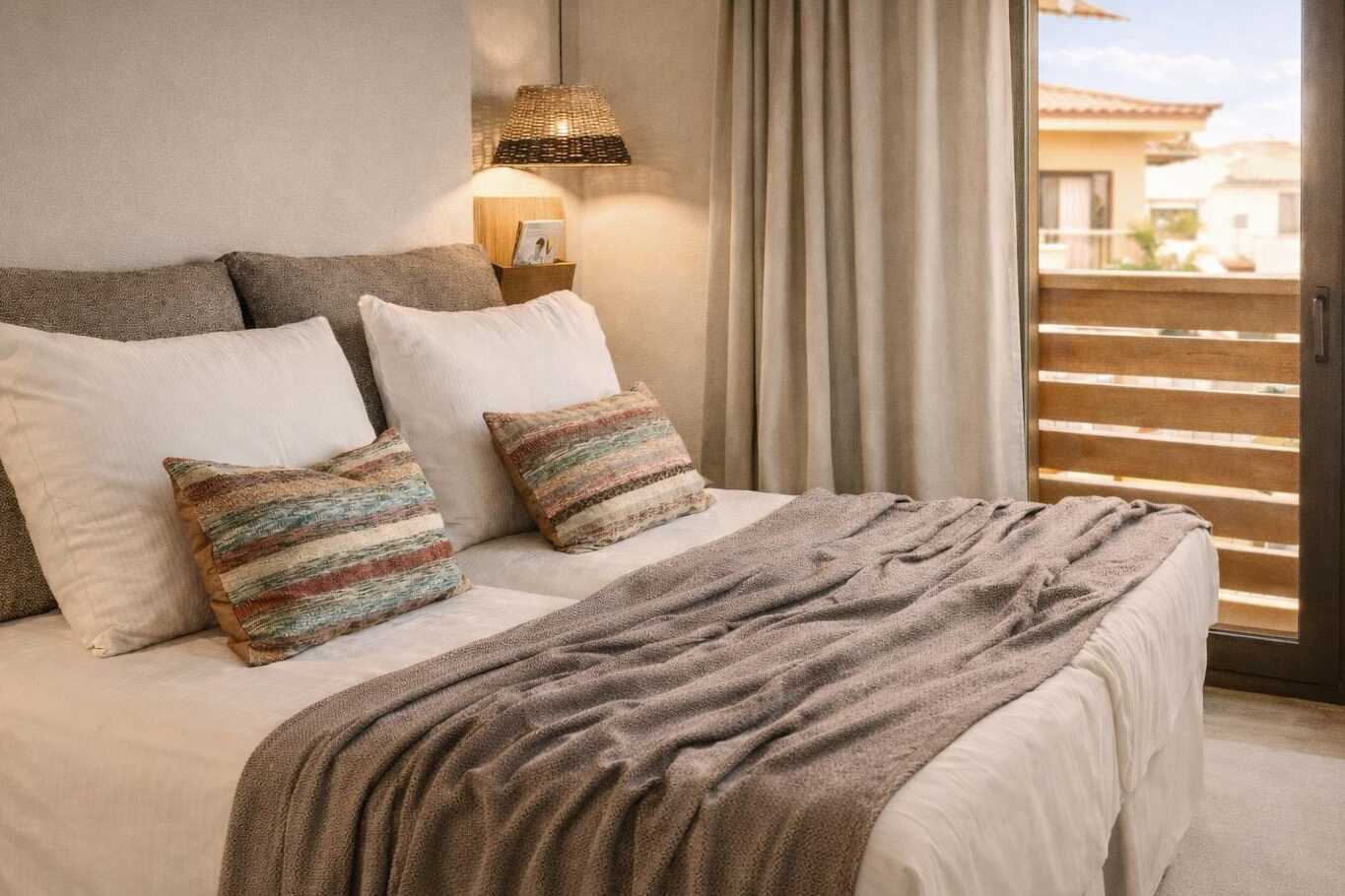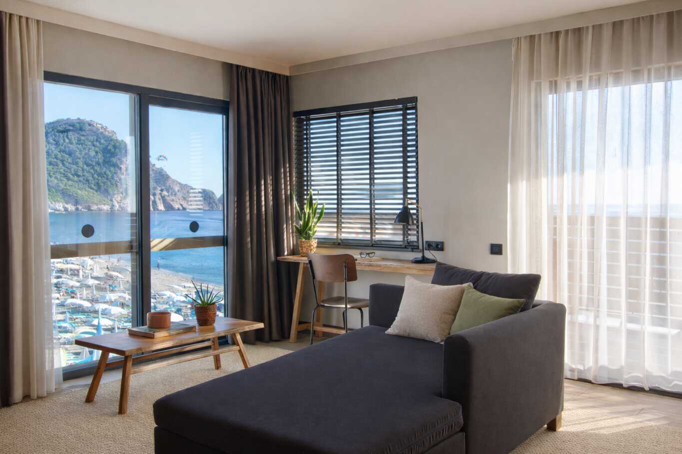 Suite med balkon eller terrasse, nogle med havudsigt eller begrænset havudsigt. Et soveværelse med en dobbeltseng eller to enkeltsenge og et opholdsrum med en sovesofa. Gratis wifi, aircondition og deponering. Køleskab og el-kedel. Tv med internationale kanaler. Hårtørrer. Badeværelse med bruser og toilet. Rengøring 7 gange om ugen.