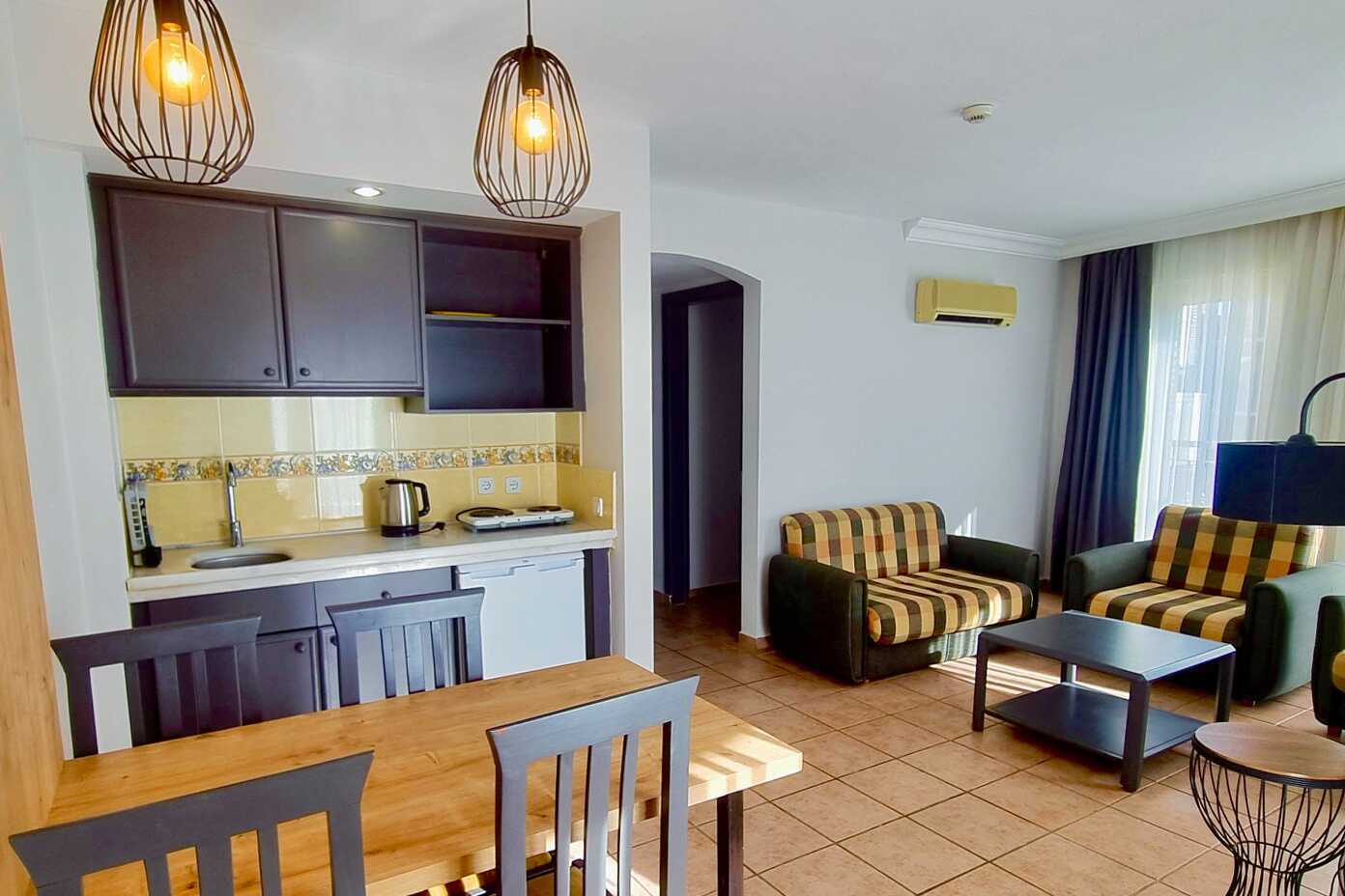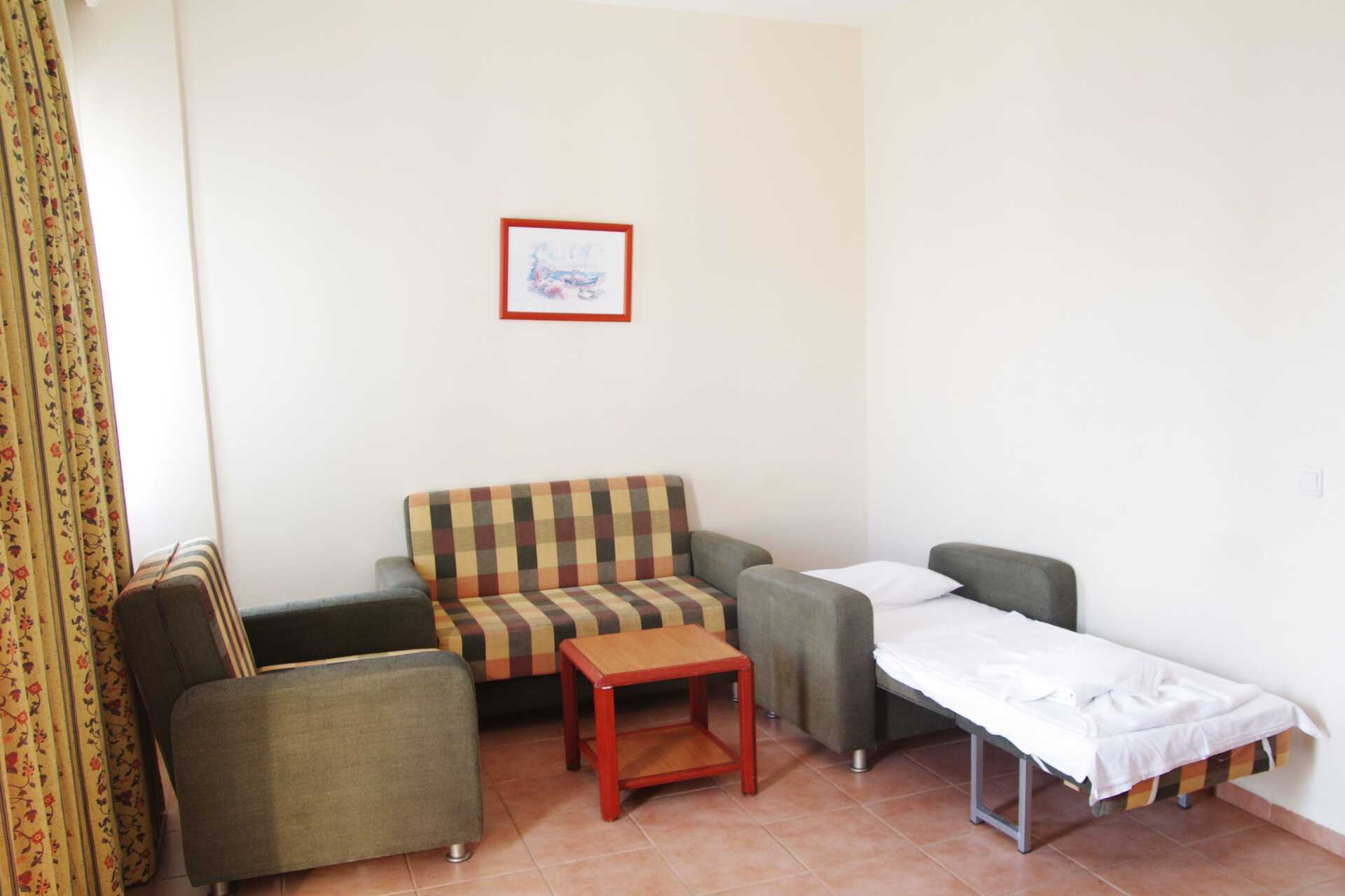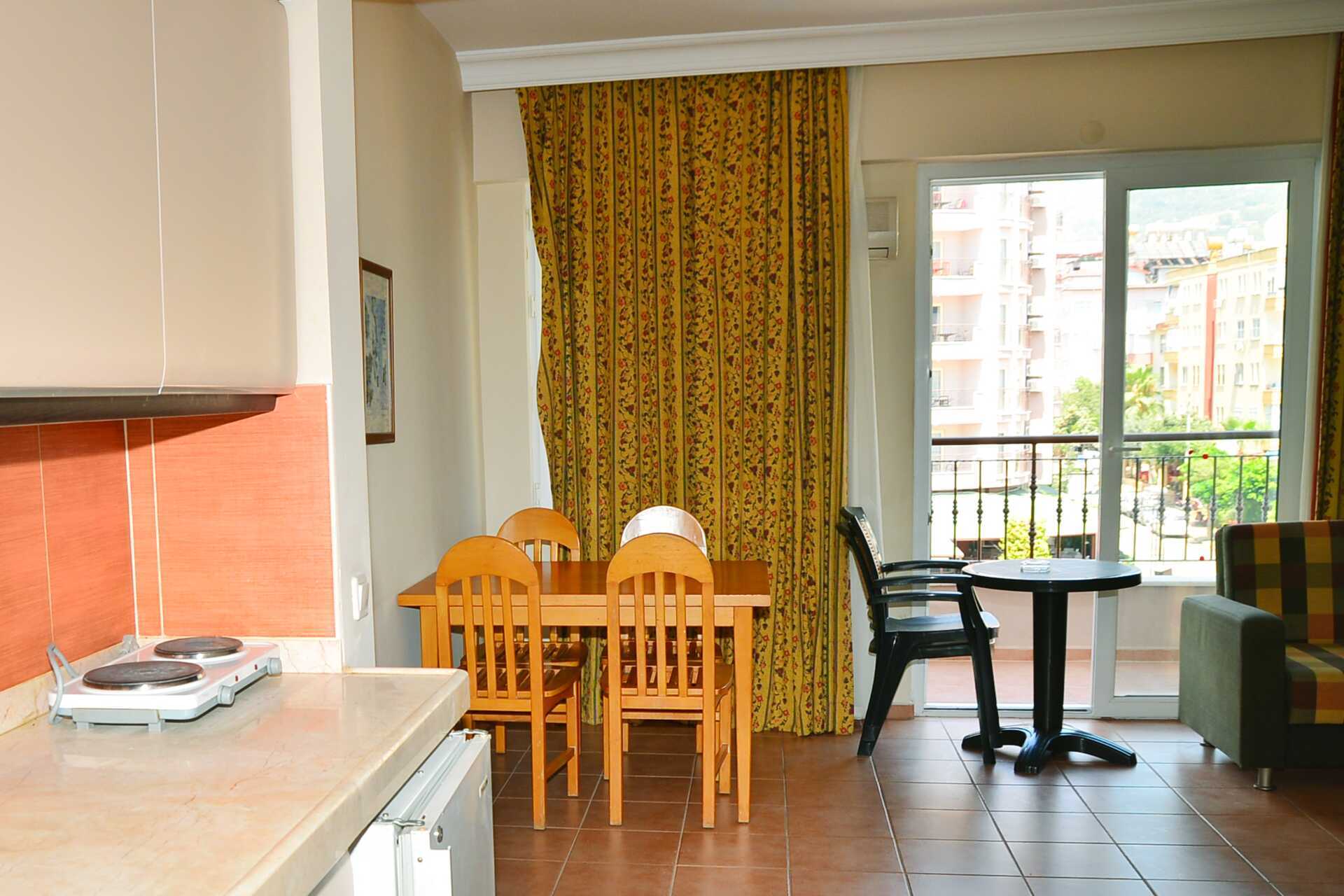2-værelses lejlighed med balkon. Et soveværelse og et kombineret opholdsrum/minikøkken. To enkeltsenge. Mulighed for ekstra opredning i sovesofa. Minikøkken med køleskab, kogeplader, el-kedel og enkelt køkkenudstyr. Wifi, aircondition og deponering mod betaling. Hårtørrer. Badeværelse med badekar eller bruser samt toilet. Rengøring 7 gange om ugen.