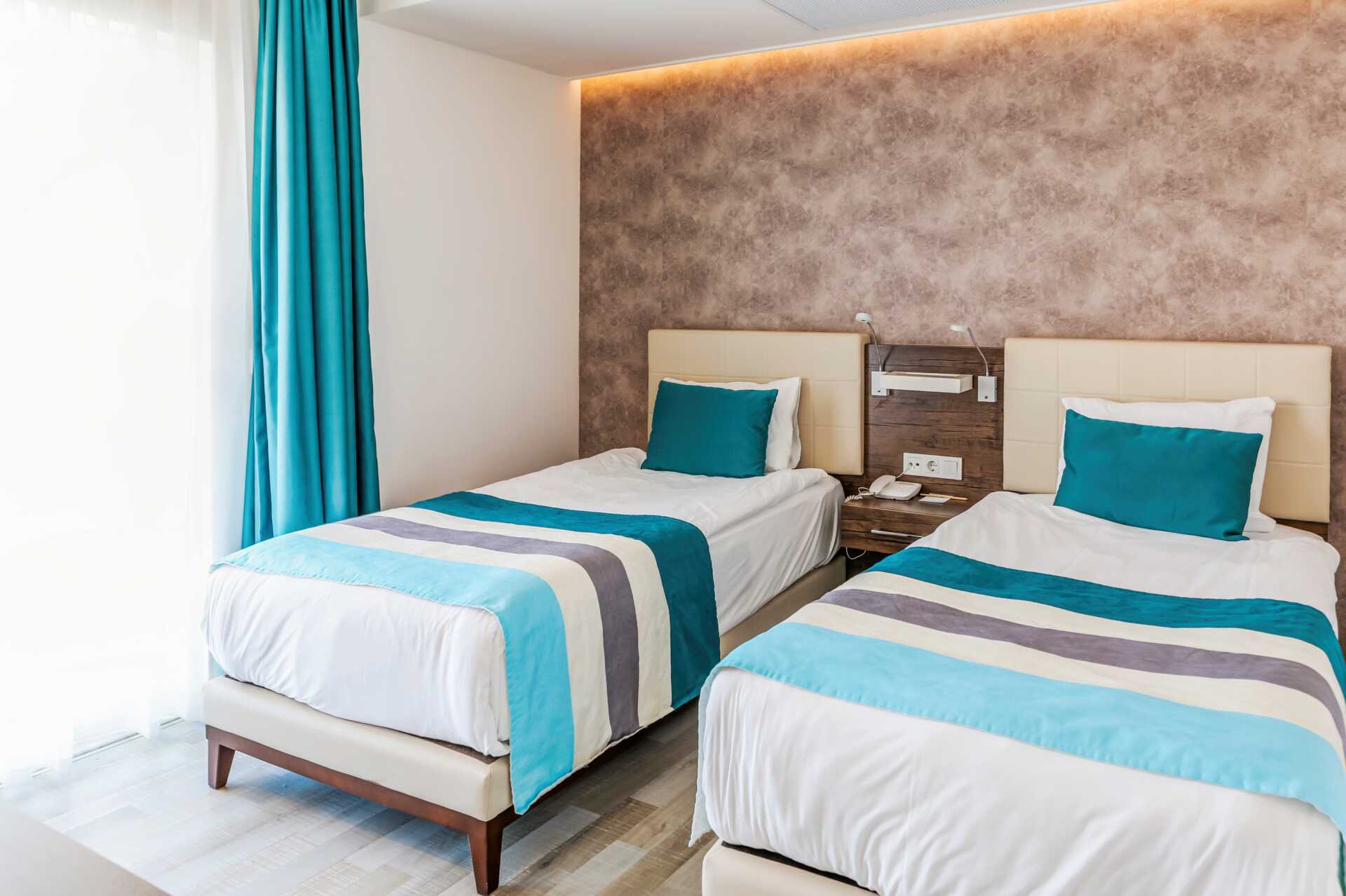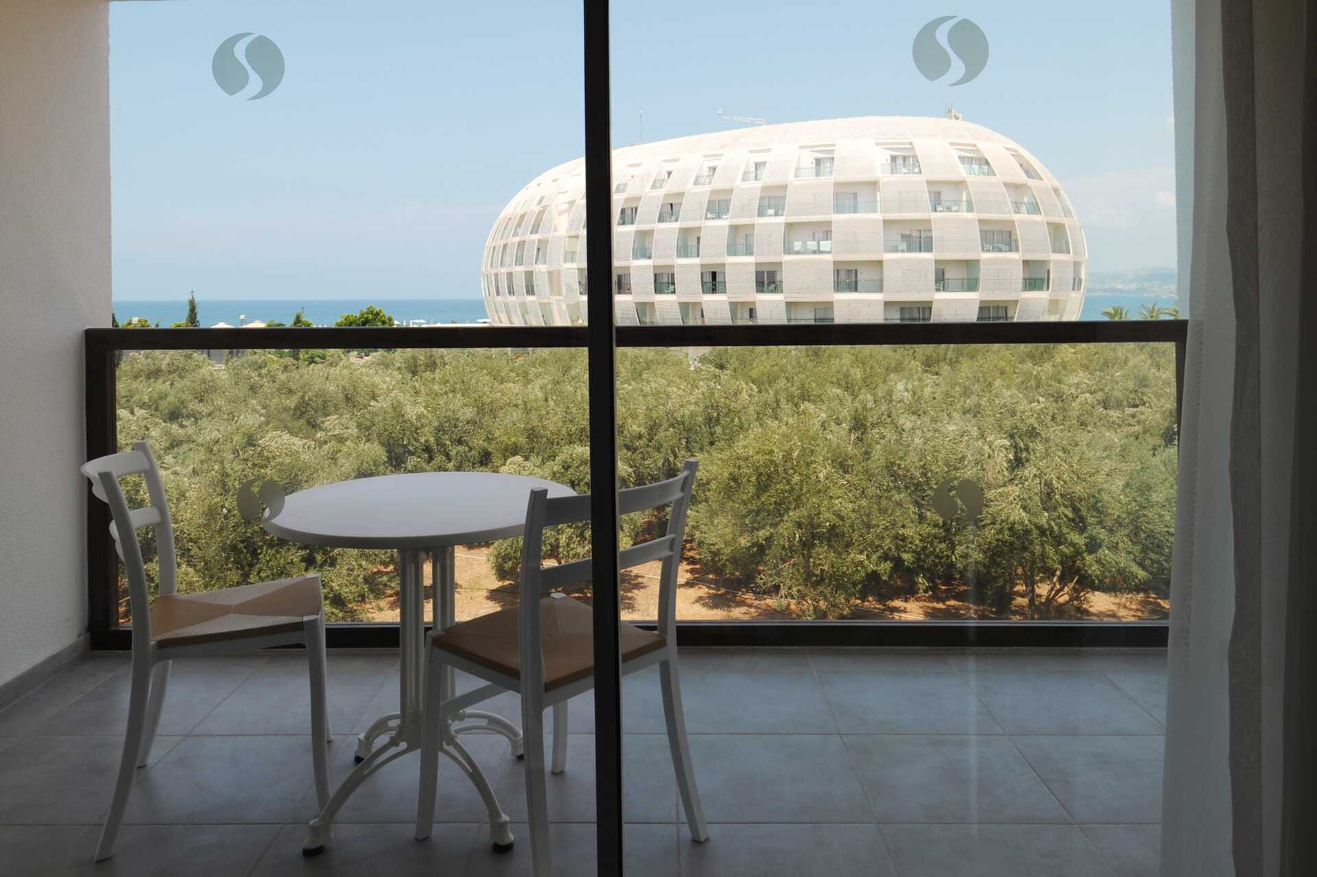 Familie-værelse med balkon og delvis havudsigt. To soveværelser, et med dobbeltseng og et med to enkeltsenge. Mulighed for ekstra opredning til et barn i eksisterende senge. Gratis wifi, aircondition og deponering. Minibar med alkoholfrie drikkevarer, øl og vand. El-kedel og kaffe/te. Tv med internationale kanaler. Hårtørrer. Tøfler. Badeværelse med bruser og toilet. Rengøring 7 gange om ugen.