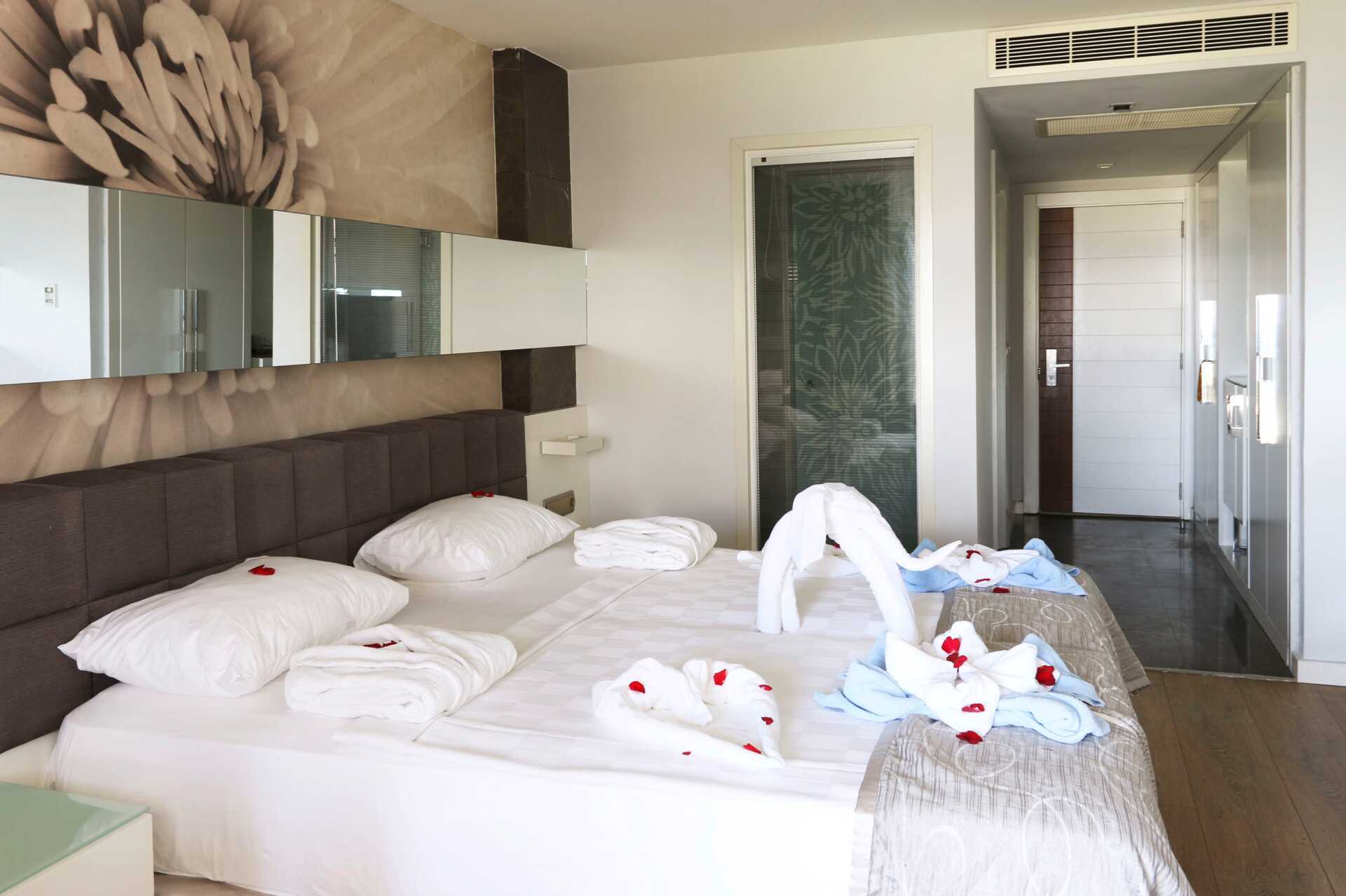 Superior-værelse med balkon med en nedsænket jacuzzi og delvis havudsigt. En dobbeltseng eller to enkeltsenge. Gratis wifi, aircondition og deponering. Minibar med alkoholfrie drikkevarer, øl og vand. El-kedel og kaffe/te. Tv med internationale kanaler. Hårtørrer. Tøfler. Badeværelse med bruser og toilet. Rengøring 7 gange om ugen.