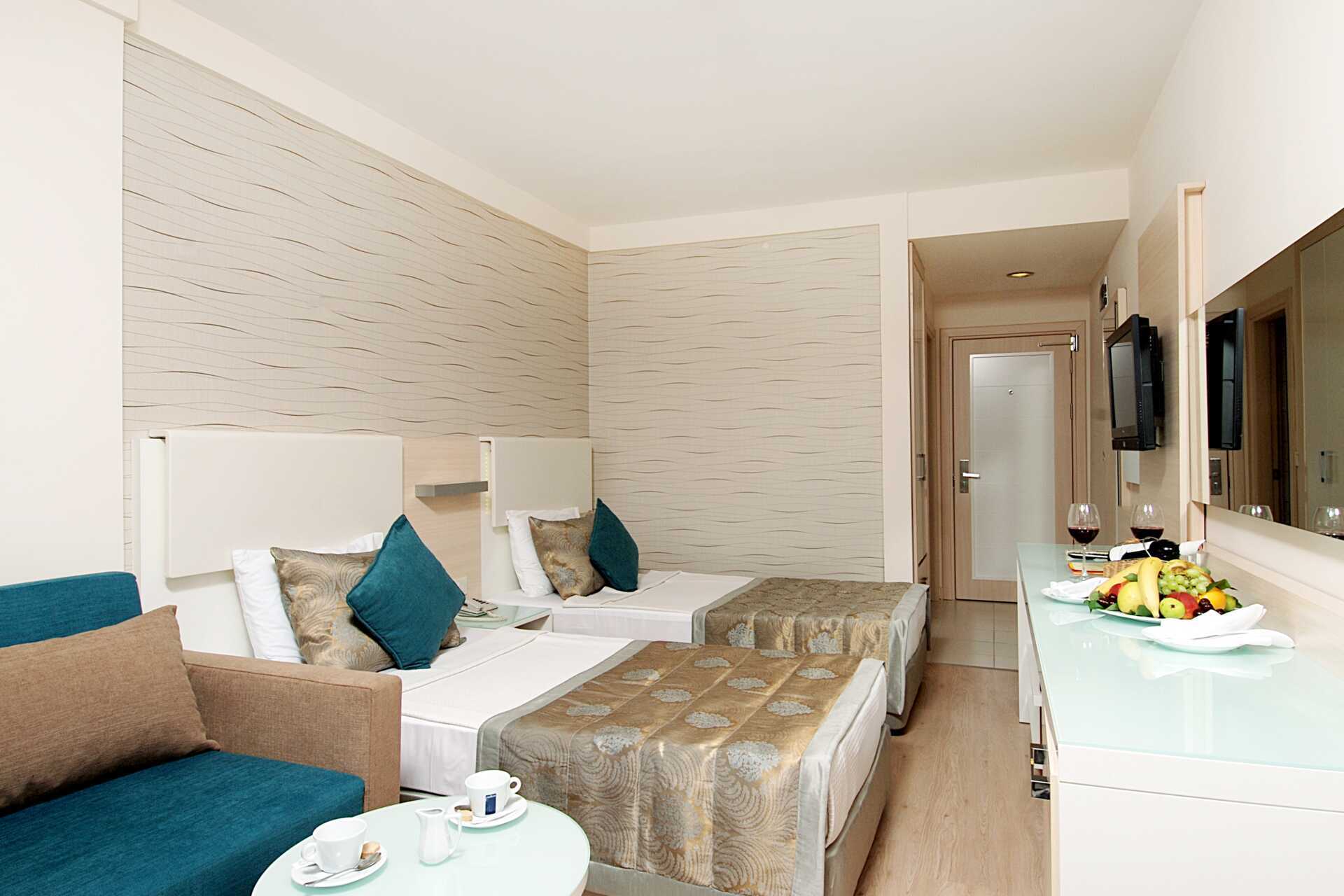 Dobbeltværelser med balkon, nogle med delvis havudsigt. En dobbeltseng eller to enkeltsenge. Mulighed for ekstra opredning i sovesofa. Gratis wifi og aircondition. Deponering mod betaling. Minibar. El-kedel og kaffe/te. Tv med internationale kanaler. Strygejern og strygebræt. Tøfler. Hårtørrer. Badeværelse med bruser og toilet. Rengøring 7 gange om ugen.