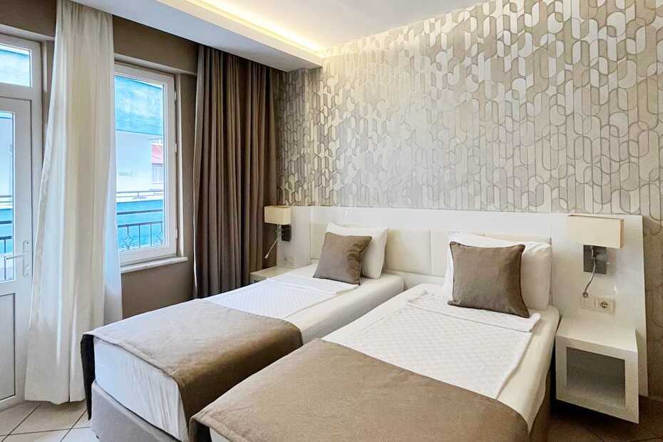 2-værelses lejligheder med balkon. Soveværelse og et kombineret opholdsrum og minikøkken. To enkeltsenge. Mulighed for ekstra opredning i sovesofa. Minikøkken med kogeplader, køleskab, mikroovn, el-kedel og enkelt køkkenudstyr. Gratis wifi. Aircondition mod betaling. Tv med internationale kanaler. Hårtørrer. Badeværelse med bruser og toilet. Rengøring 7 gange om ugen.