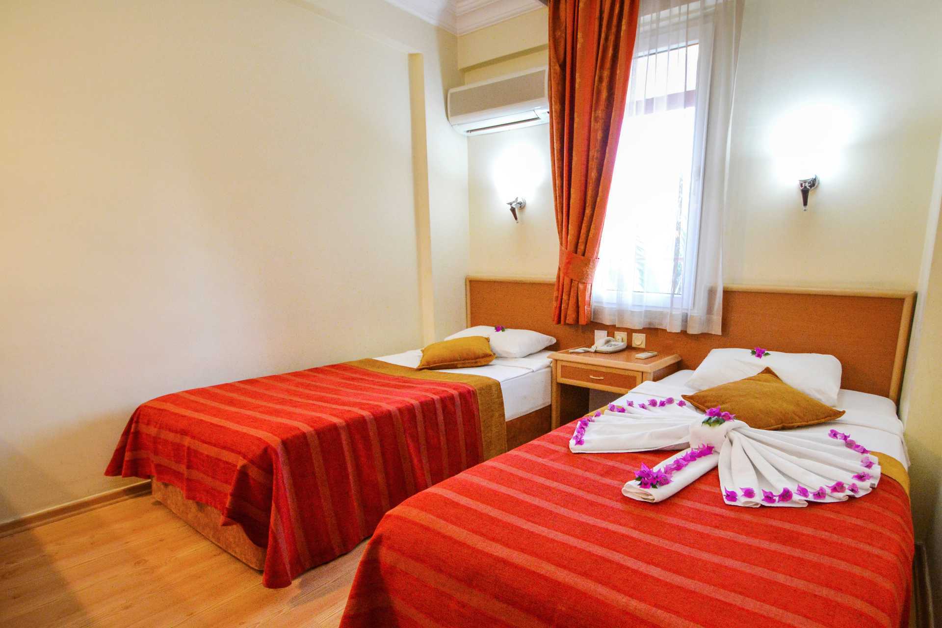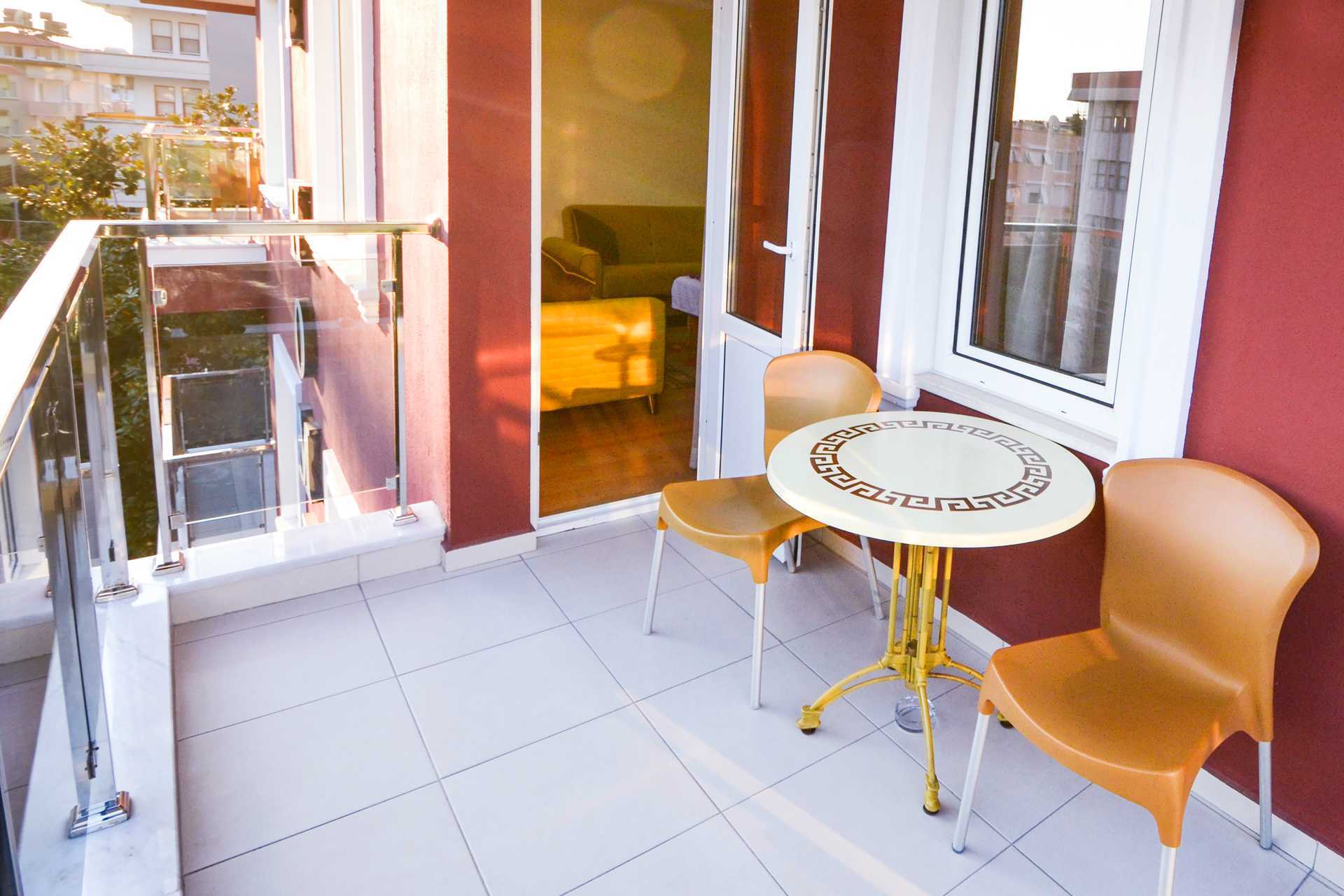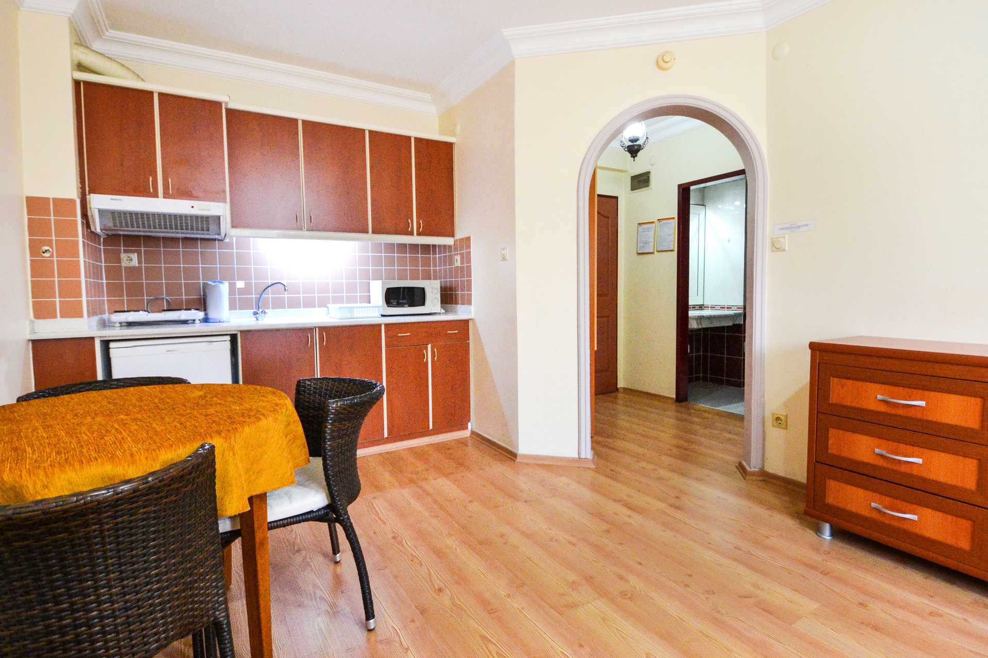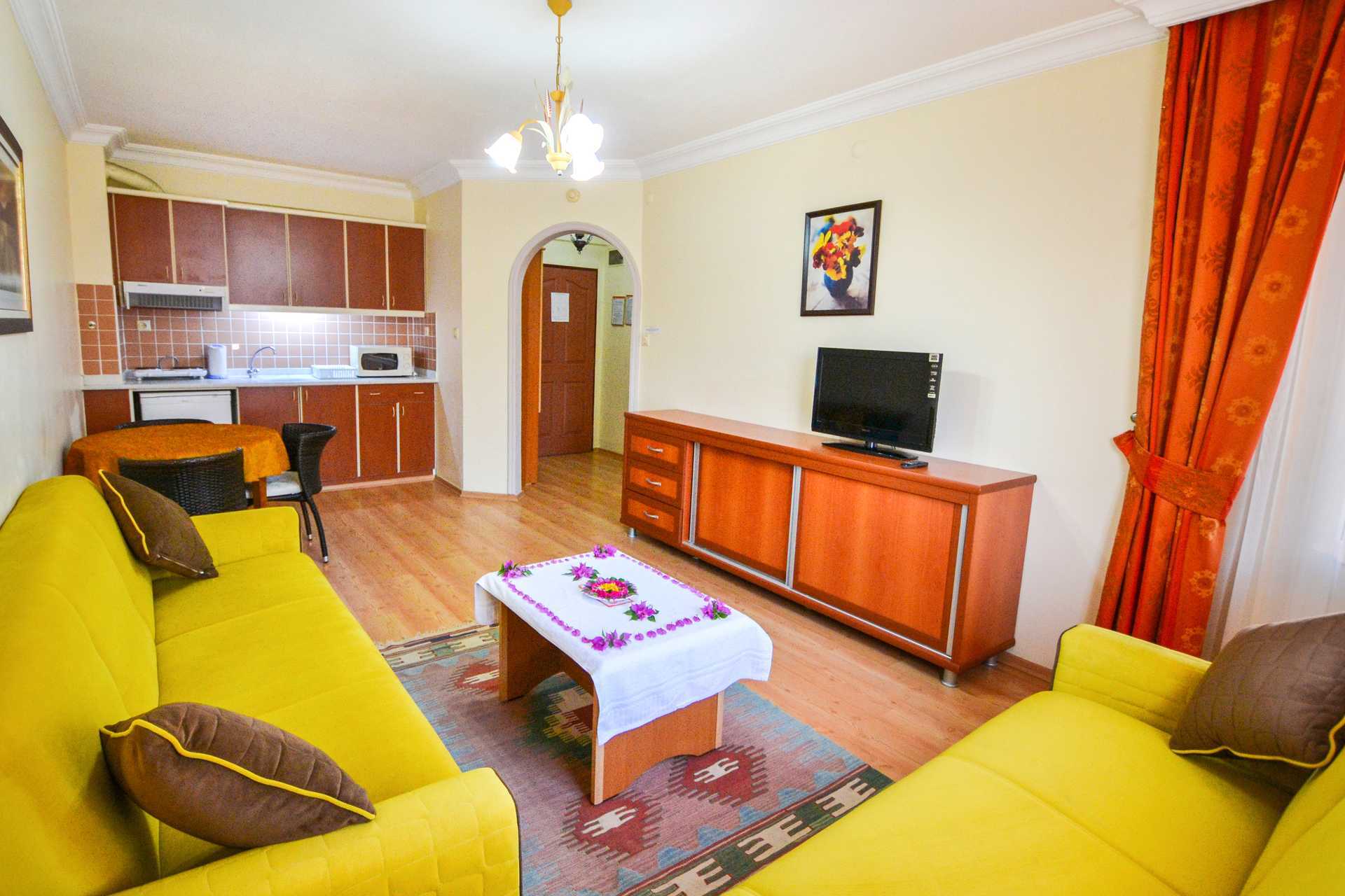 2-værelses lejlighed med balkon eller terrasse. Soveværelse og kombineret opholdsrum med minikøkken. To enkeltsenge. Mulighed for ekstra opredninger i to sovesofaer. Minikøkken med kogeplader, køleskab, el-kedel, kaffemaskine og enkelt køkkenudstyr. Deponering og aircondition mod betaling. Tv med internationale kanaler. Hårtørrer. Badeværelse med bruser og toilet. Rengøring 7 gange om ugen.