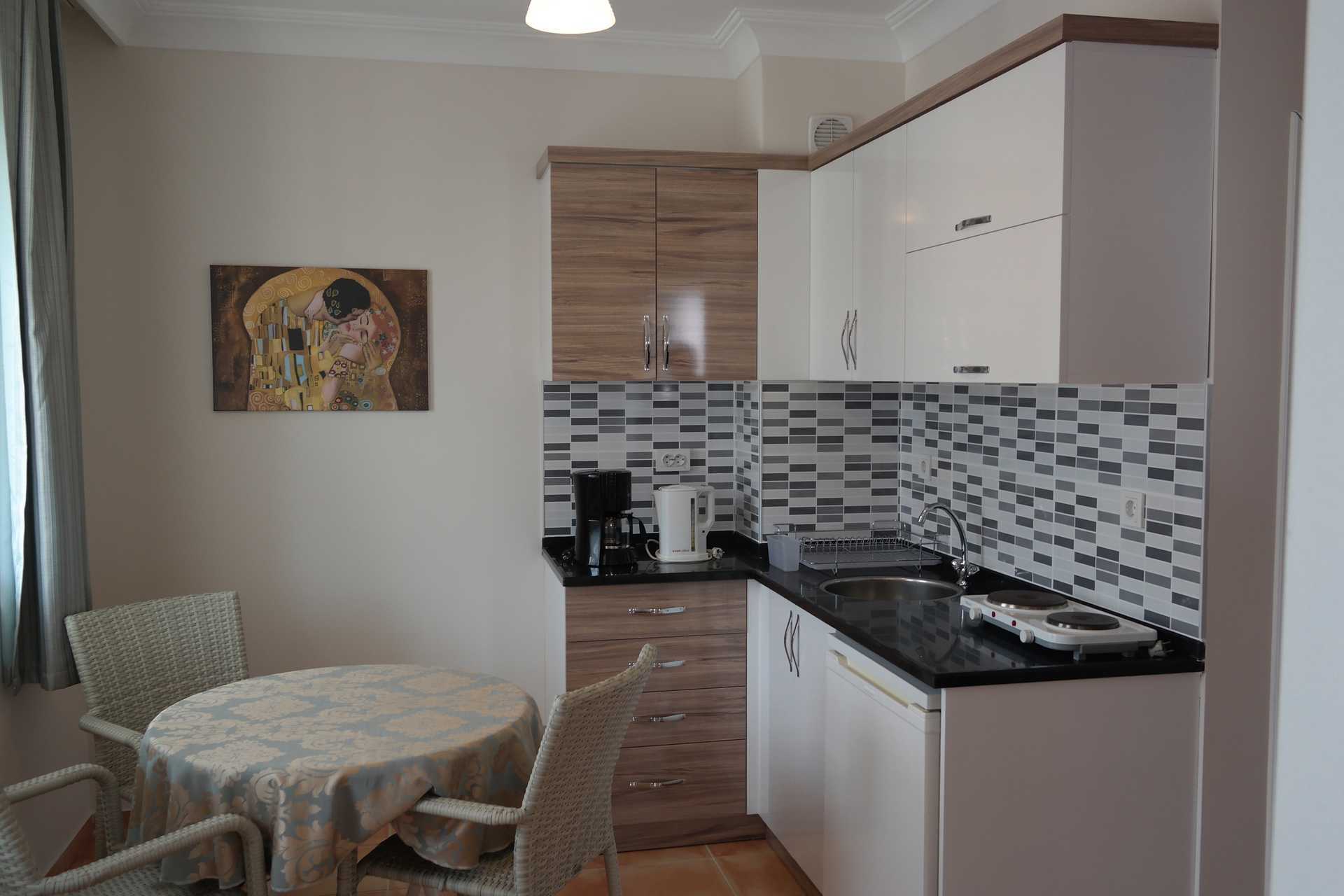 2-værelses lejlighed med balkon Soveværelse og kombineret opholdsrum med minikøkken. To enkeltsenge. Mulighed for ekstra opredninger i sovesofa. Minikøkken med kogeplader, køleskab, el-kedel, kaffemaskine og enkelt køkkenudstyr. Gratis wifi. Aircondition og deponering mod betaling. Tv. Hårtørrer. Badeværelse med bruser og toilet. Rengøring 7 gange om ugen.