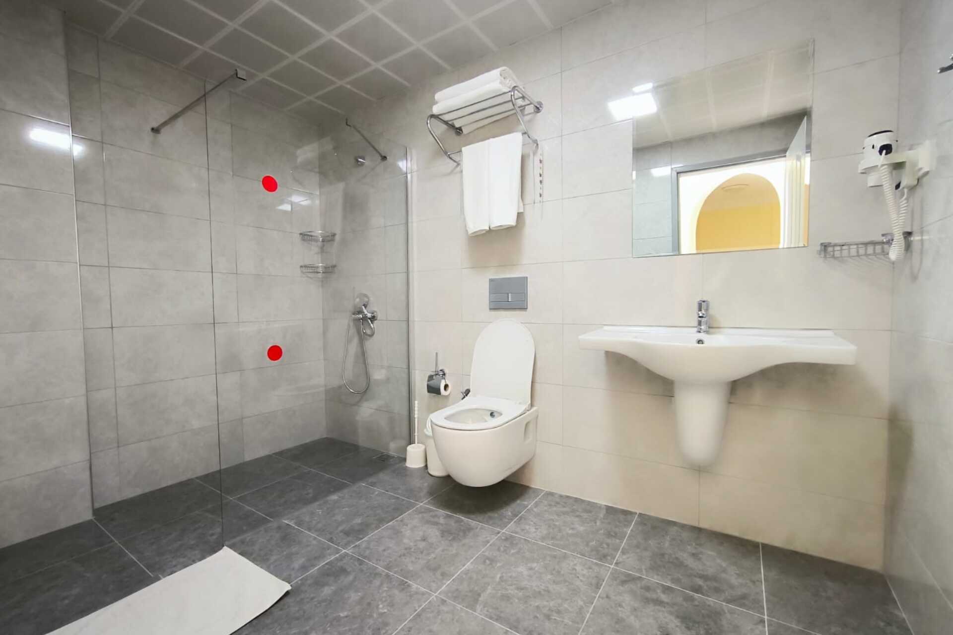 Større 2-værelses lejlighed med to balkoner. Soveværelse og kombineret opholdsrum med minikøkken. To enkeltsenge. Mulighed for ekstra opredninger i to sovesofaer. Minikøkken med køleskab, kogeplader, enkelt køkkenudstyr, el-kedel og kaffemaskine. Gratis wifi. Aircondition og deponering mod betaling. I nogle større 2-værelses lejligheder er der kun aircondition i soveværelset. Tv med lokale kanaler. Hårtørrer. Badeværelse med bruser og toilet. Rengøring 6 gange om ugen.