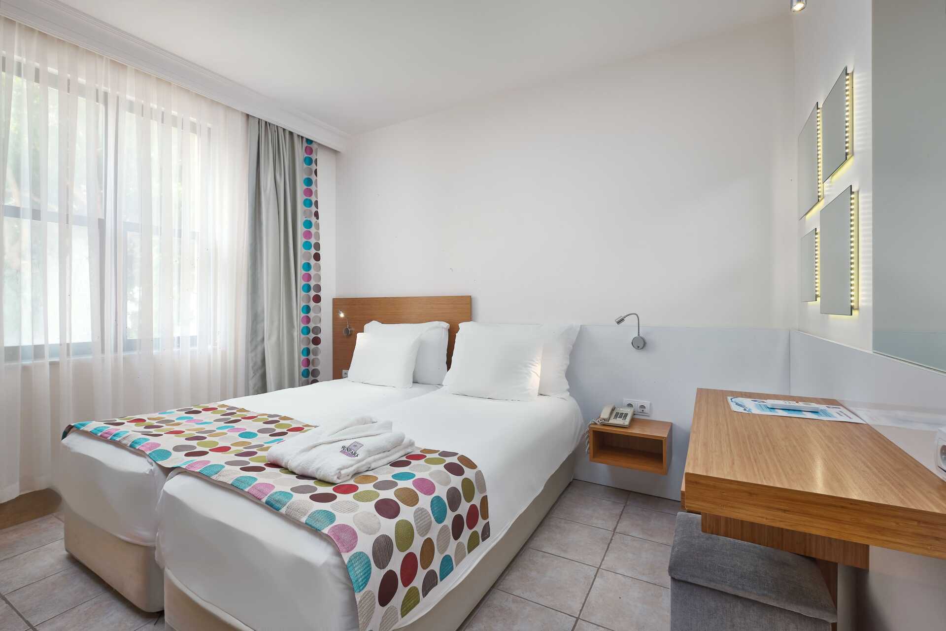 3-værelses lejligheder med balkon. To soveværelser og et kombineret opholdsrum med minikøkken. To enkeltsenge. Mulighed for ekstra opredninger i sovesofa. Minikøkken med kogeplader, køleskab med frostboks, brødrister, el-kedel og enkelt køkkenudstyr. Gratis wifi og aircondition. Deponering mod betaling. Tv med lokale kanaler. Hårtørrer. Badeværelse med bruser og toilet. Rengøring 7 gange om ugen.