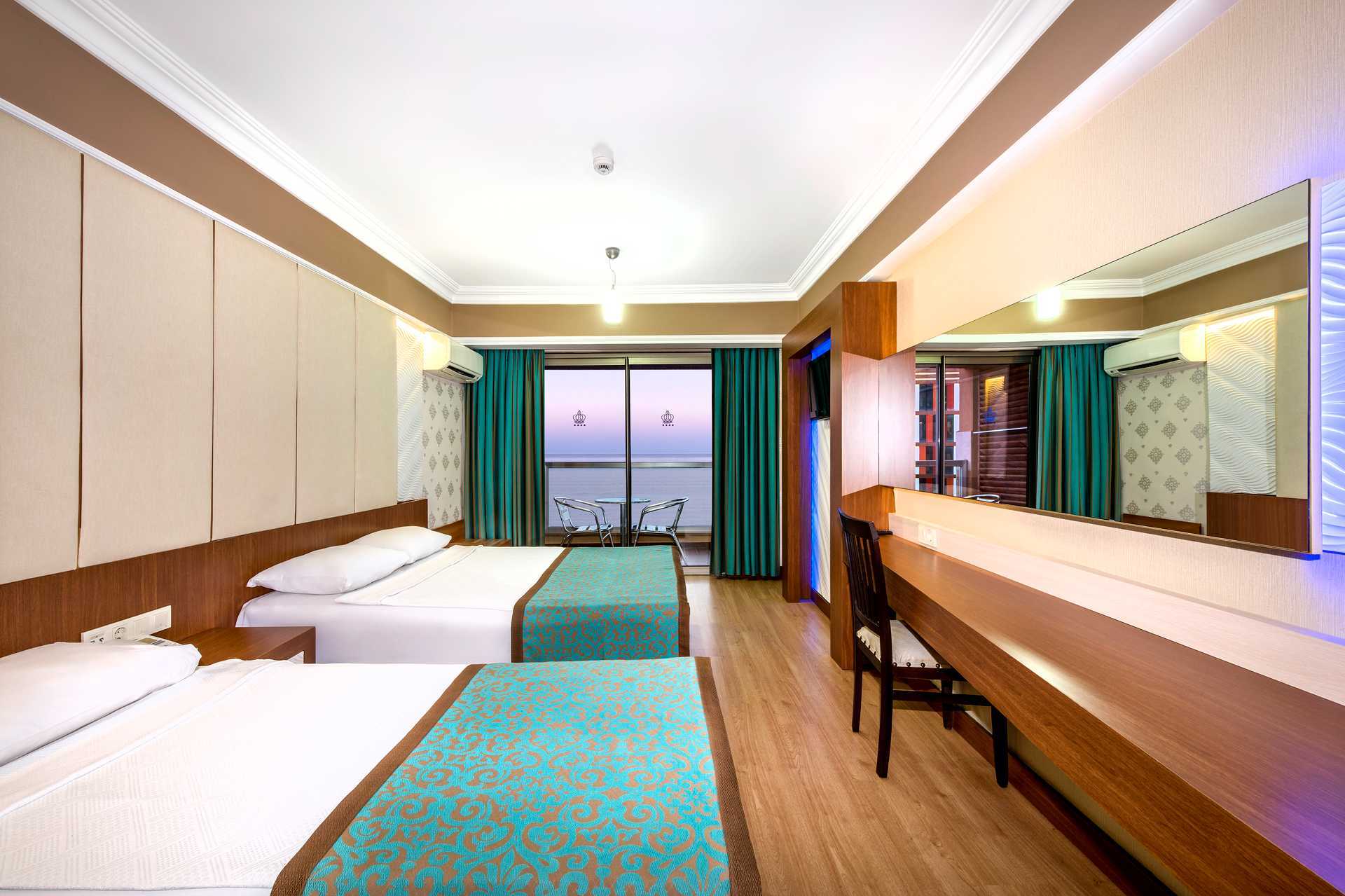 Dobbeltværelser med balkon. Balkonerne er små men har stole og et bord. En dobbeltseng. Mulighed for ekstra opredning i enkeltseng. Gratis aircondition og Wifi. Deponering mod betaling. Køleskab. El-kedel samt kaffe-/te faciliteter. Tv med internationale kanaler. Hårtørrer. Badeværelse med bruser og toilet. Rengøring 7 gange om ugen.