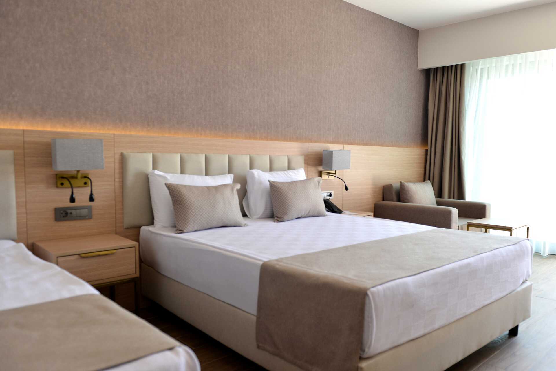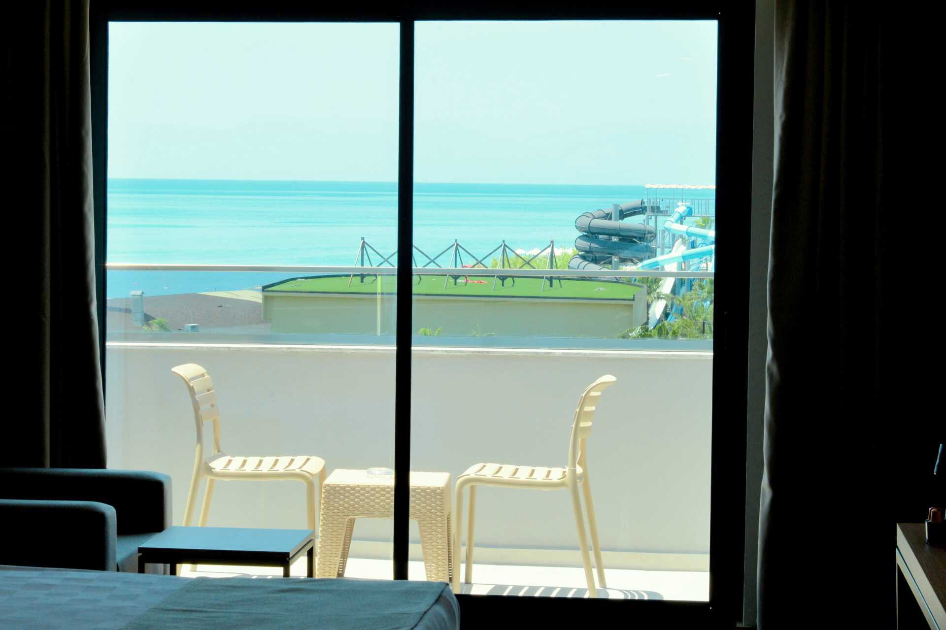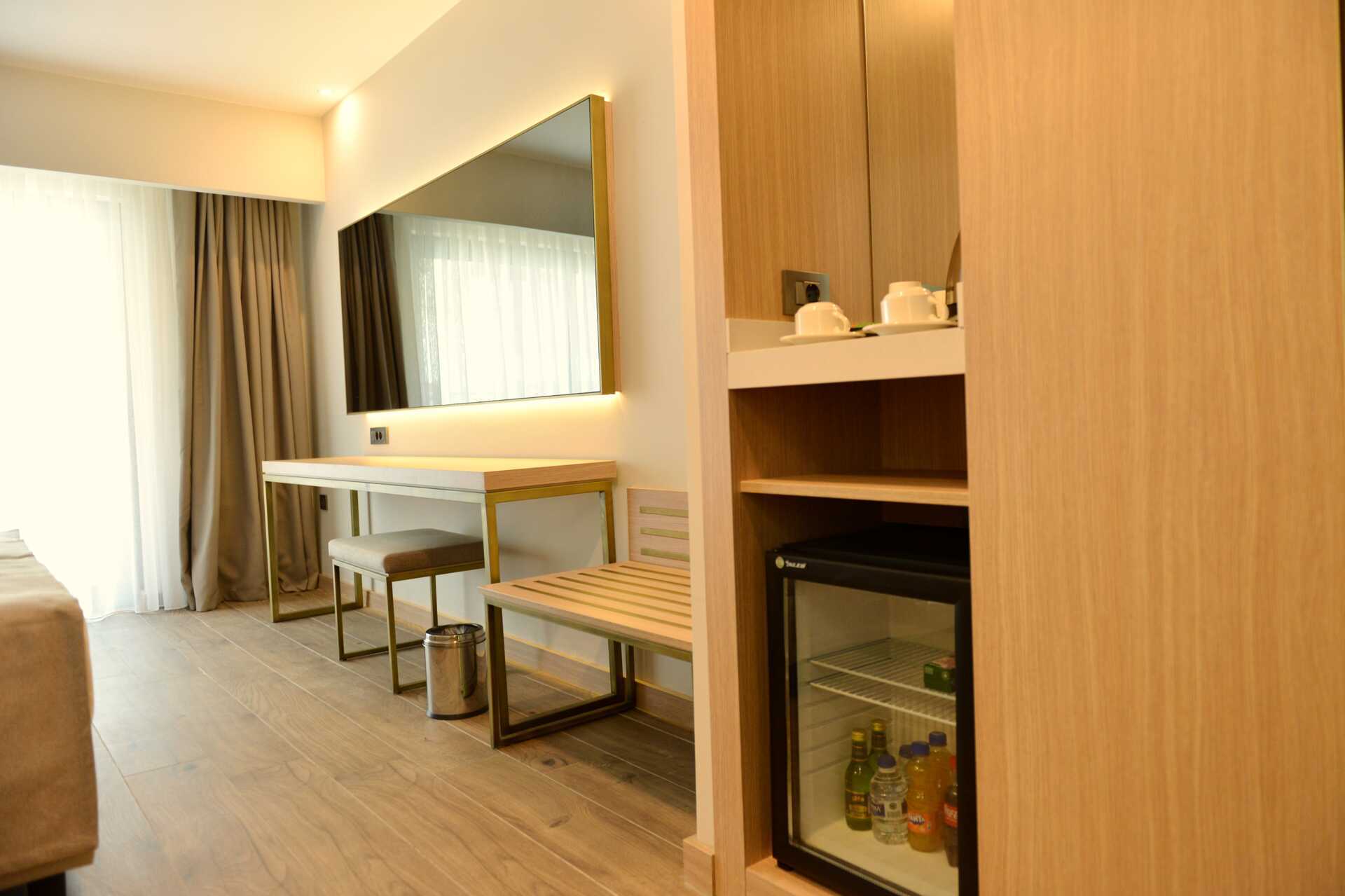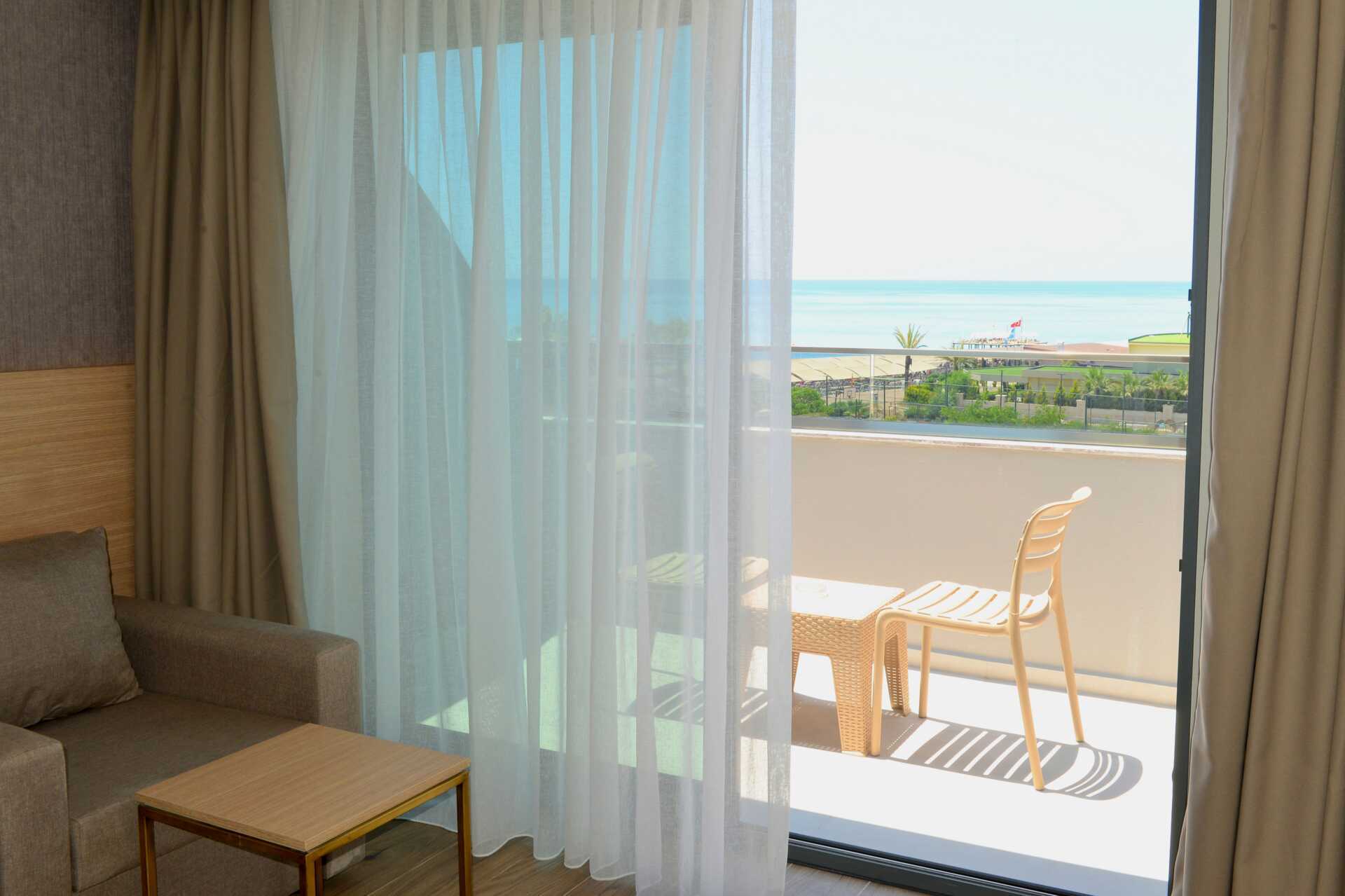 Deluxe-værelse med balkon og havudsigt. En dobbeltseng eller to enkeltsenge. Mulighed for ekstra opredning i enkeltseng. Gratis wifi, aircondition og deponering. Minibar (fyldes dagligt). Kapselmaskine til kaffe. El-kedel og kaffe/te. Tv med internationale kanaler. Badekåber og tøfler. Hårtørrer. Badeværelse med bruser og toilet. Rengøring 7 gange om ugen. Børn under to år tæller med i det maksimale antal personer på værelset.