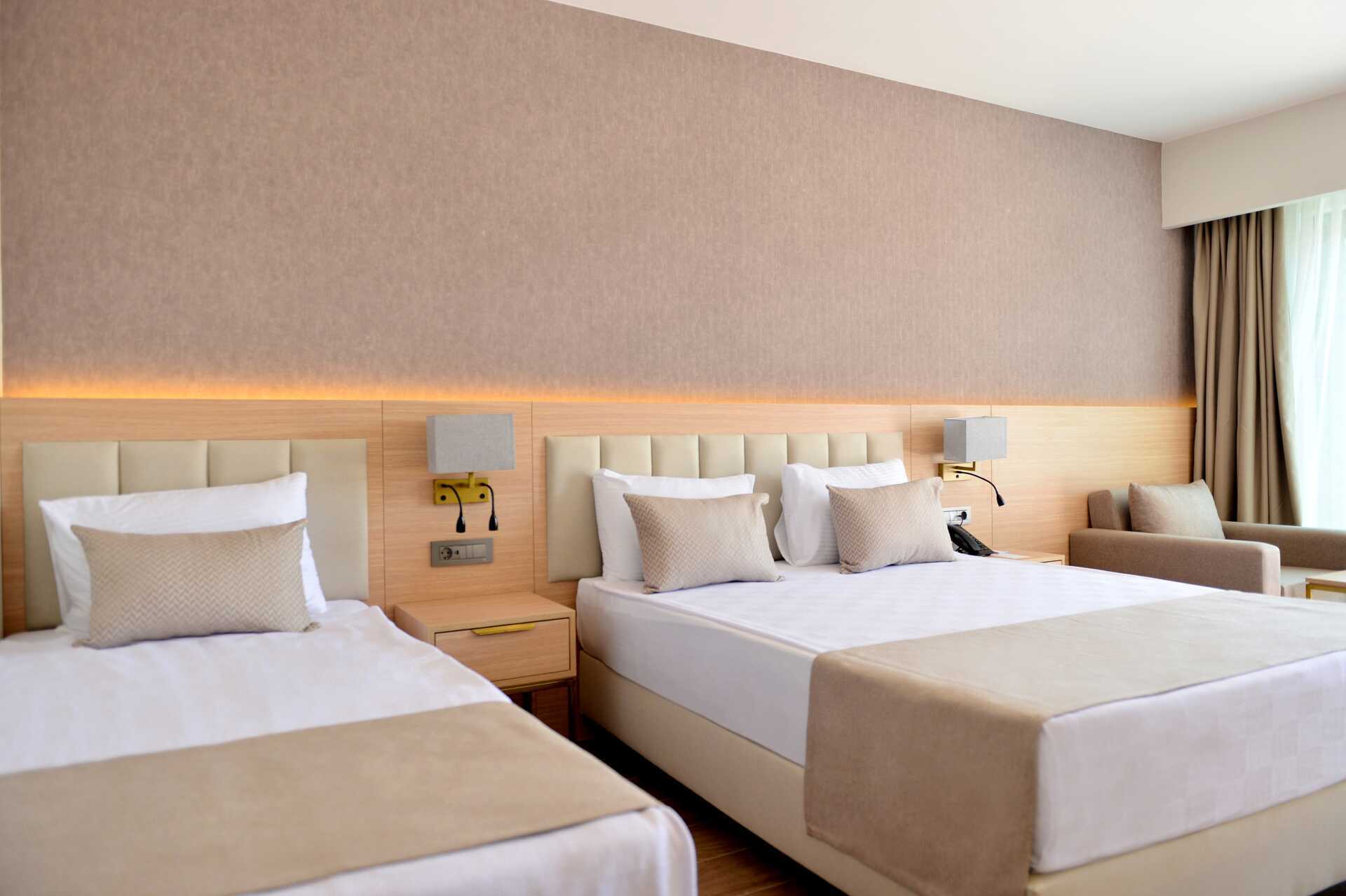 Dobbeltværelse med balkon. En dobbeltseng eller to enkeltsenge. Mulighed for ekstra opredning i fold ud-stol. Gratis wifi, aircondition og deponering. Minibar (fyldes dagligt). El-kedel og kaffe/te. Tv med internationale kanaler. Badekåber og tøfler. Hårtørrer. Badeværelse med bruser og toilet. Rengøring 7 gange om ugen. Børn under to år tæller med i det maksimale antal personer på værelset.