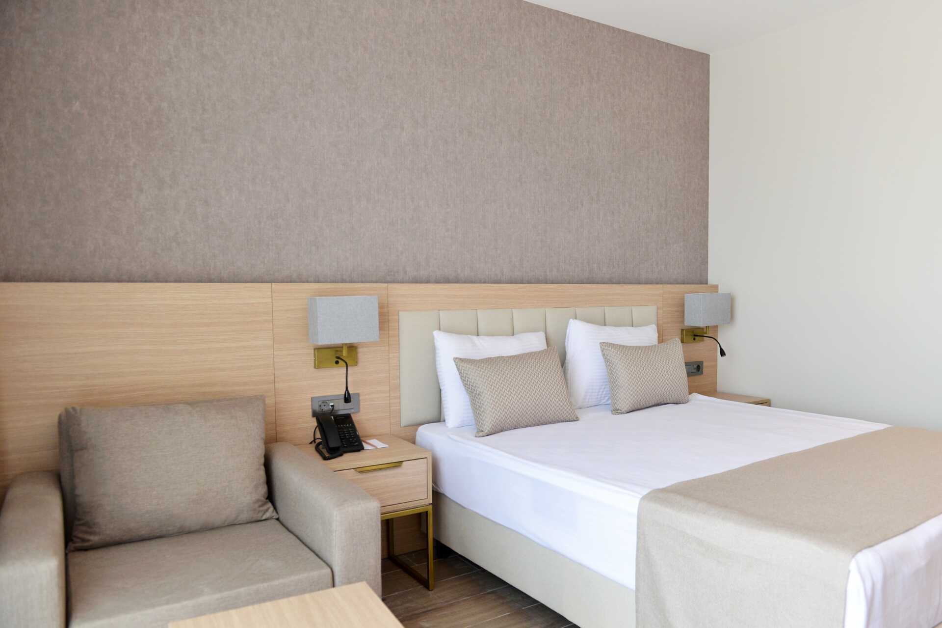Superior-værelse med balkon. En dobbeltseng eller to enkeltsenge. Mulighed for ekstra opredning i enkeltseng. Gratis wifi, aircondition og deponering. Minibar (fyldes dagligt). Kapselmaskine til kaffe. El-kedel og kaffe/te. Tv med internationale kanaler. Badekåber og tøfler. Hårtørrer. Badeværelse med bruser og toilet. Rengøring 7 gange om ugen. Børn under to år tæller med i det maksimale antal personer på værelset.