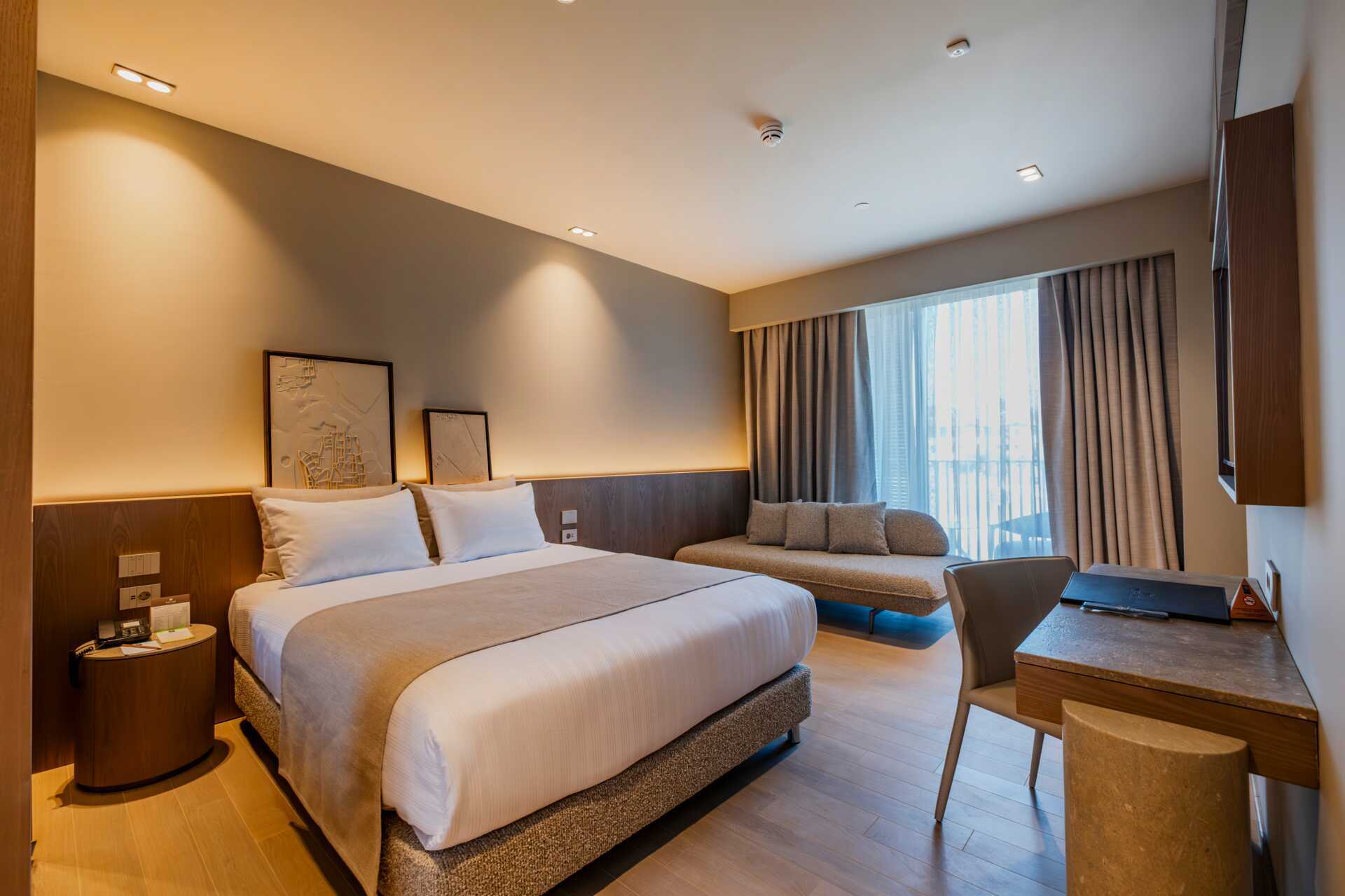 Større dobbeltværelse med balkon. En dobbeltseng eller to ekstra senge. Mulighed for ekstra opredning i sovesofa. Gratis wifi, aircondition og deponering. Nogle dobbeltværelser har centralt styret aircondition, der tændes og slukkes på forskellige tidspunkter afhængigt af vejret. Minibar. El-kedel og kaffe/te. Tv med internationale kanaler. Hårtørrer. Badeværelse med badekar og bruser samt toilet. Rengøring 7 gange om ugen. Der er et par trin i rummet. Børn under to år tæller med i det maksimale antal personer på værelset.