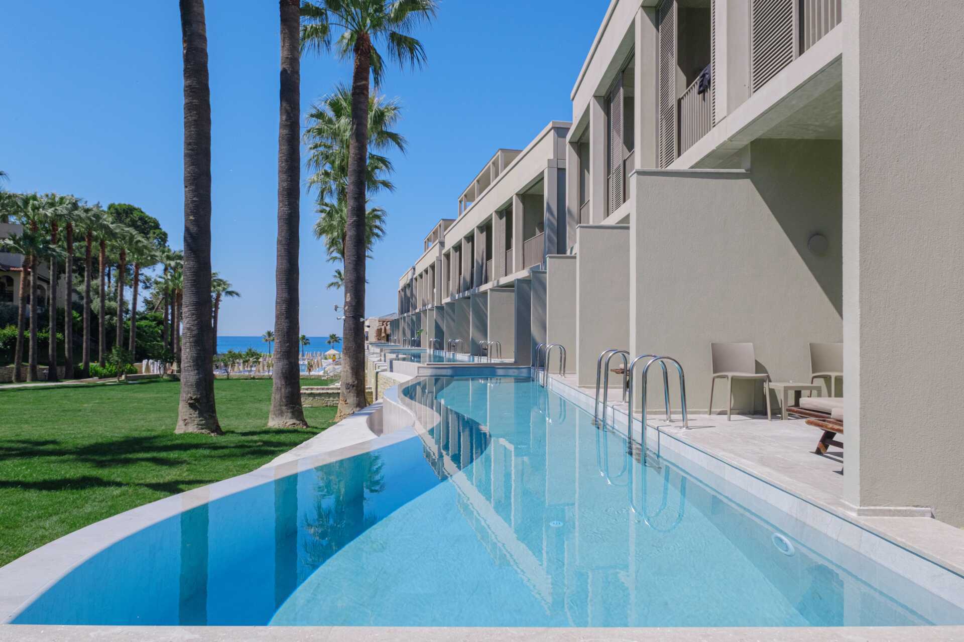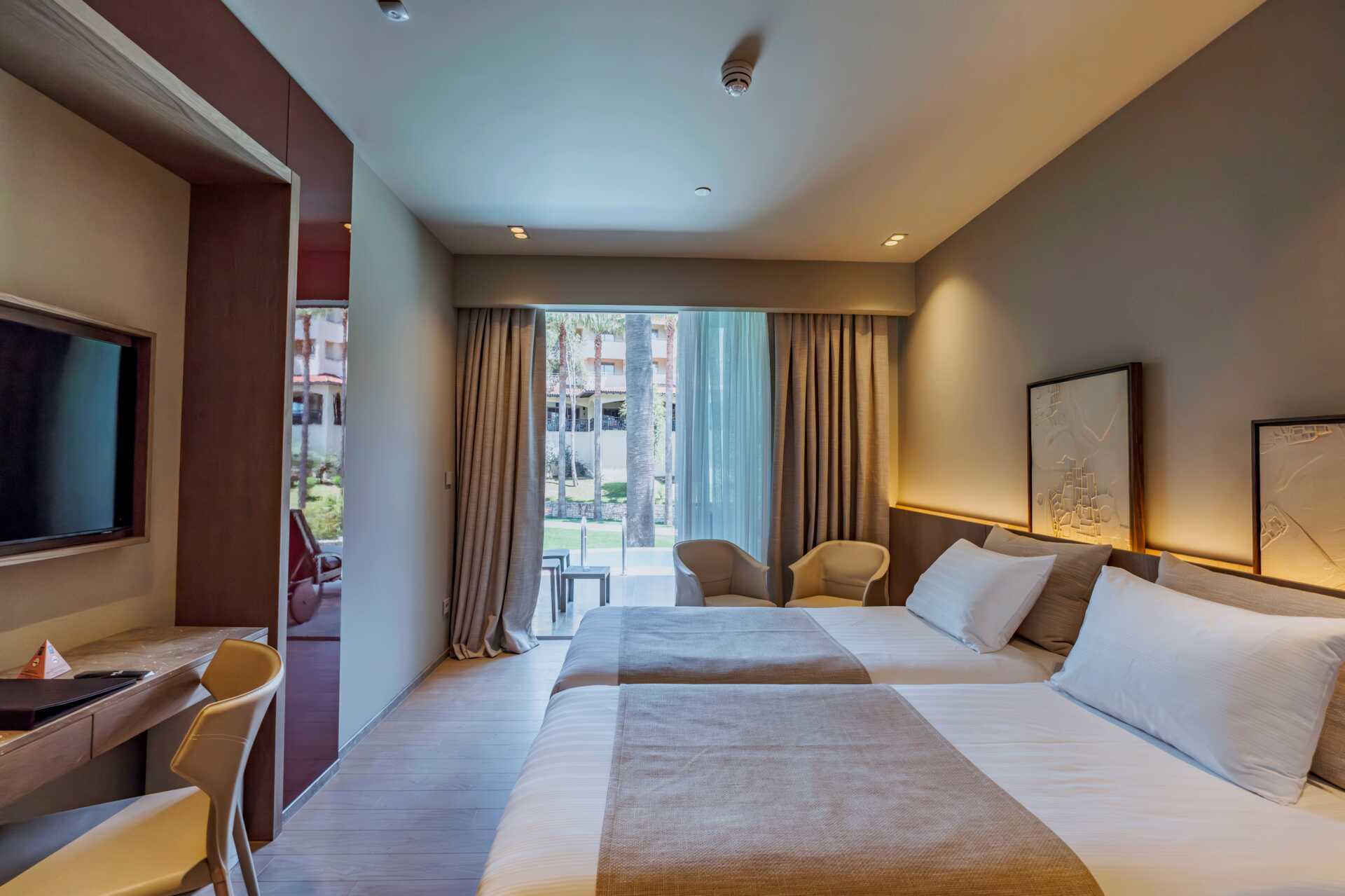 Superior-værelse med direkte udgang til delt pool fra udepladsen. En dobbeltseng eller to enkeltsenge. Mulighed for ekstra opredning i sovesofa. Gratis wifi, aircondition og deponering. Minibar. El-kedel og kaffe/te. Tv med internationale kanaler. Hårtørrer. Badeværelse med bruser og toilet. Rengøring 7 gange om ugen. Aldersgrænsen for at bo i denne værelsestype er 13 år eller ældre.