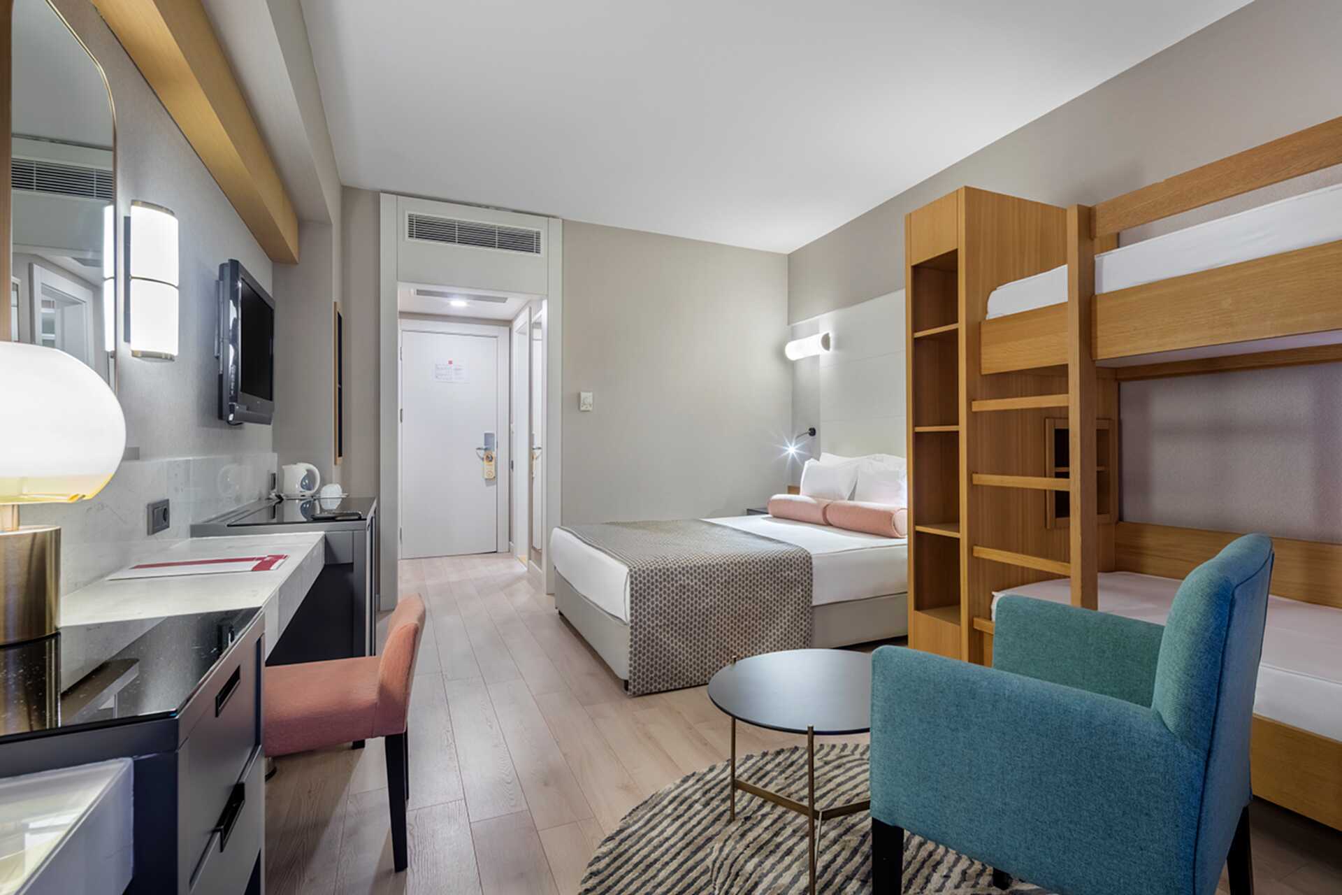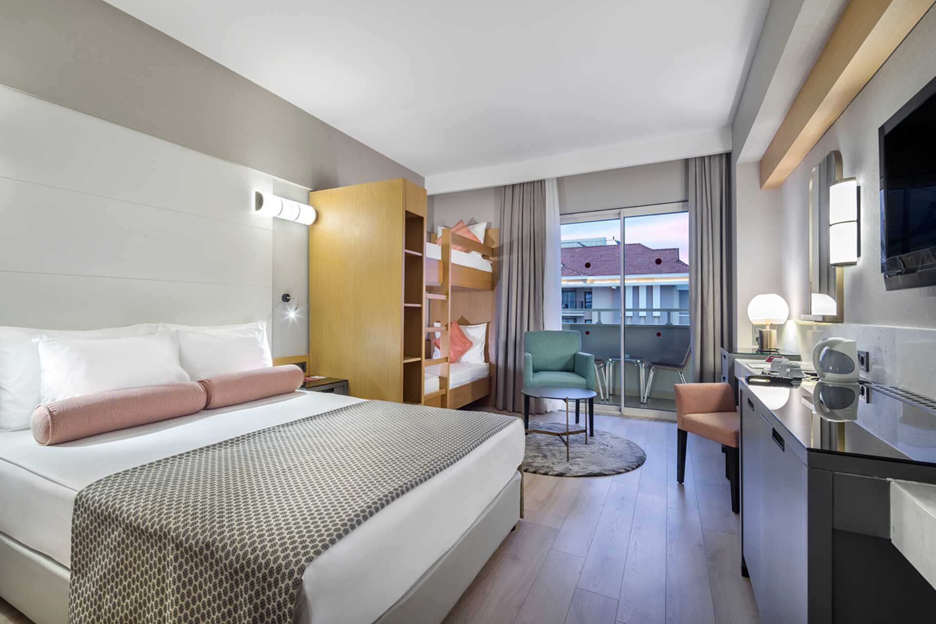 Familie-værelser med balkon, nogle med havudsigt eller delvis havudsigt. Familie-værelserne findes i to varianter, et med to soveværelser (ca. 32 kvm) med en dobbeltseng eller to enkeltsenge i hvert soveværelse eller med et soveværelse med en dobbeltseng og mulighed for ekstra opredning i en køjeseng for to børn (ca. 24 kvm). Gratis wifi, aircondition og deponering. Minibaren inkluderer sodavand, øl og vand og genopfyldes dagligt. El-kedel og kaffe/te. Tv med internationale kanaler. Badekåber og tøfler. Hårtørrer. Badeværelse med bruser og toilet. Rengøring 7 gange om ugen.
